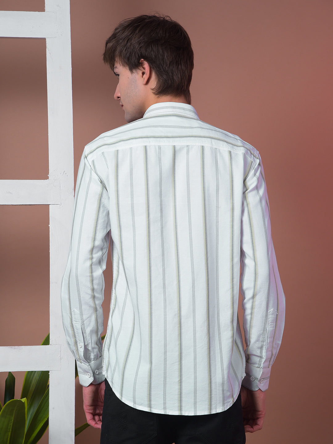 COBB LIGHT GREEN STRIPED SLIM-FIT CASUAL SHIRT