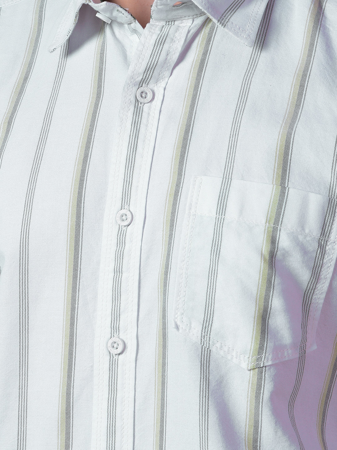 Fresh stripes and a tailored fit — Cobb’s Light Green Striped Slim-Fit Casual Shirt brings a breezy charm to your everyday casual collection.