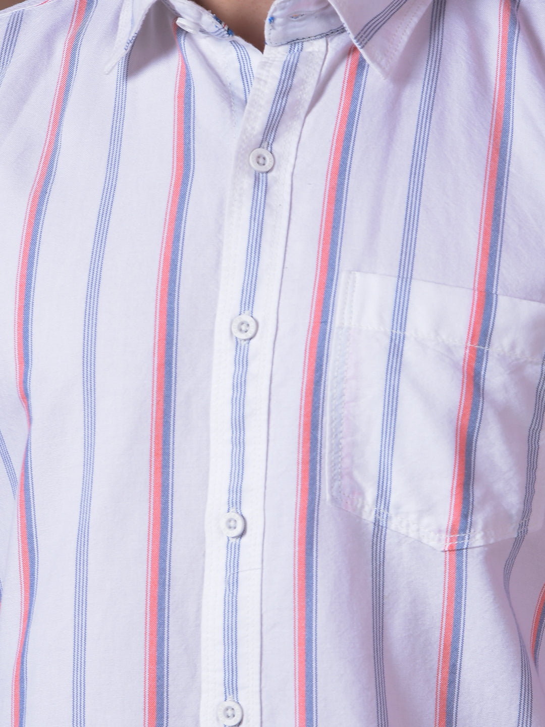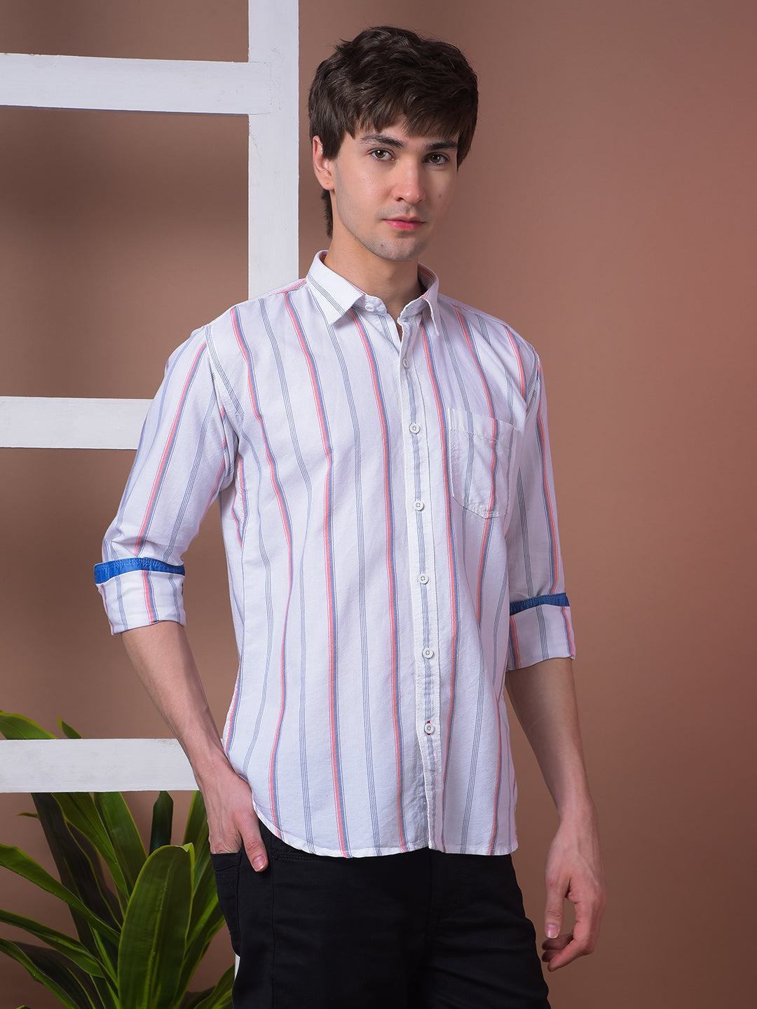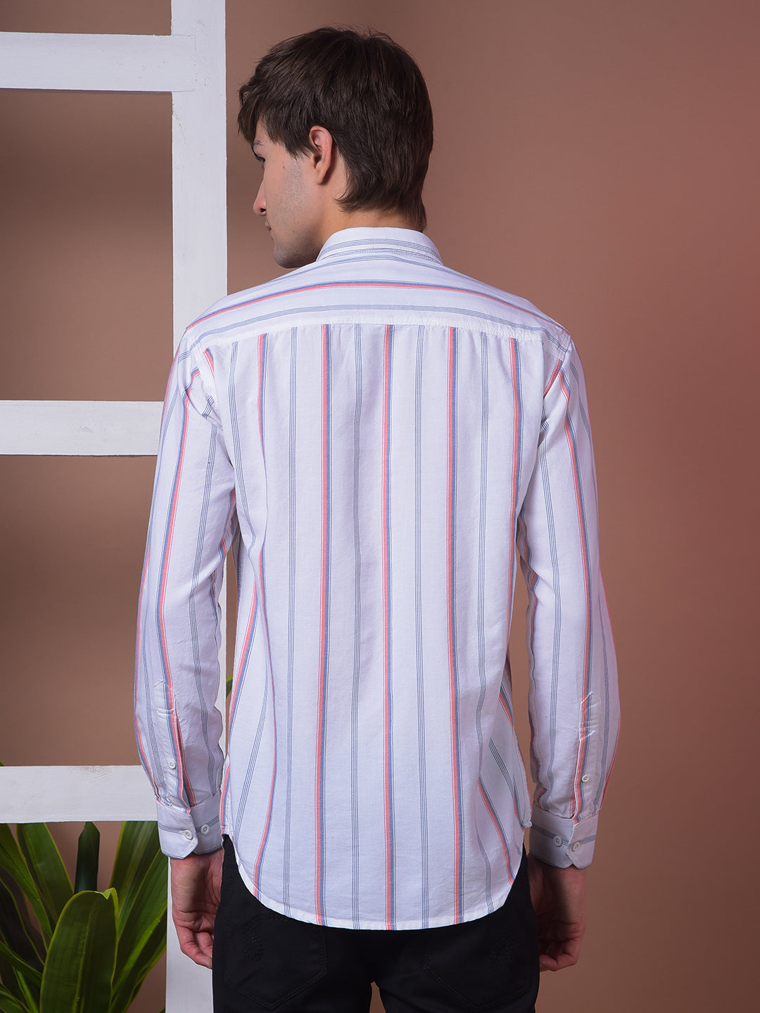 COBB Orange Striped Slim-Fit Casual Shirt offers a vibrant striped pattern with a tailored fit, perfect for adding a bold touch to your everyday wardrobe.