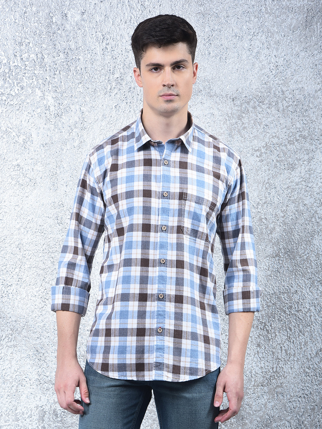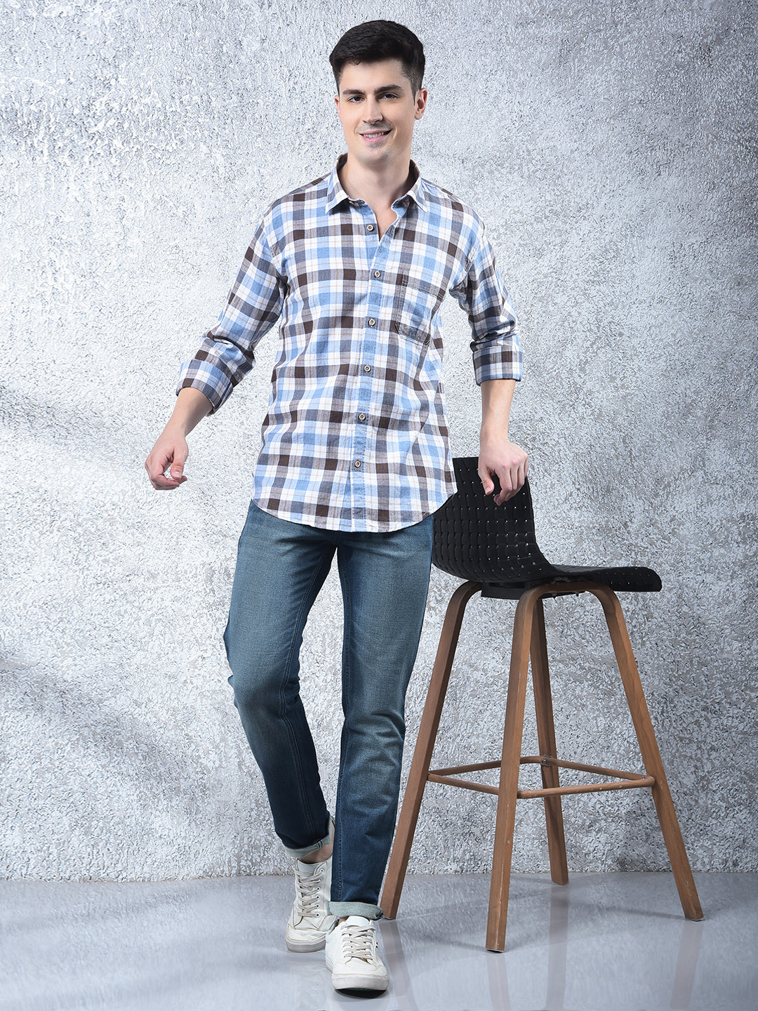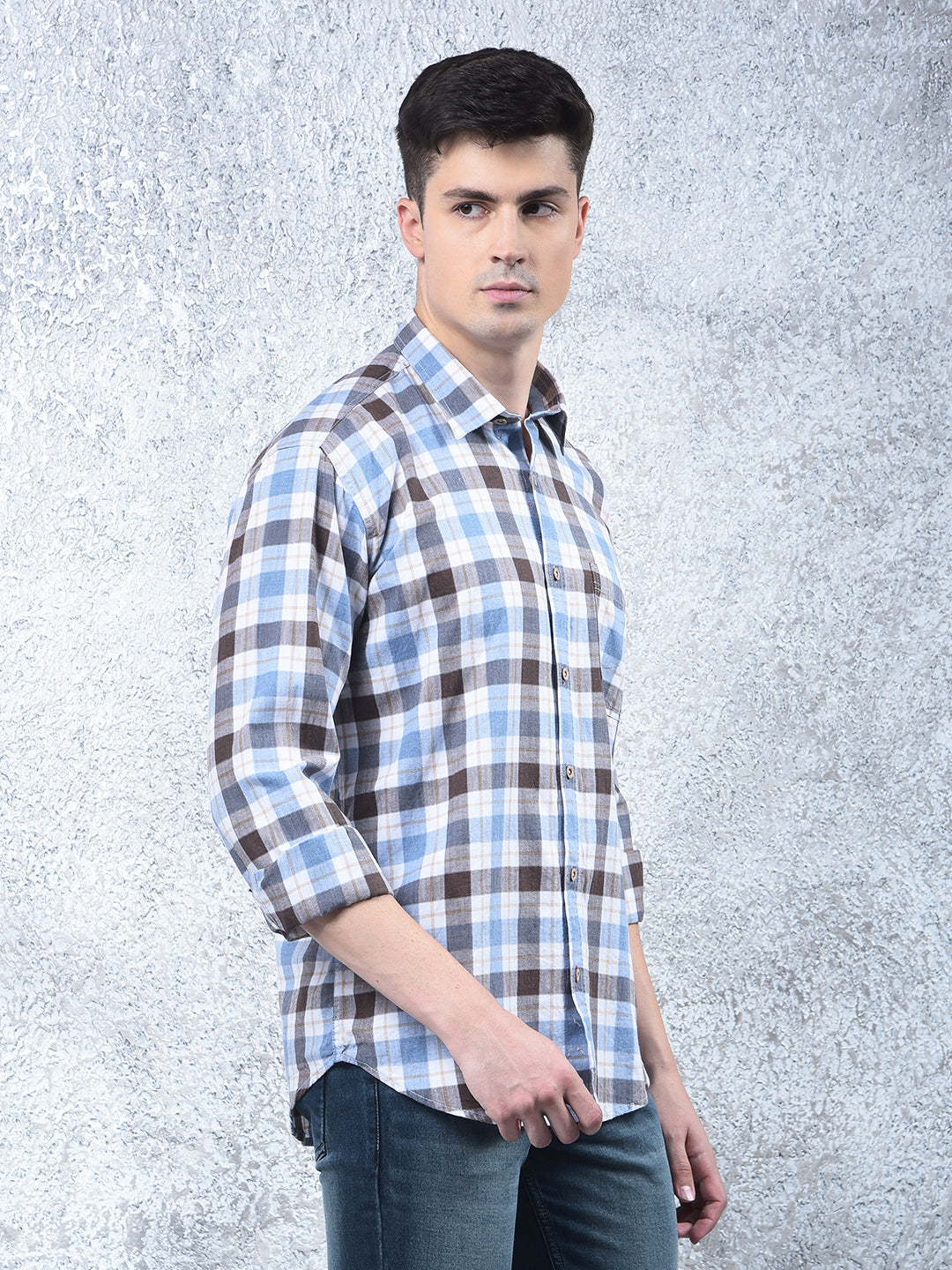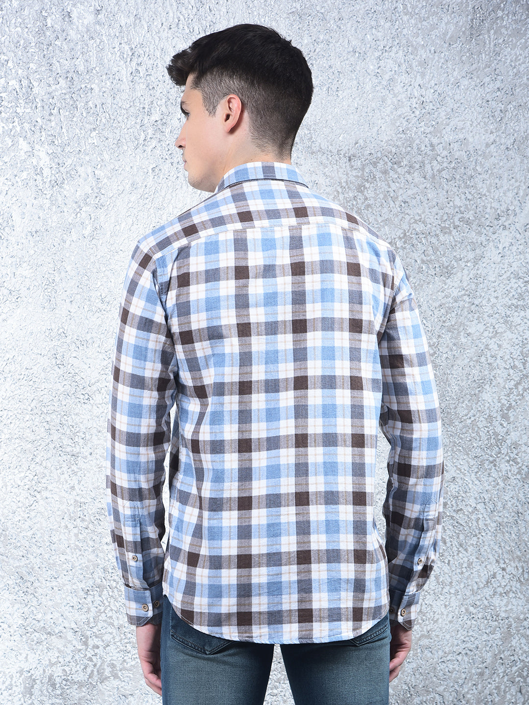 COBB Blue Checked Casual Shirt – featuring a modern check pattern, slim-fit design, and full sleeves. Made from soft, breathable fabric, perfect for casual outings with a smart, trendy appeal.