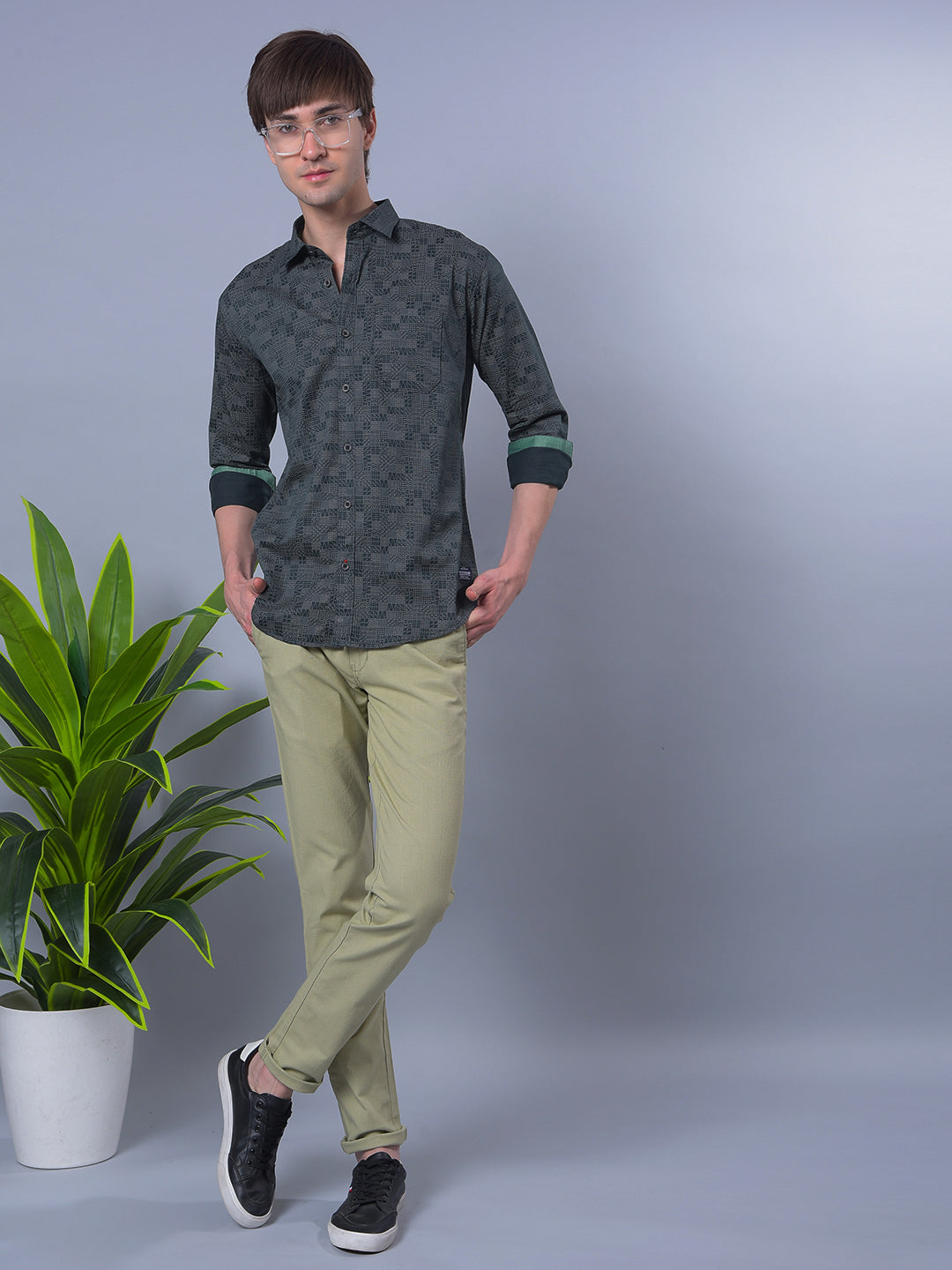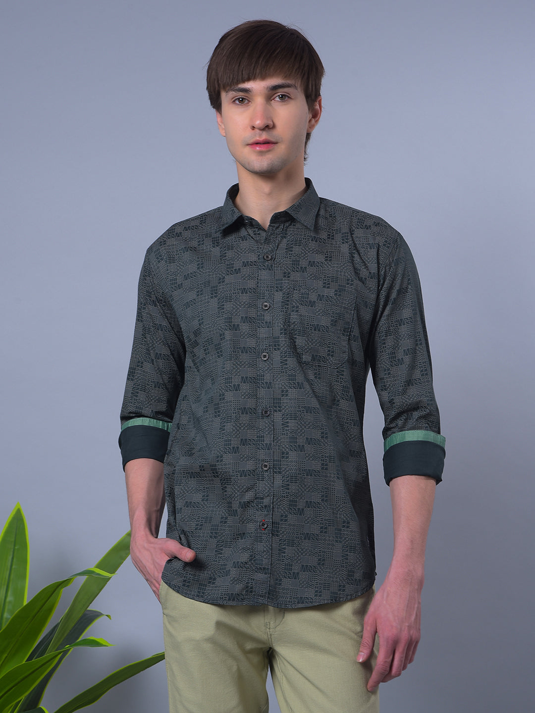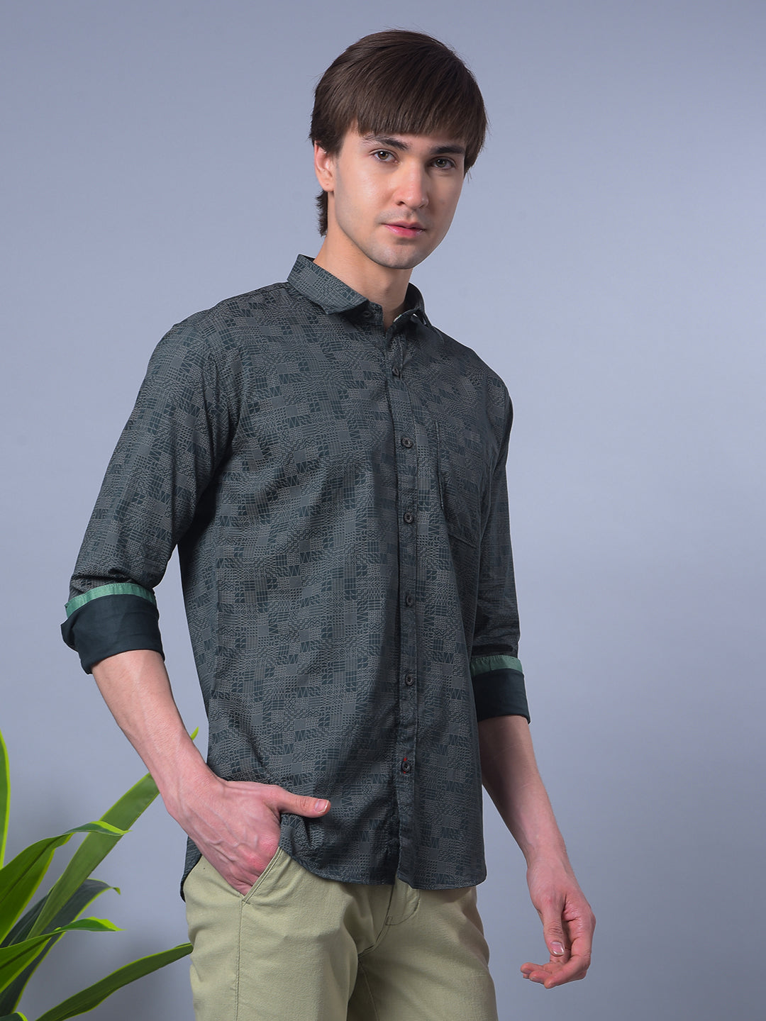 Deep hues and striking prints — Cobb’s Bottle Green Printed Slim-Fit Casual Shirt blends rich color with smart style for a standout casual look.