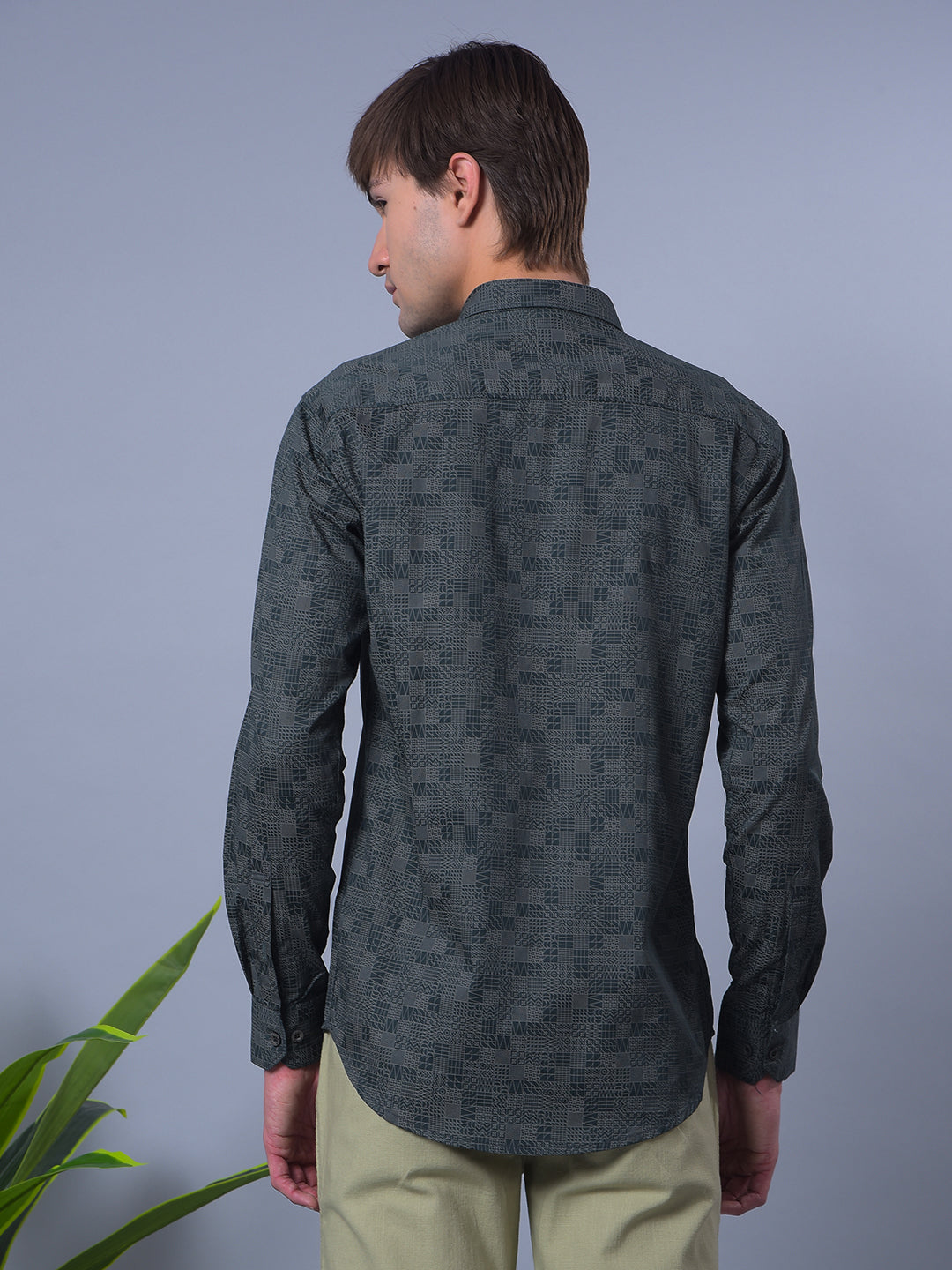 COBB BOTTLE GREEN PRINTED SLIM-FIT CASUAL SHIRT