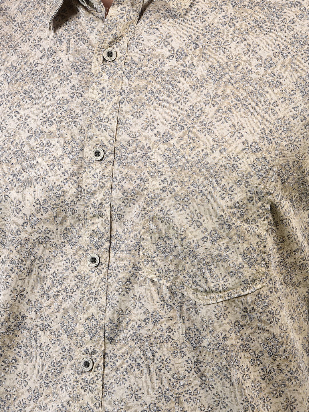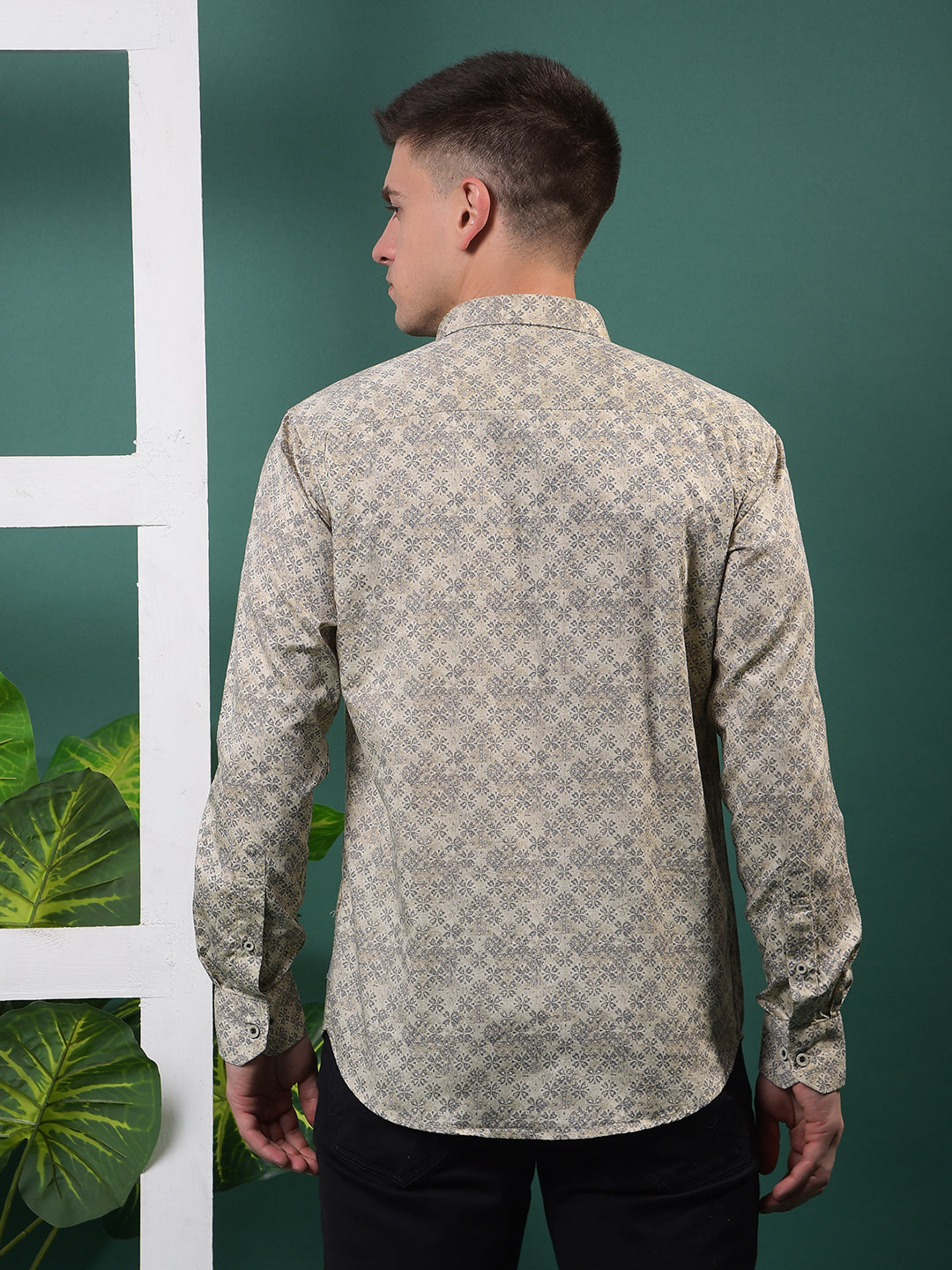 COBB BEIGE PRINTED SLIM-FIT CASUAL SHIRT