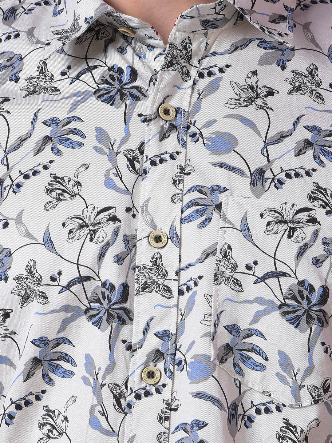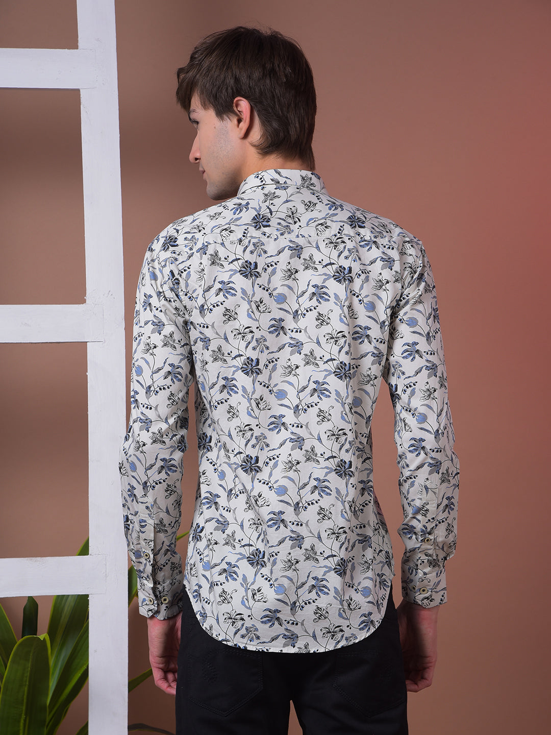 COBB OFF WHITE PRINTED SLIM-FIT CASUAL SHIRT