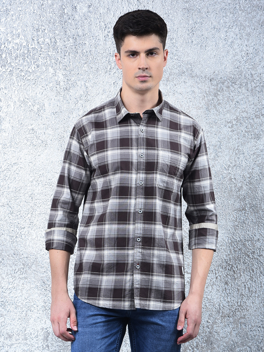 COBB Dark Coffee Checked Casual Shirt – designed with a rich checked pattern, slim-fit tailoring, and premium fabric. A versatile piece that adds style and comfort to your casual wardrobe.