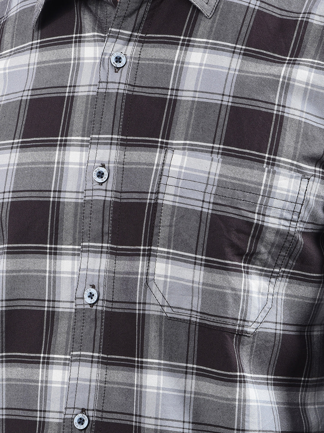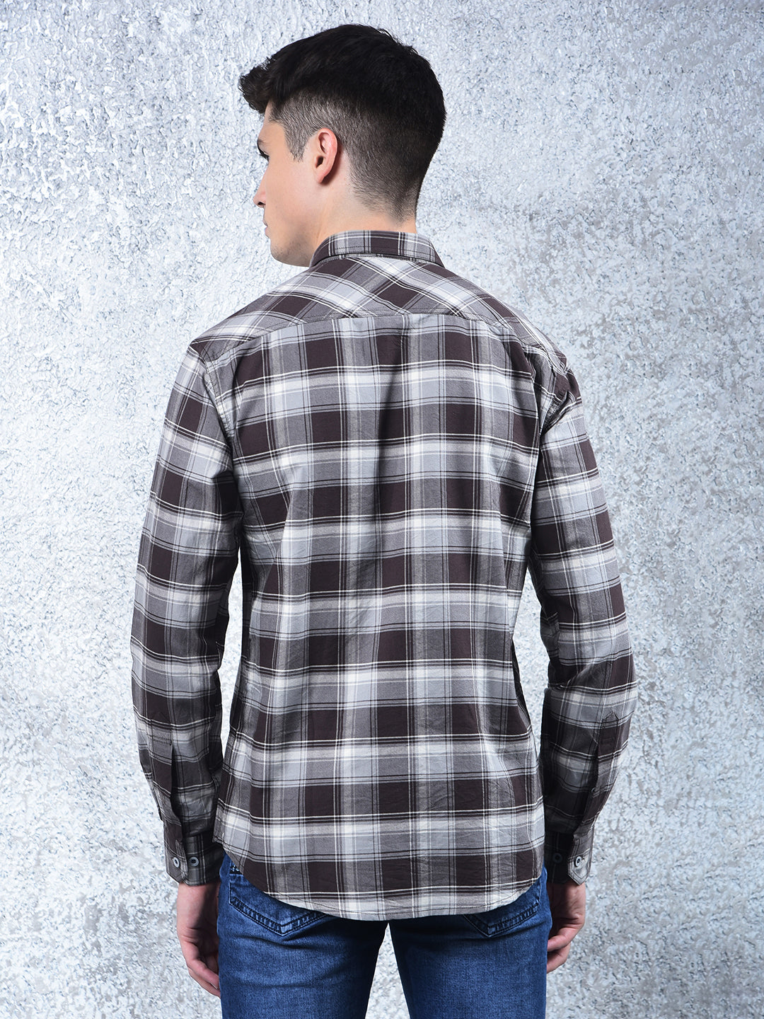 COBB DARK COFFEE CHECKED CASUAL SHIRT