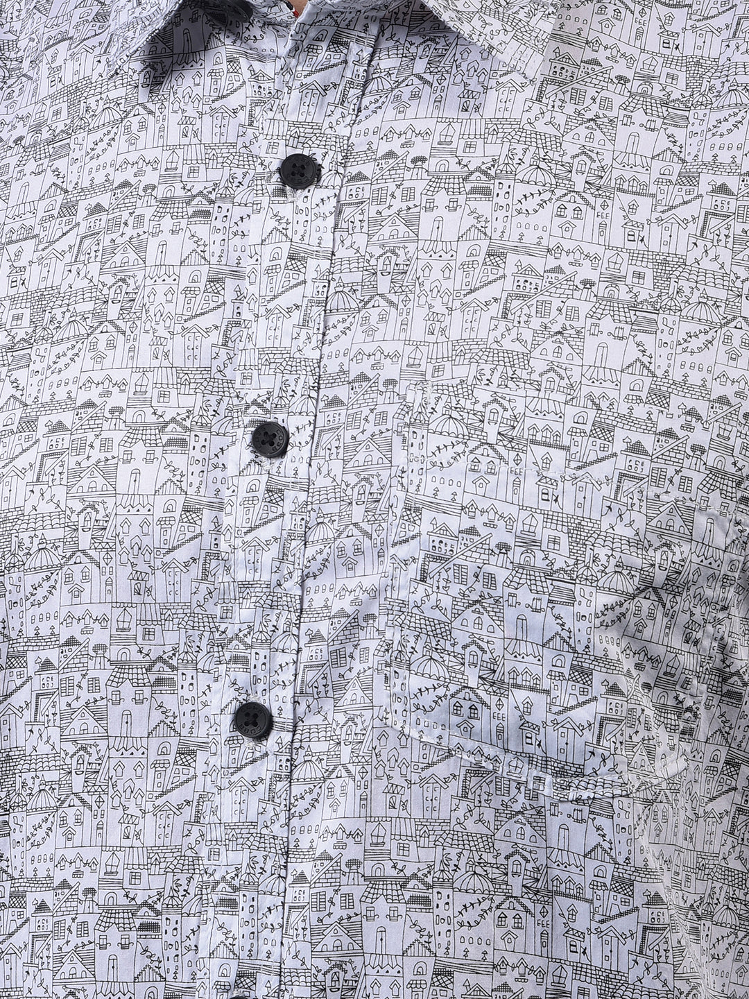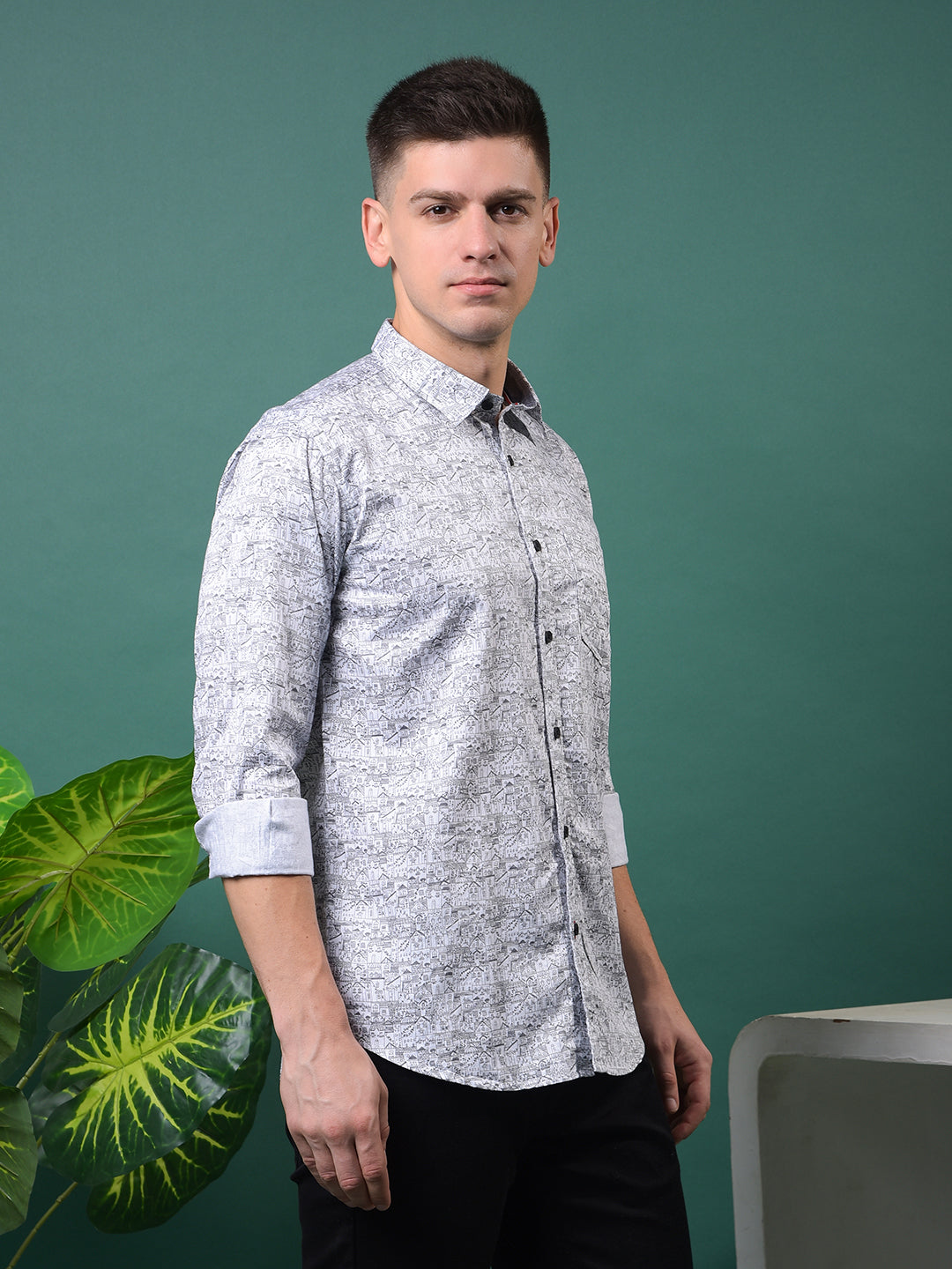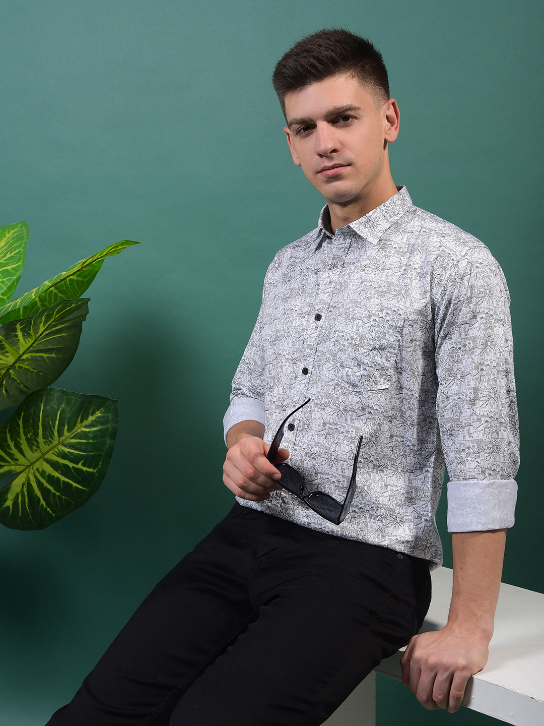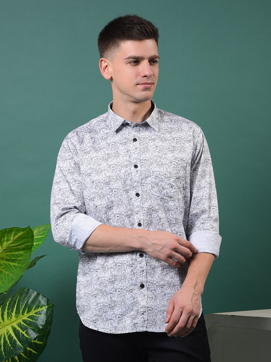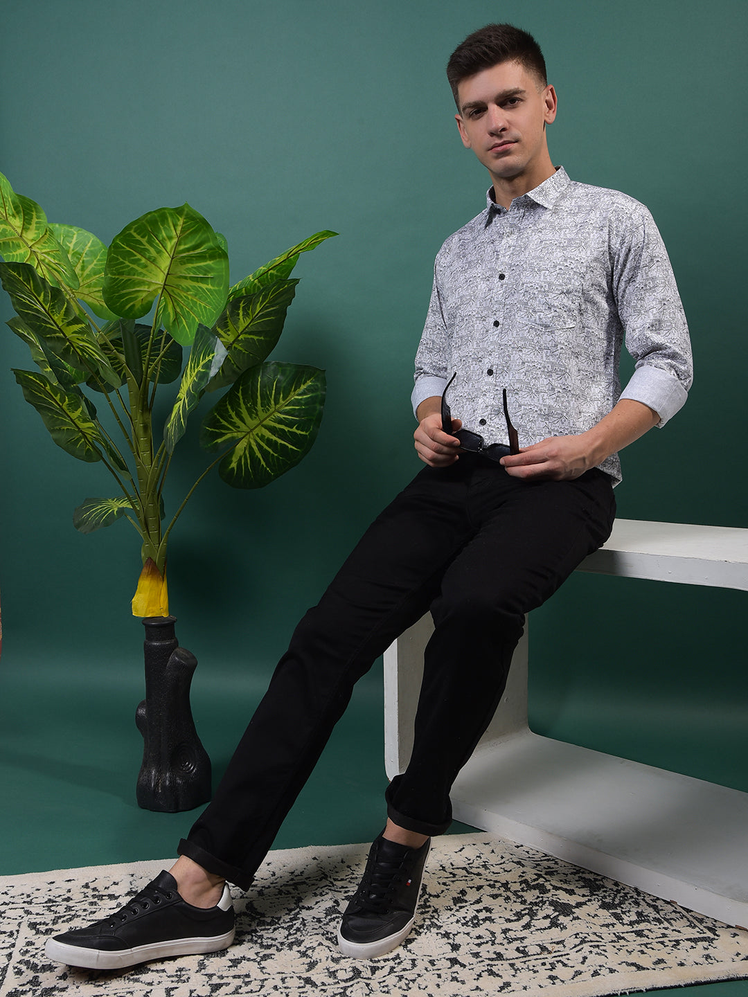 Effortlessly sharp — Cobb’s White with Black Printed Slim-Fit Casual Shirt blends crisp tones and modern prints for a clean, elevated casual look.