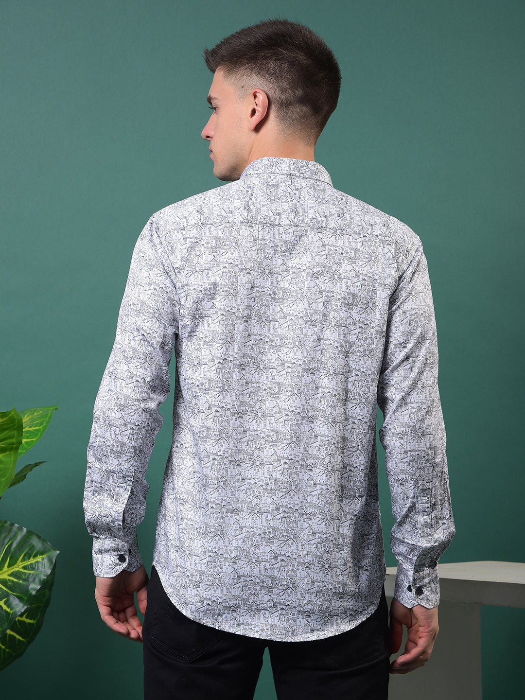 COBB WHITE PRINTED SLIM-FIT CASUAL SHIRT