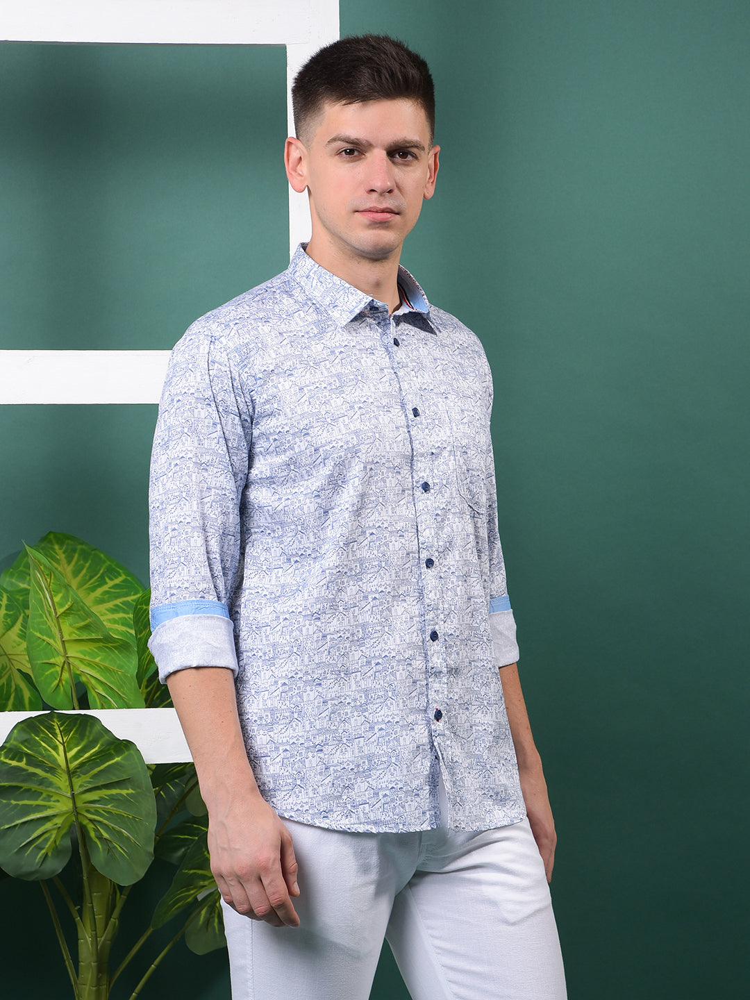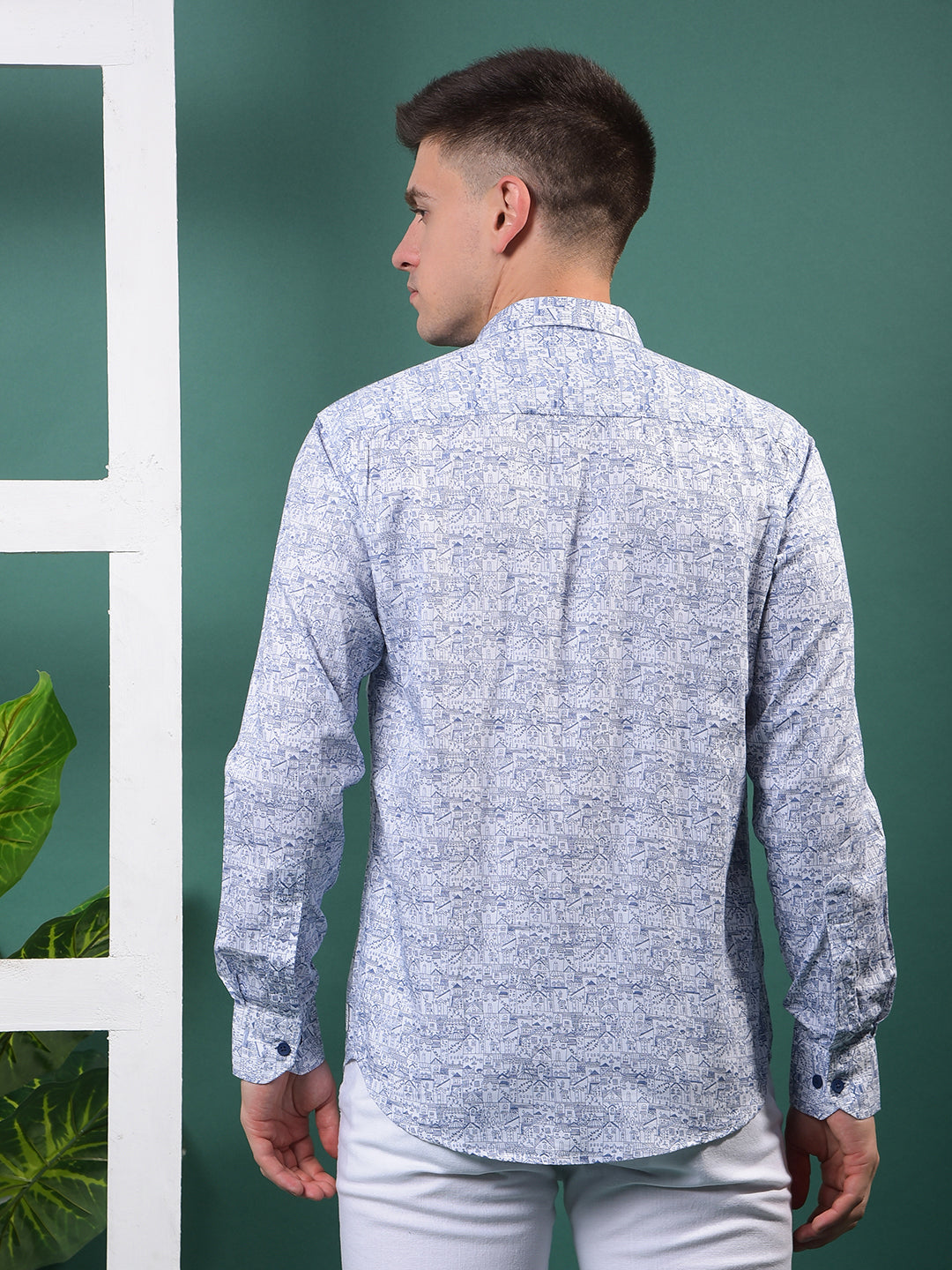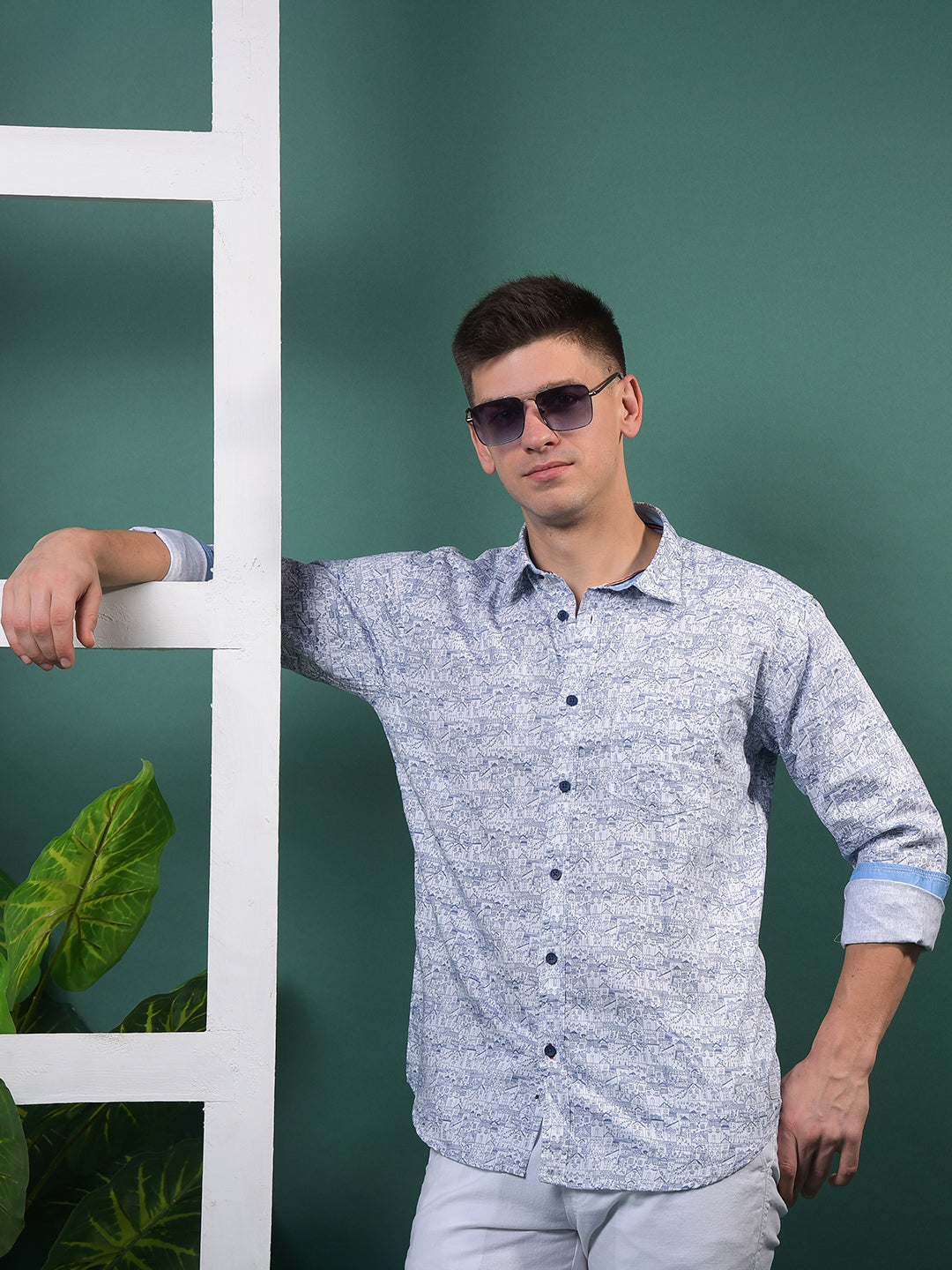 COBB BLUE PRINTED SLIM-FIT CASUAL SHIRT
