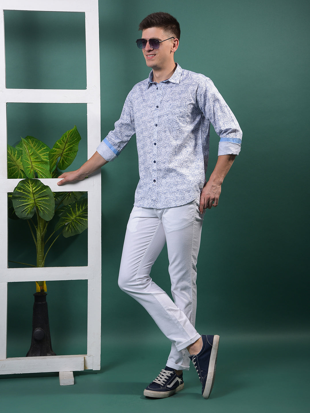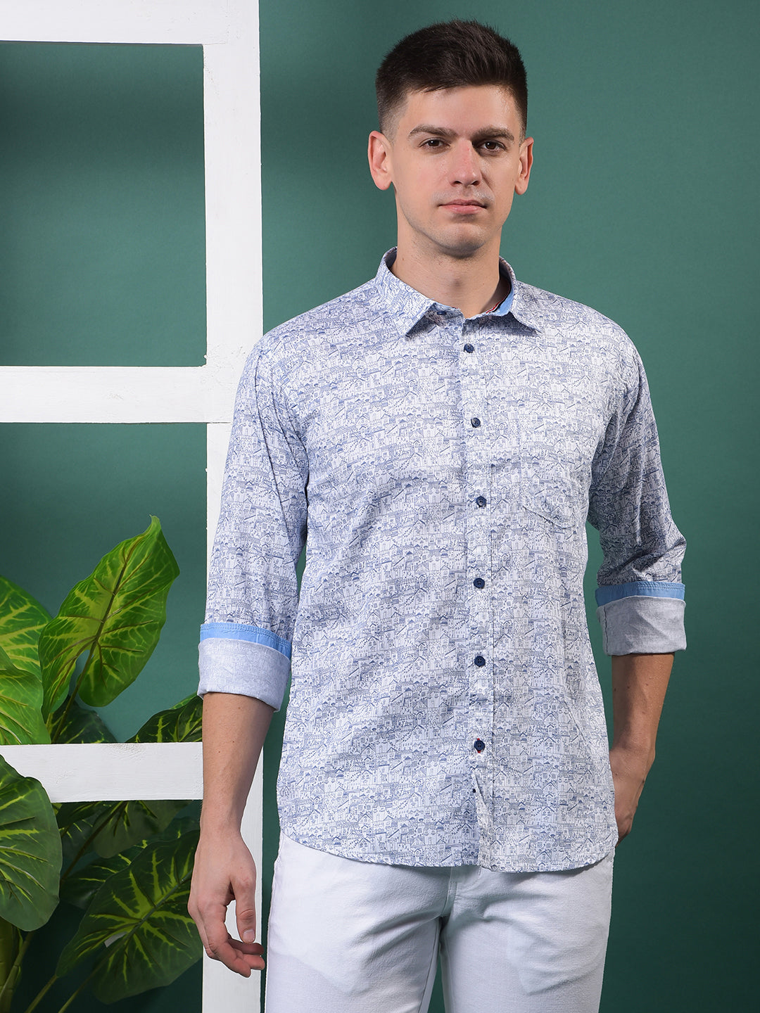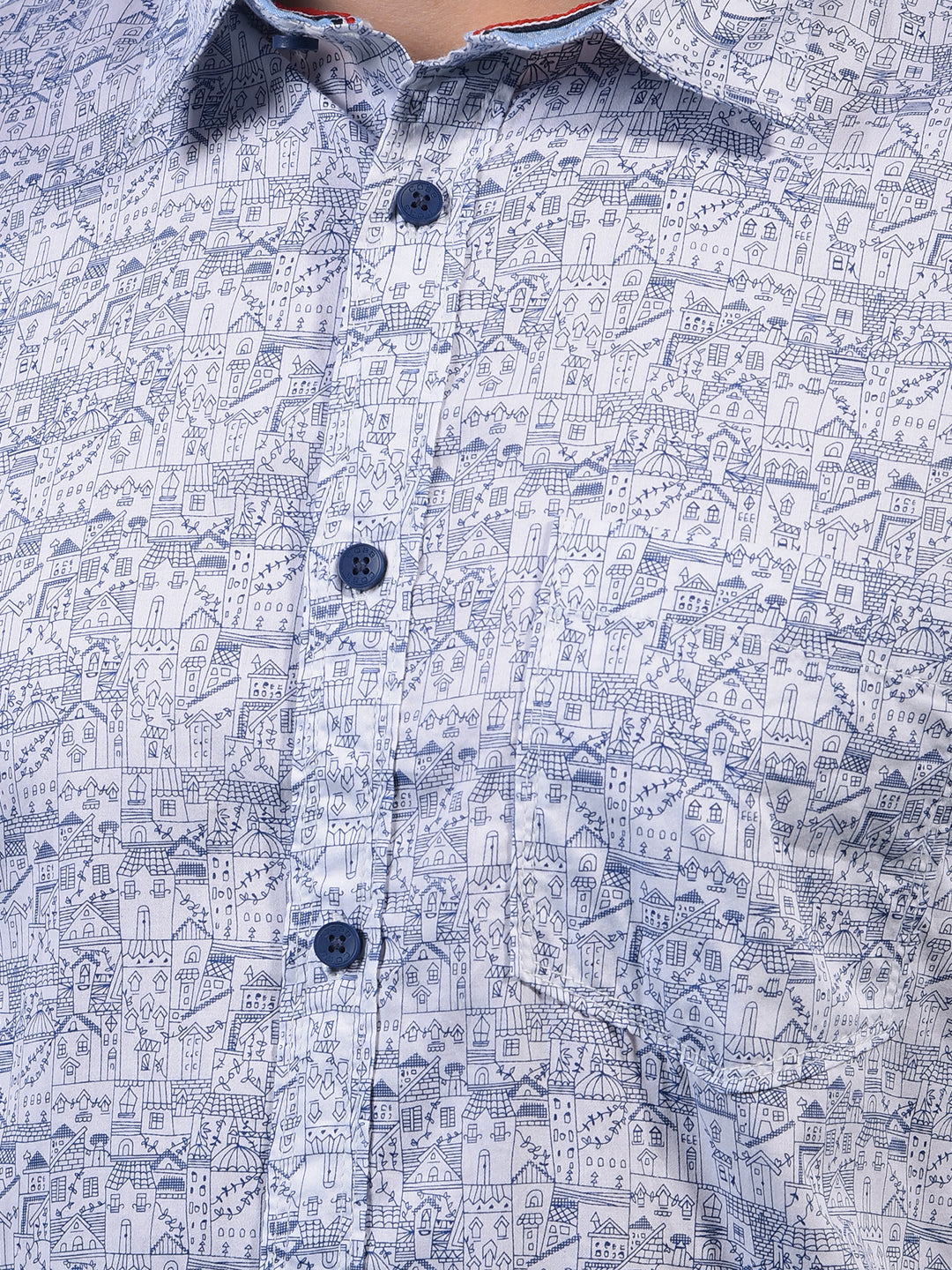 COBB BLUE PRINTED SLIM-FIT CASUAL SHIRT