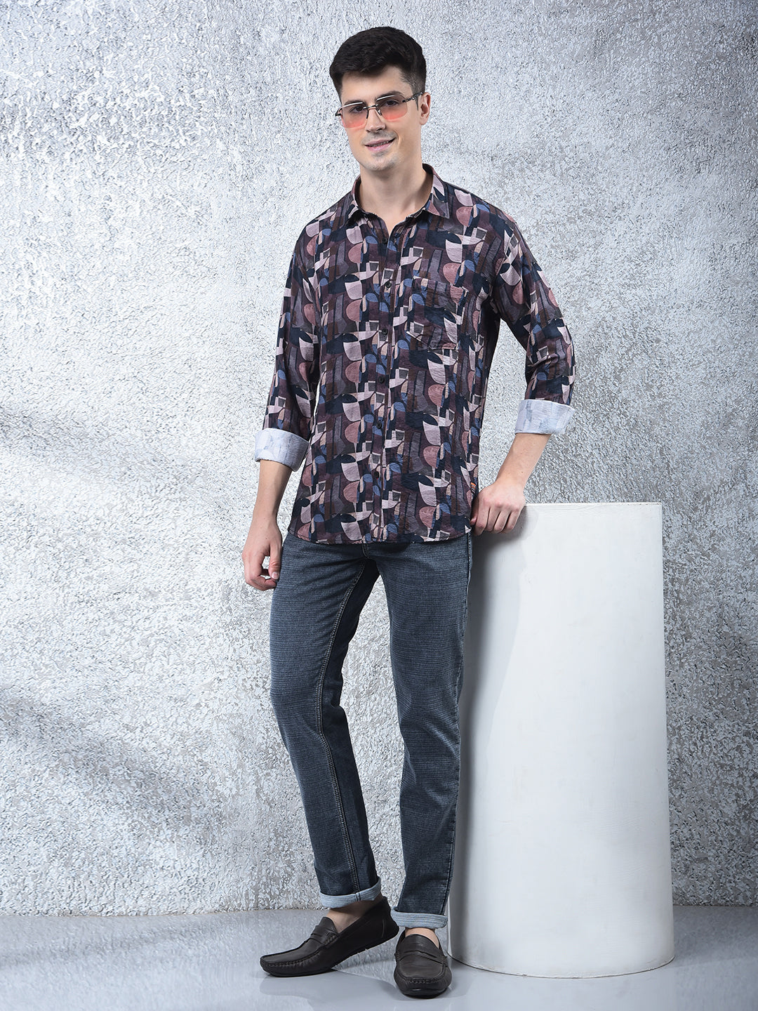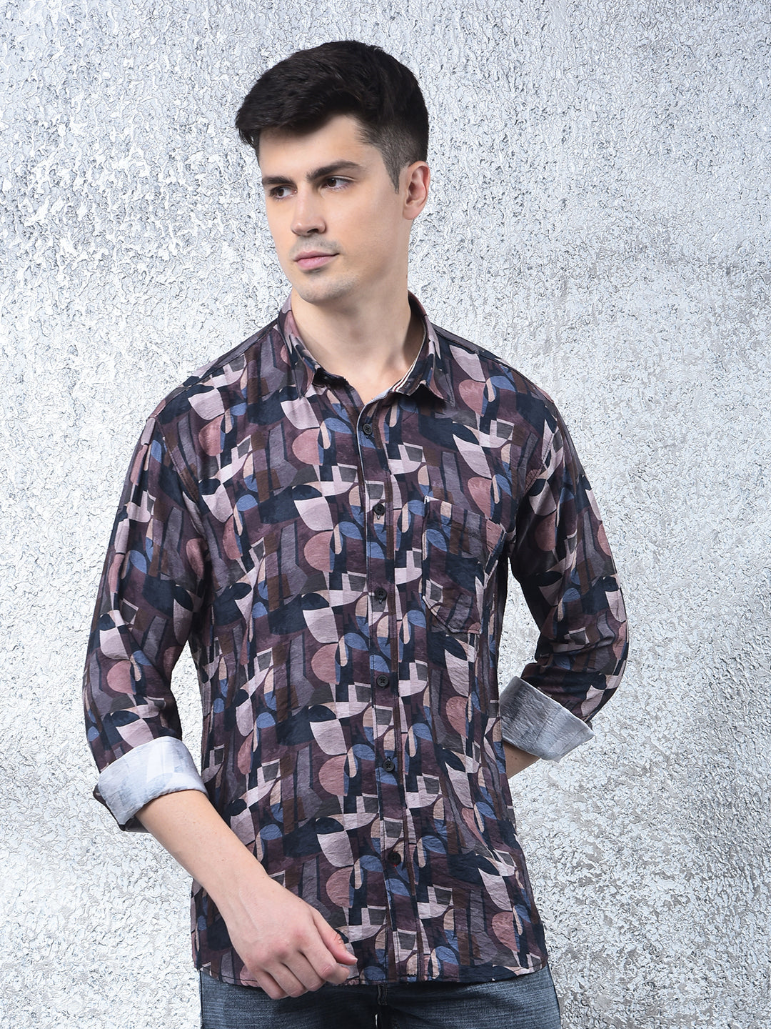 COBB Wine Printed Casual Shirt – crafted in premium fabric with a trendy print and slim-fit design. Stylish yet comfortable, this shirt is perfect for casual outings and smart everyday wear.