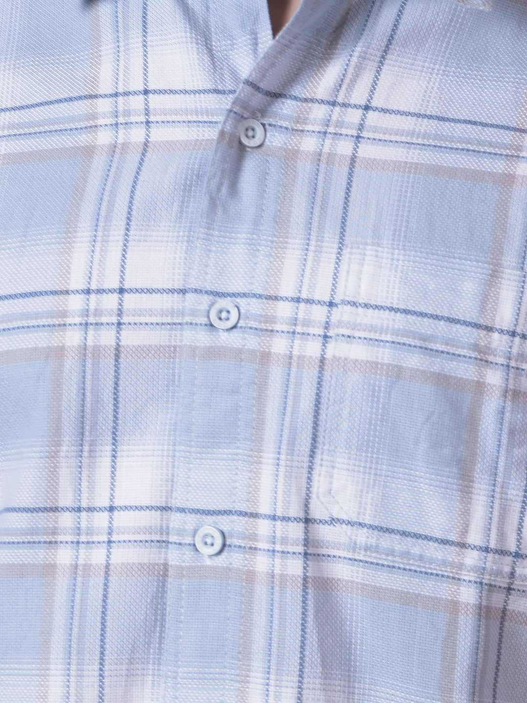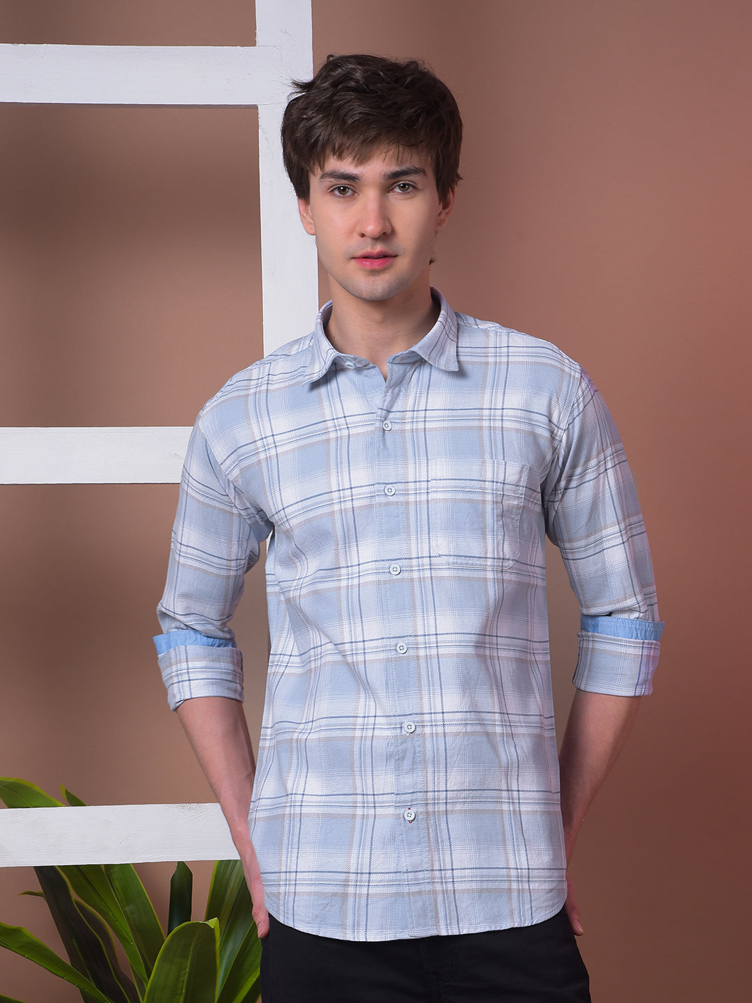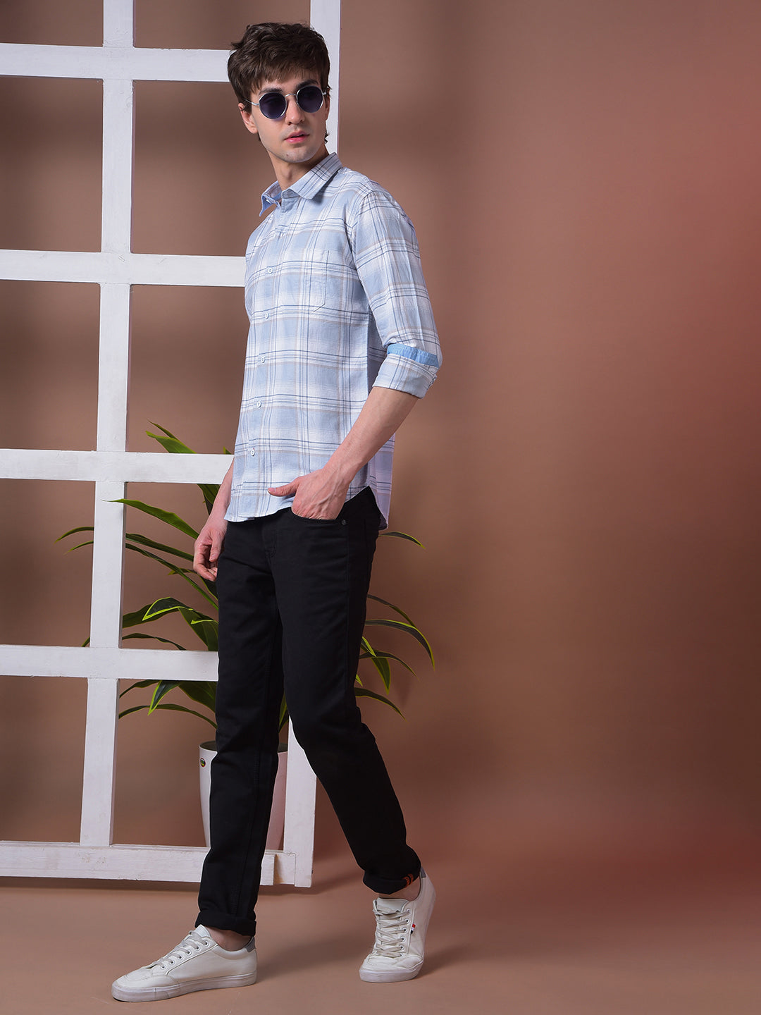 Classic checks meet fresh tones — Cobb’s Sky Blue Checked Slim-Fit Casual Shirt brings smart style and airy comfort to your everyday look.