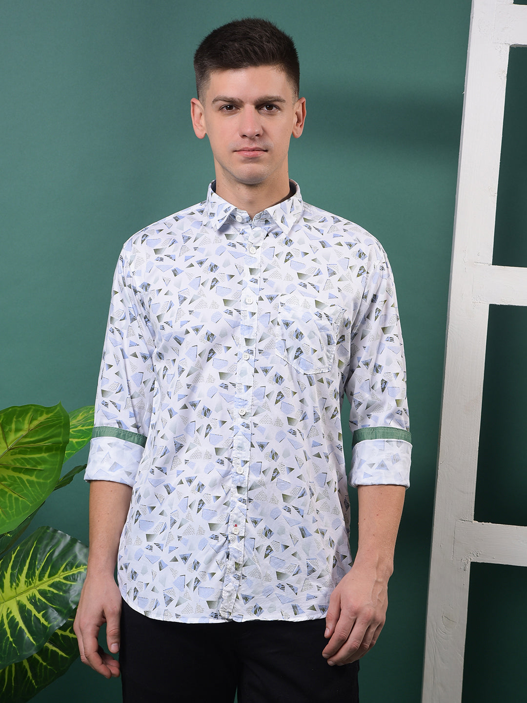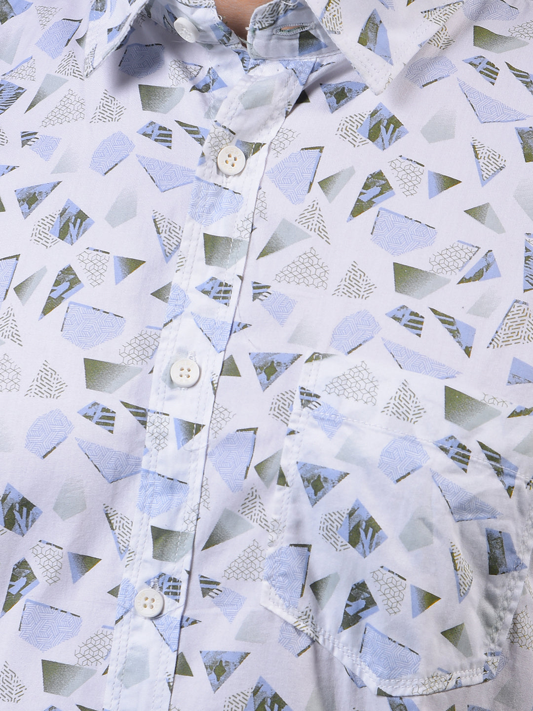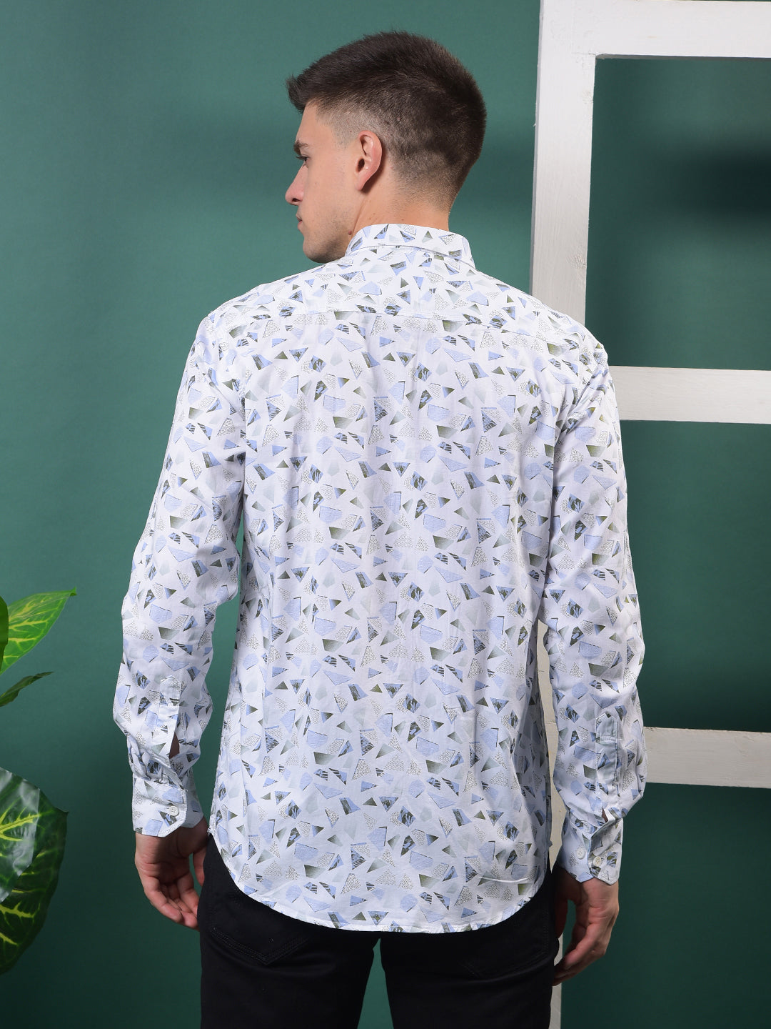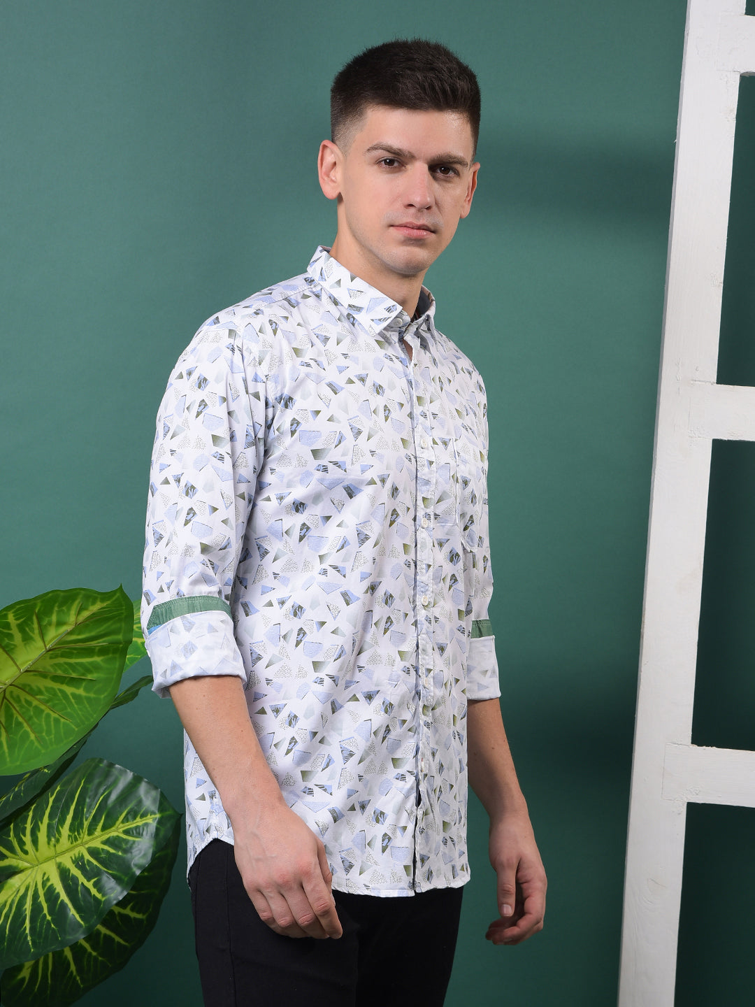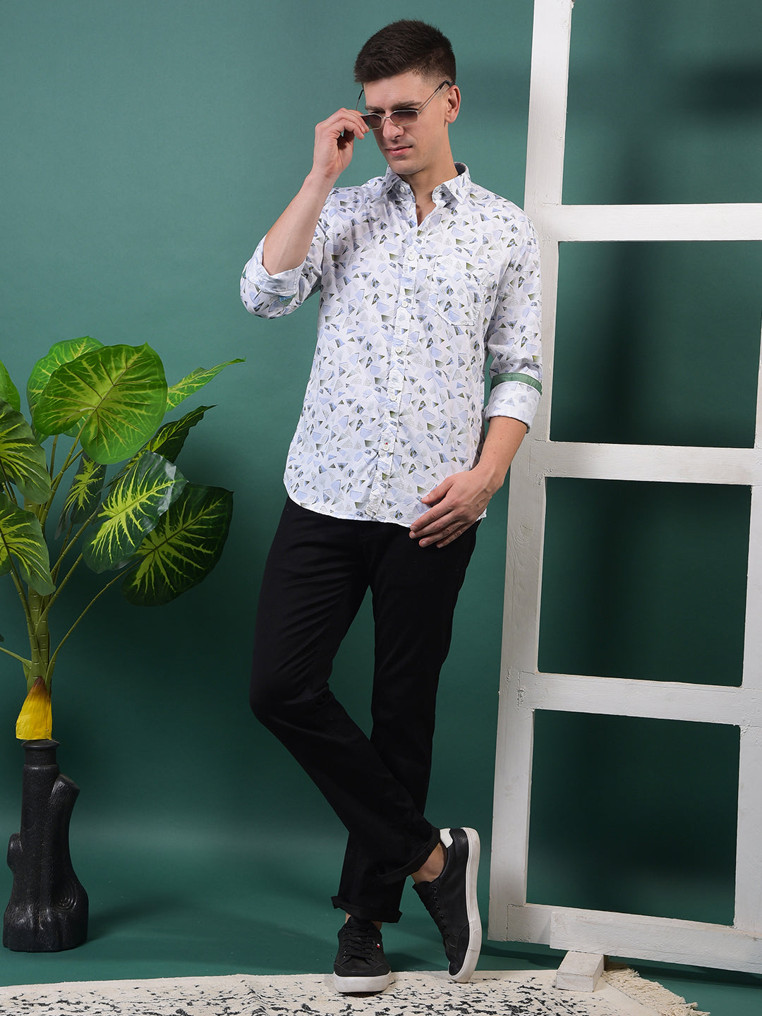 Clean, crisp, and contemporary — Cobb’s White Printed Slim-Fit Casual Shirt adds a touch of refined flair to your everyday style.