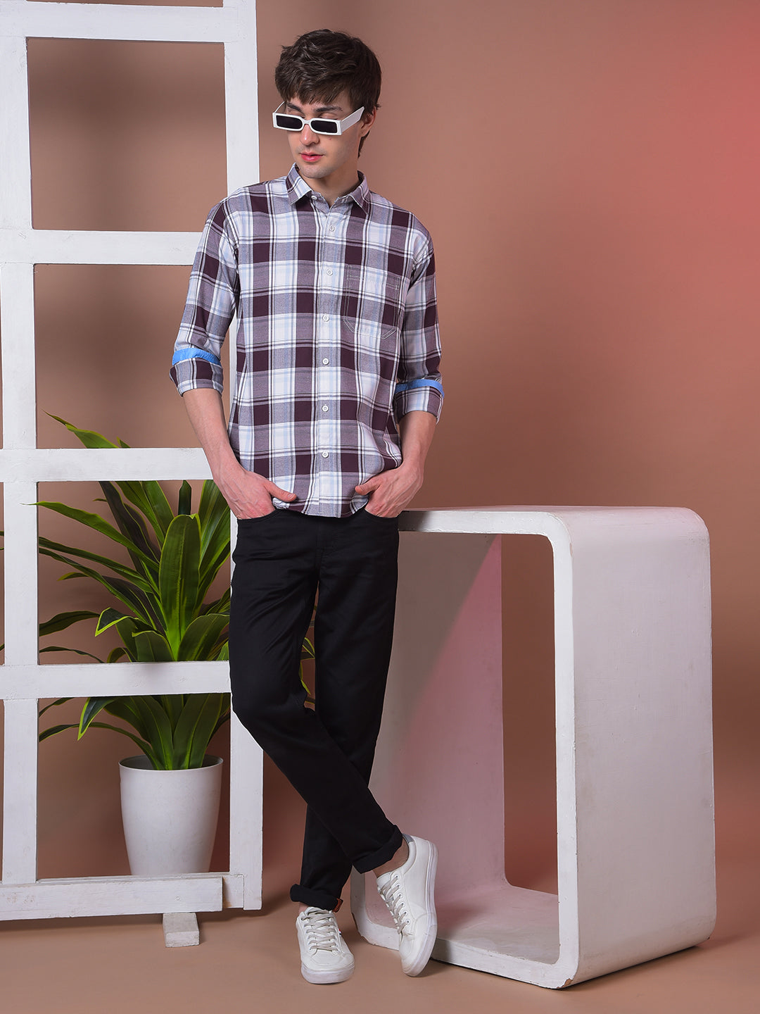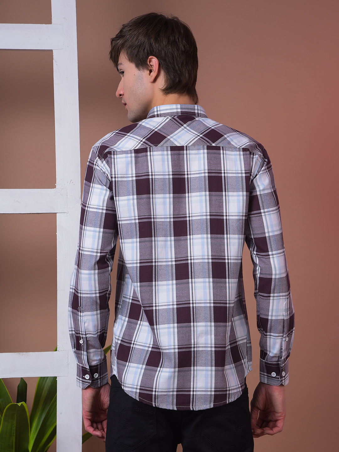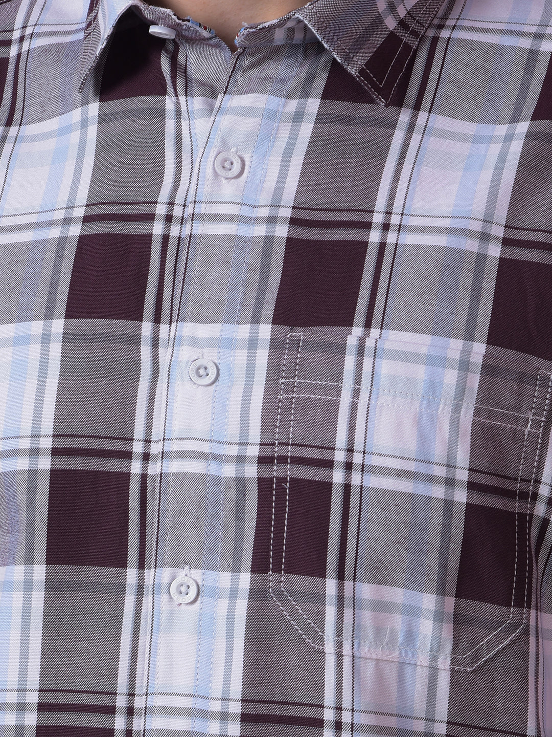 COBB Wine Checked Slim-Fit Casual Shirt showcases a rich wine hue with classic checks, tailored for a sharp, modern fit ideal for casual or semi-formal occasions.
