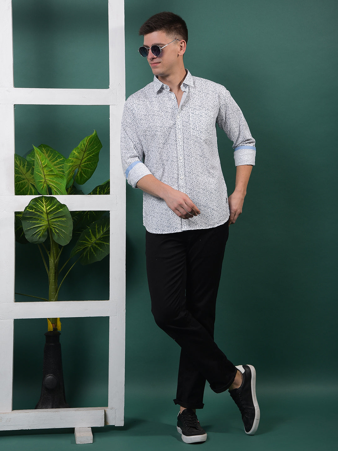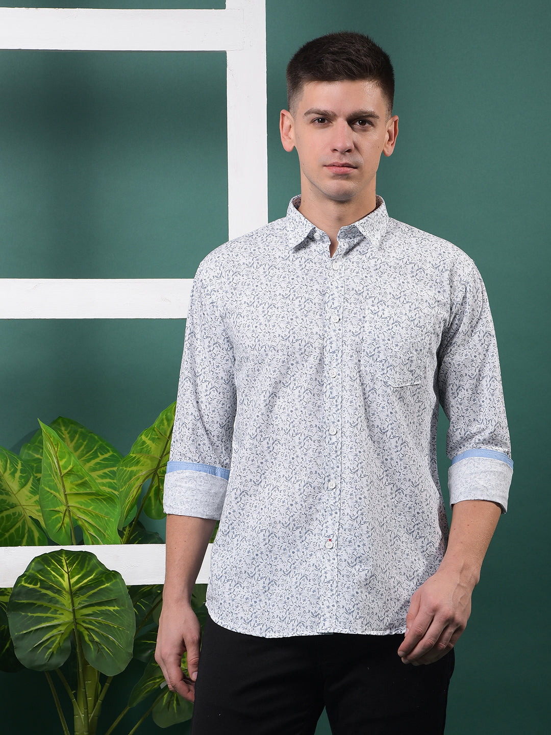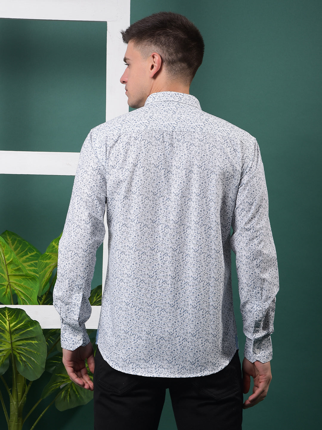 COBB BLUE PRINTED SLIM-FIT CASUAL SHIRT