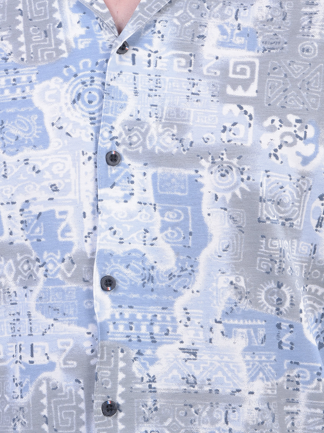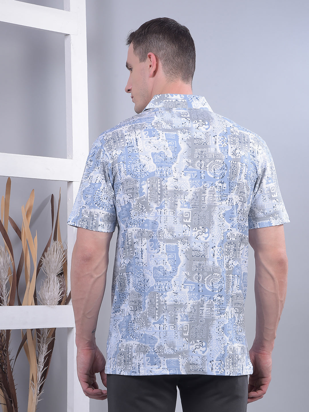 COBB SKY BLUE PRINTED HALF-SLEEVE CASUAL SHIRT