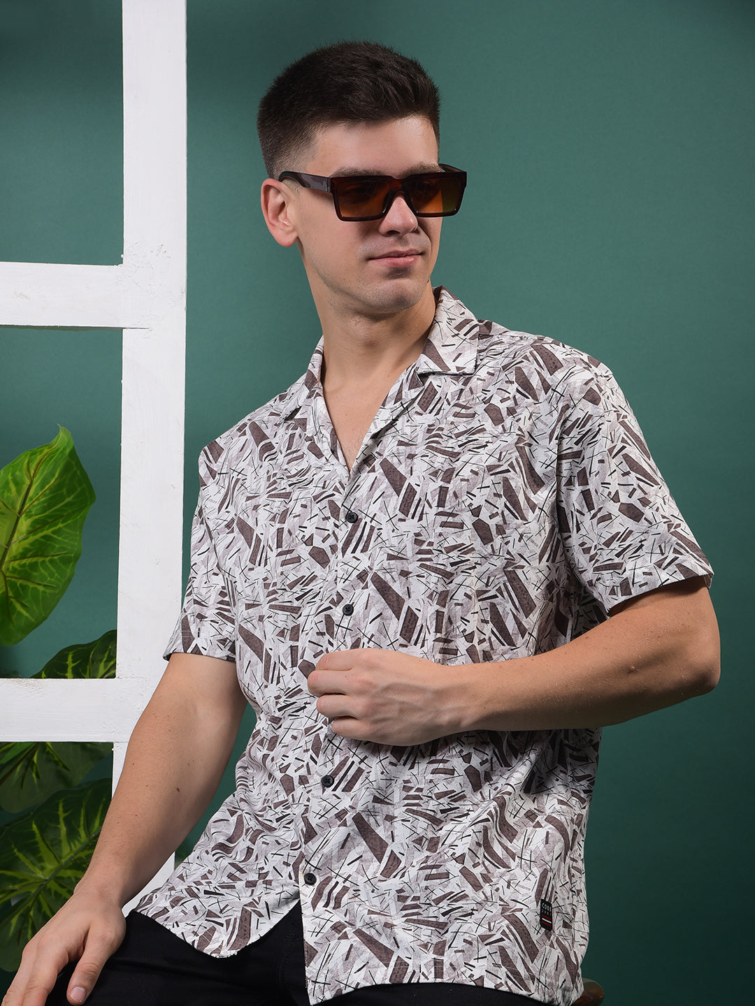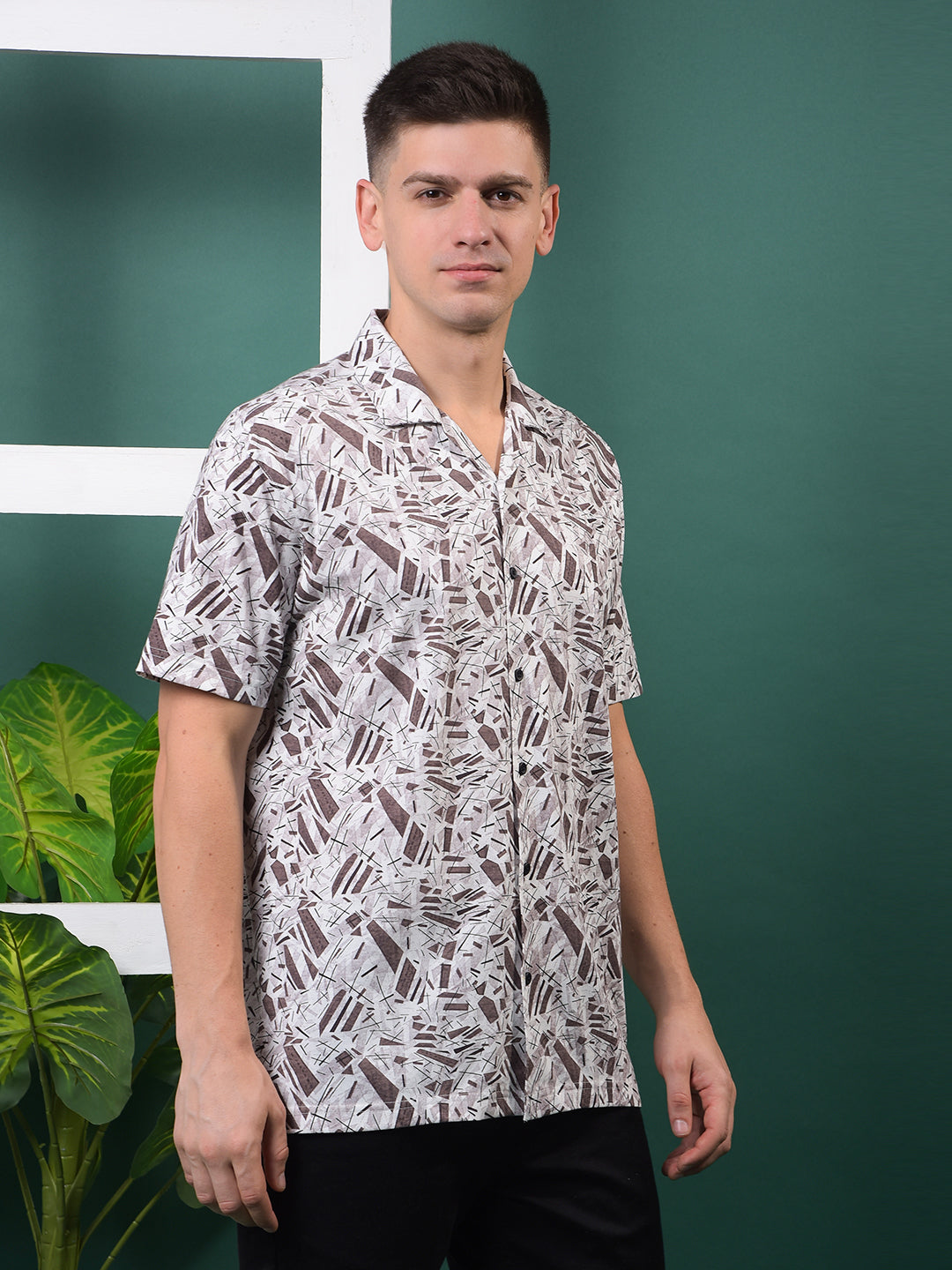 Rich tones and bold prints ‰ÛÓ Cobb‰۪s Coffee Printed Half-Sleeve Casual Shirt brings a warm, confident vibe to your casual wardrobe.