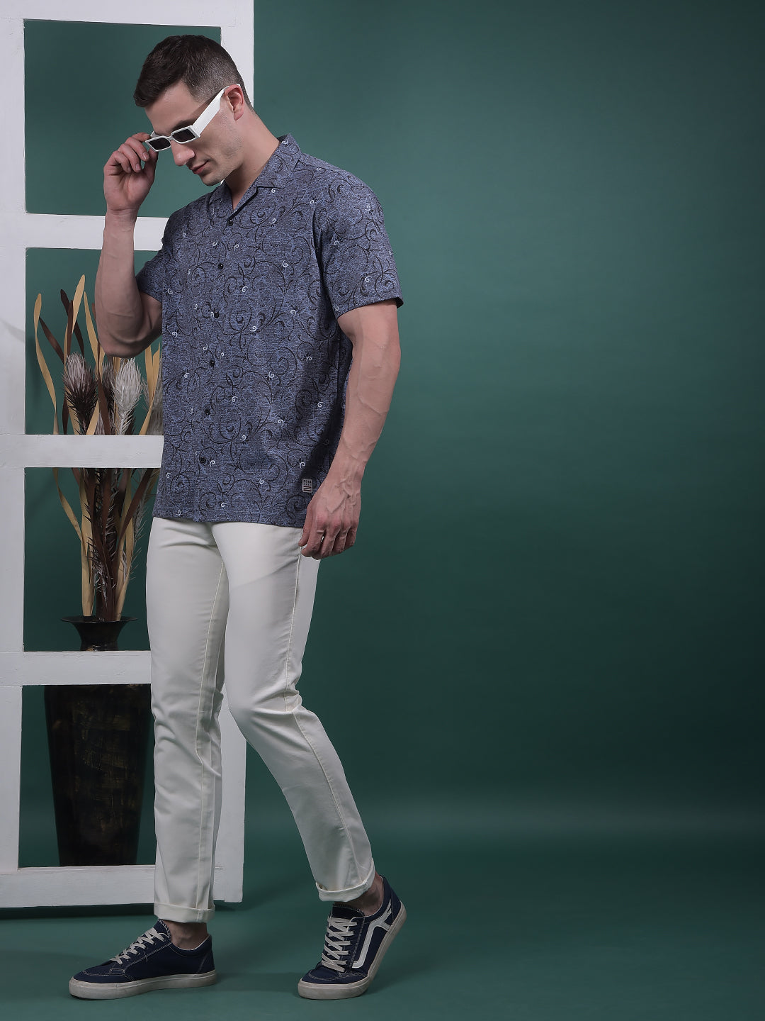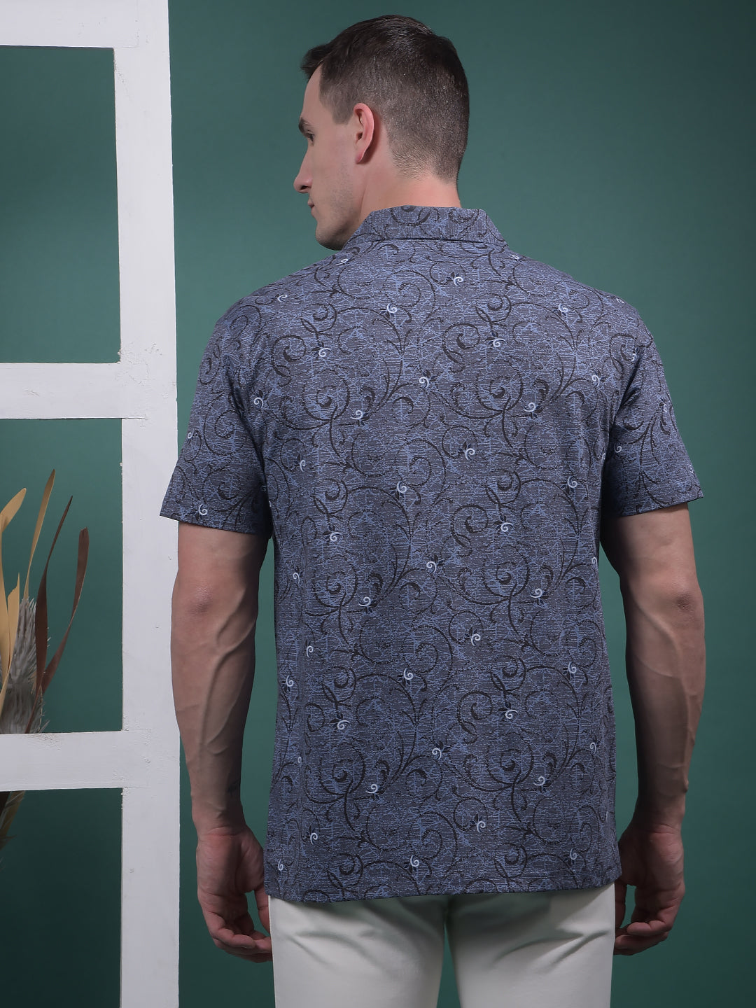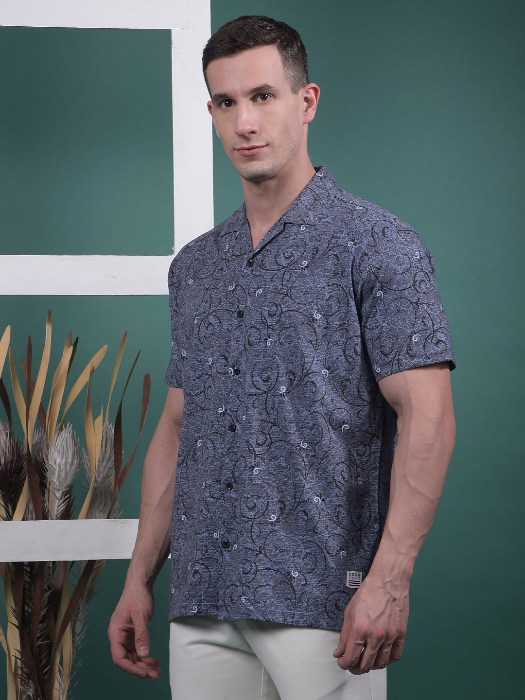 COBB BLUE PRINTED HALF-SLEEVE CASUAL SHIRT