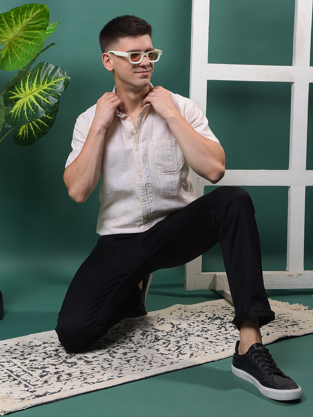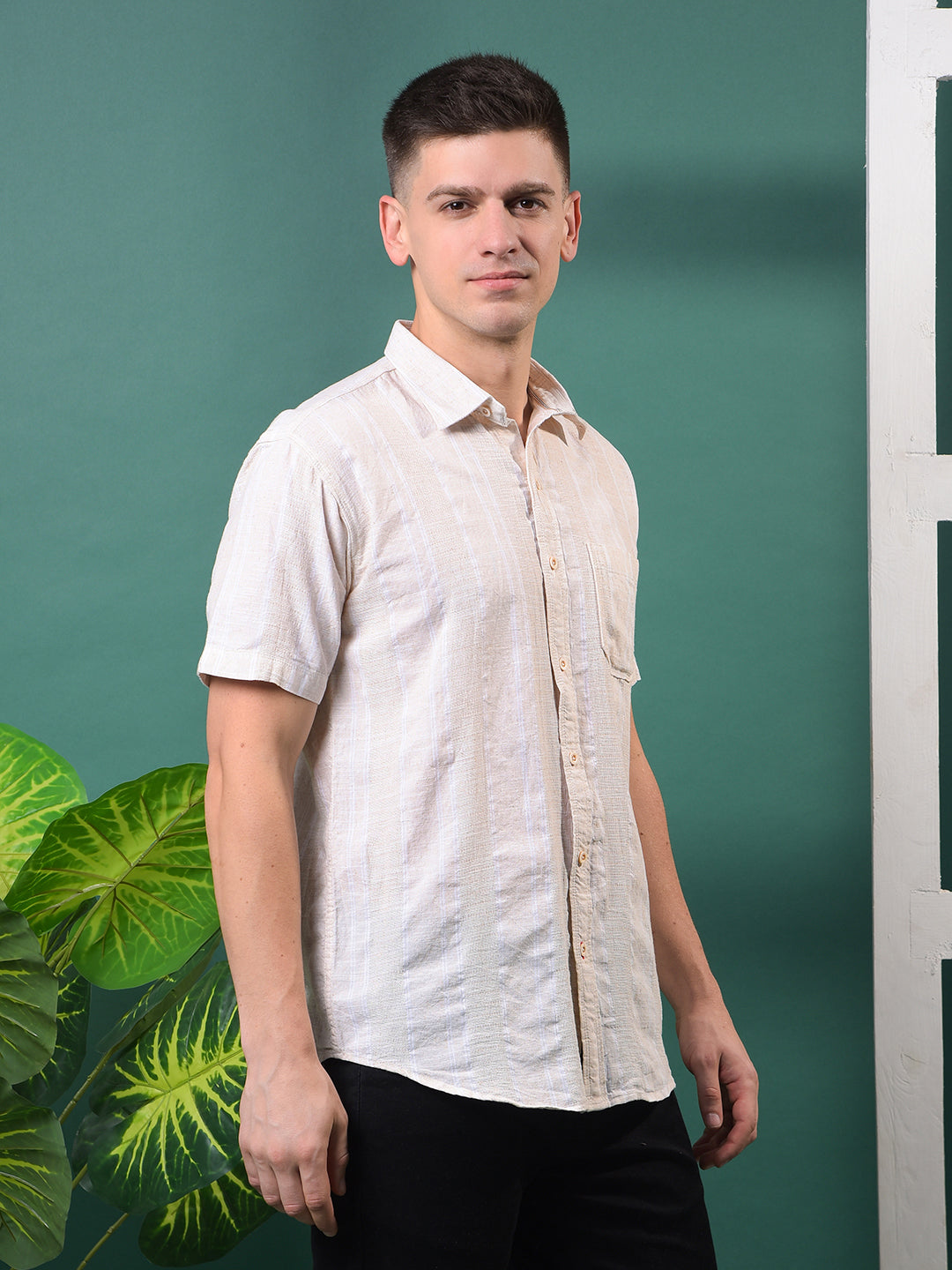 Naturally stylish ‰ÛÓ Cobb‰۪s Beige Striped Half-Sleeve Casual Shirt brings together earthy tones and relaxed charm for everyday comfort with a refined edge.