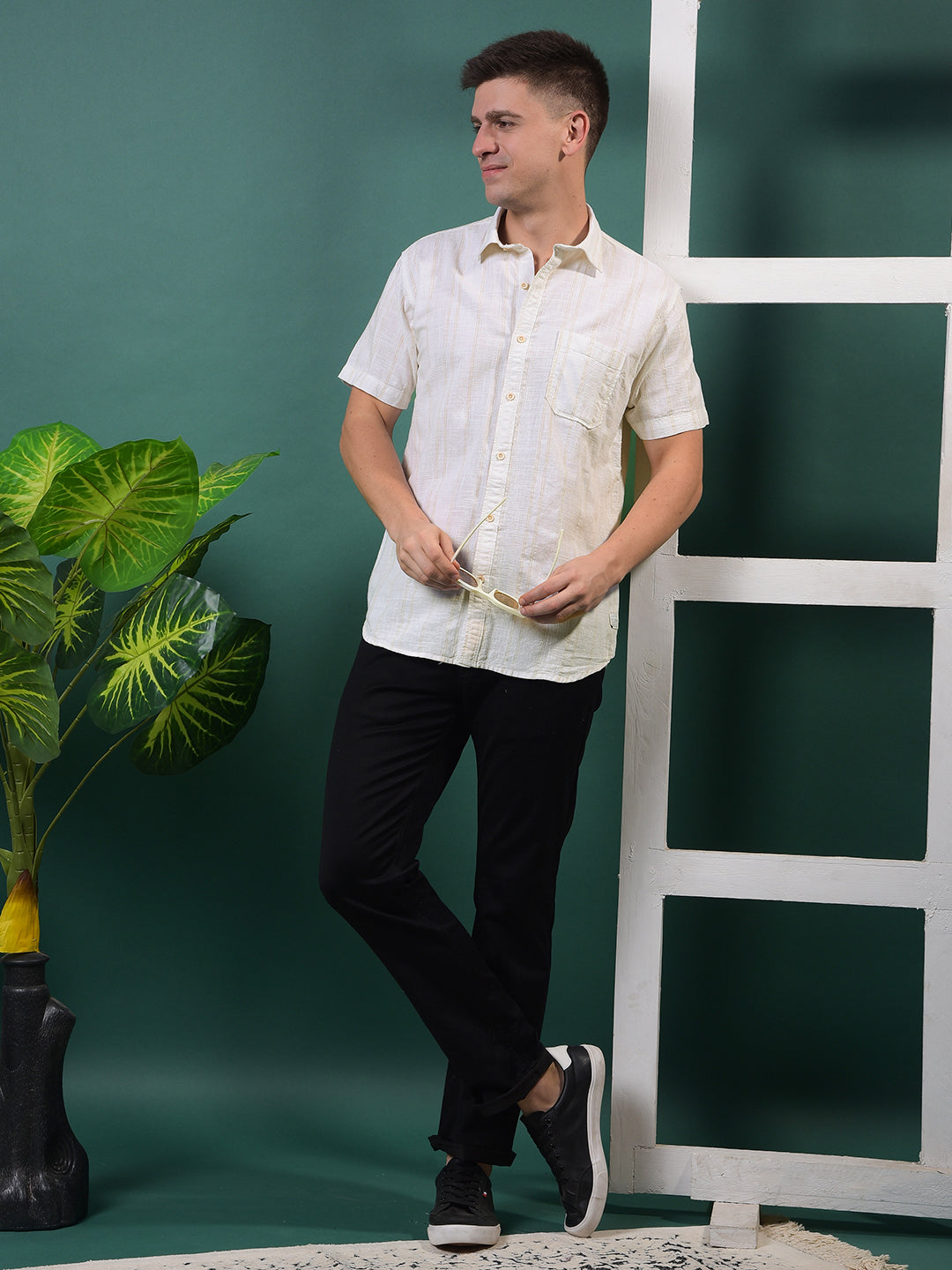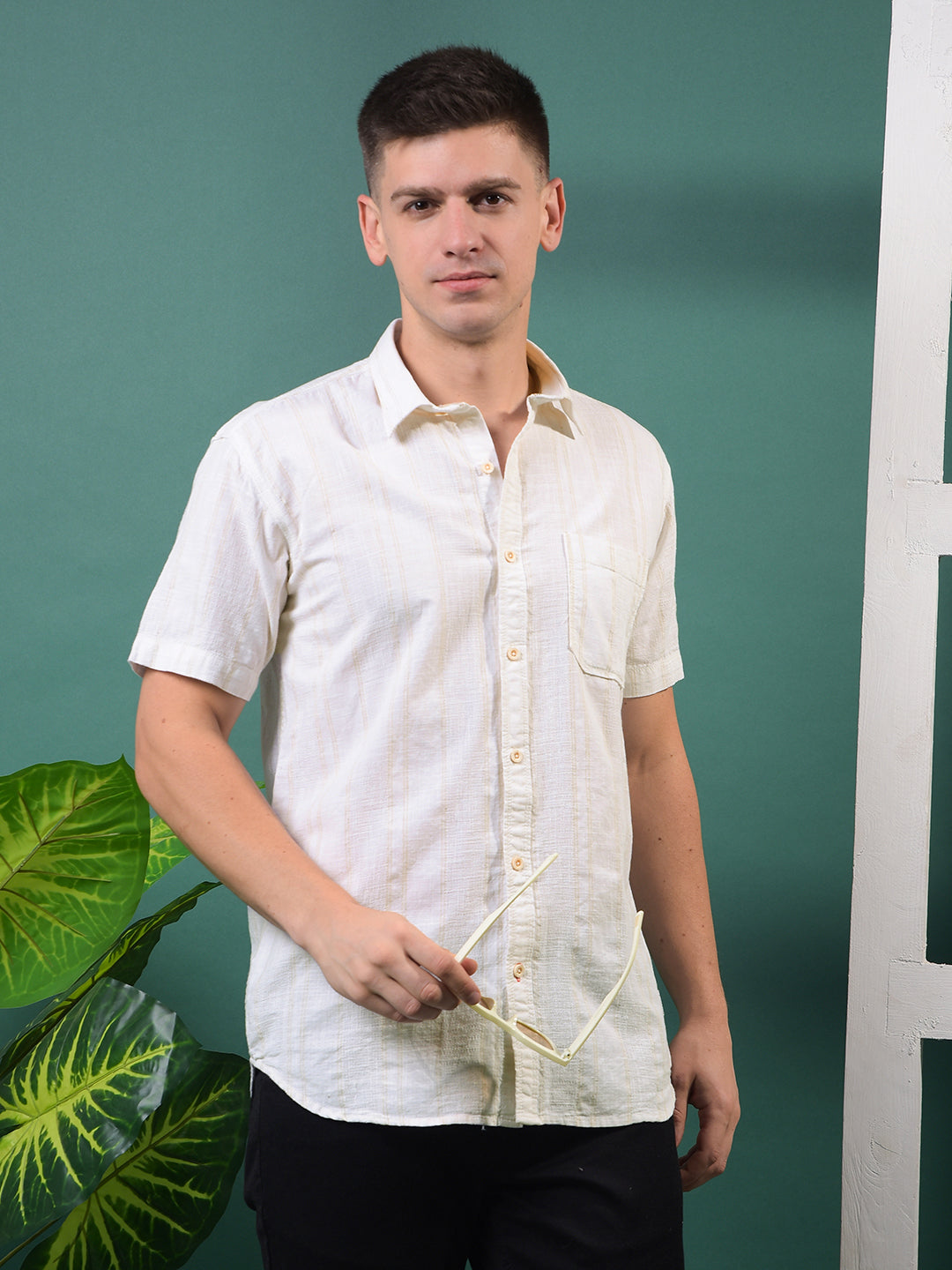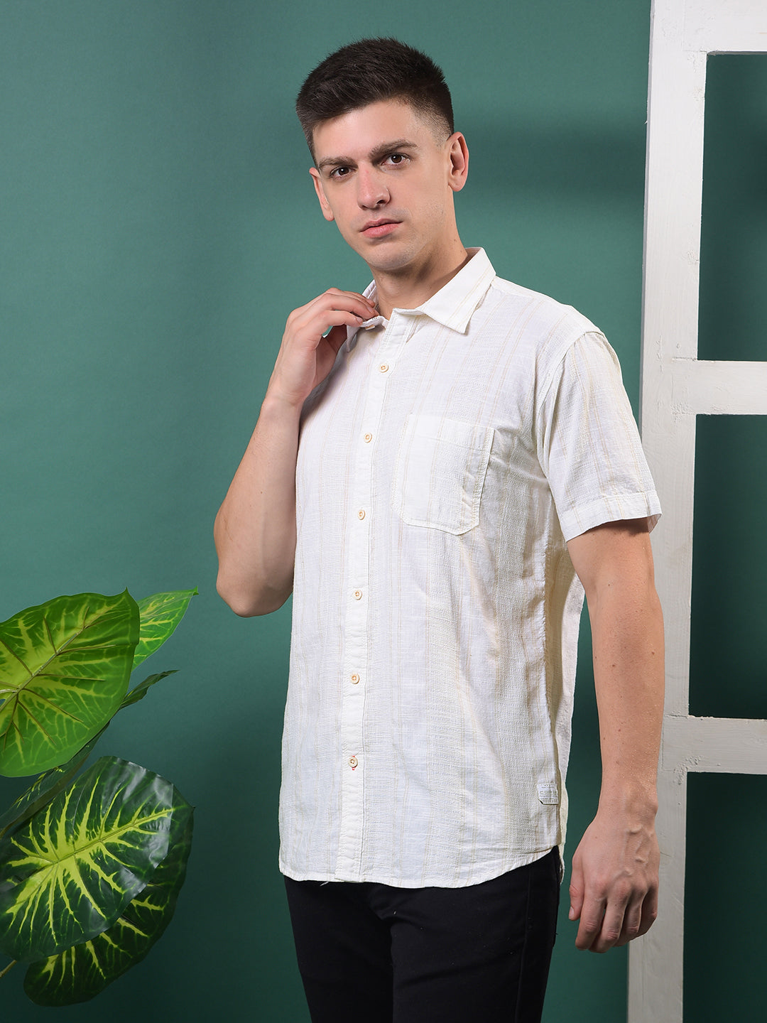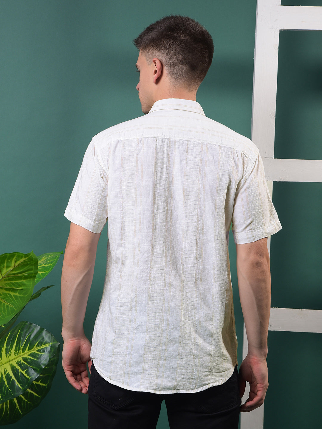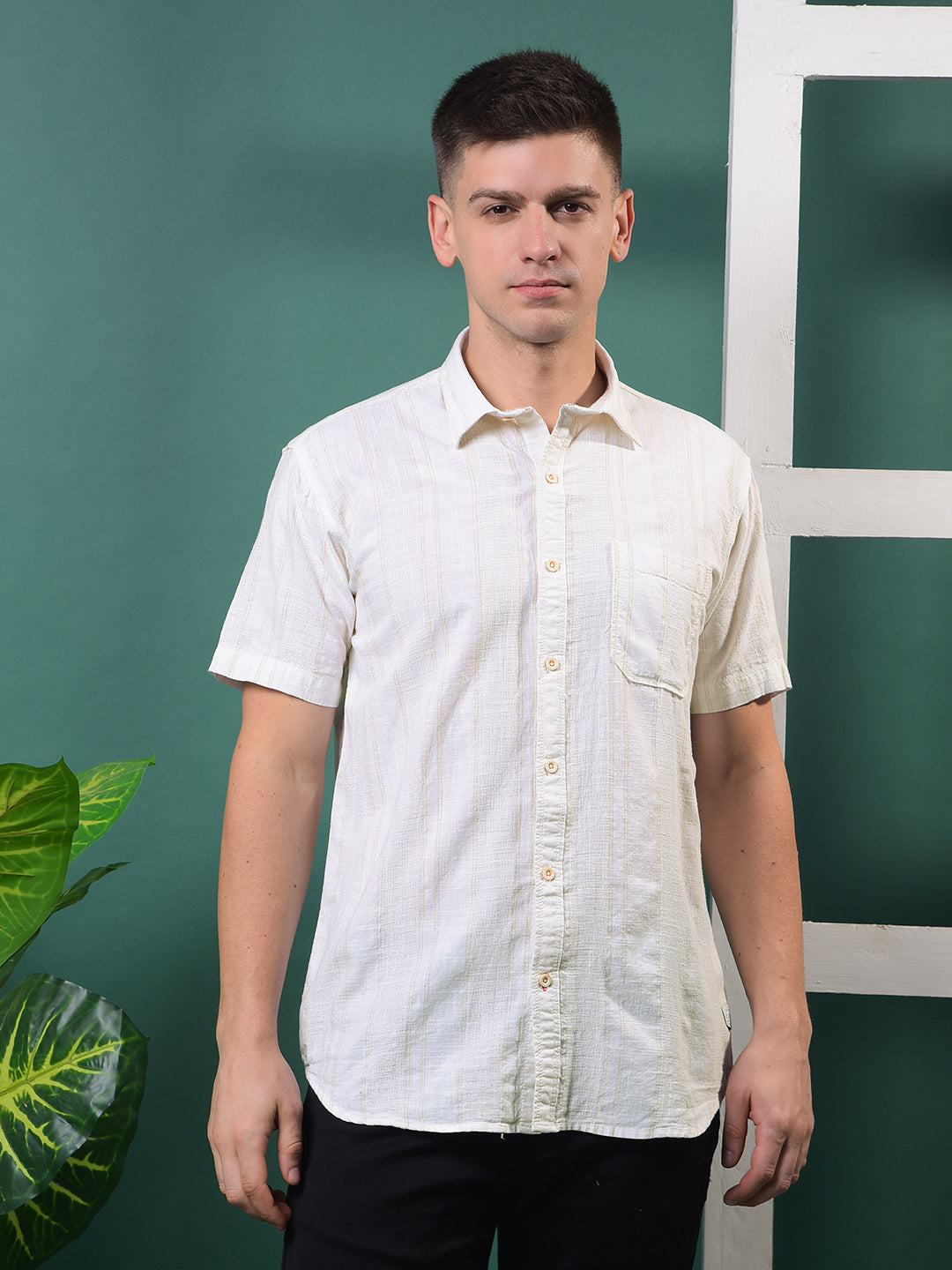 Soft tones and smart stripes ‰ÛÓ Cobb‰۪s Cream Striped Half-Sleeve Casual Shirt offers an easy blend of comfort, charm, and everyday style.