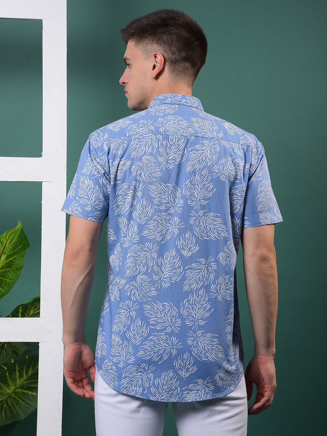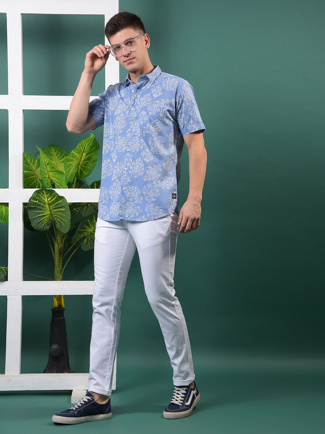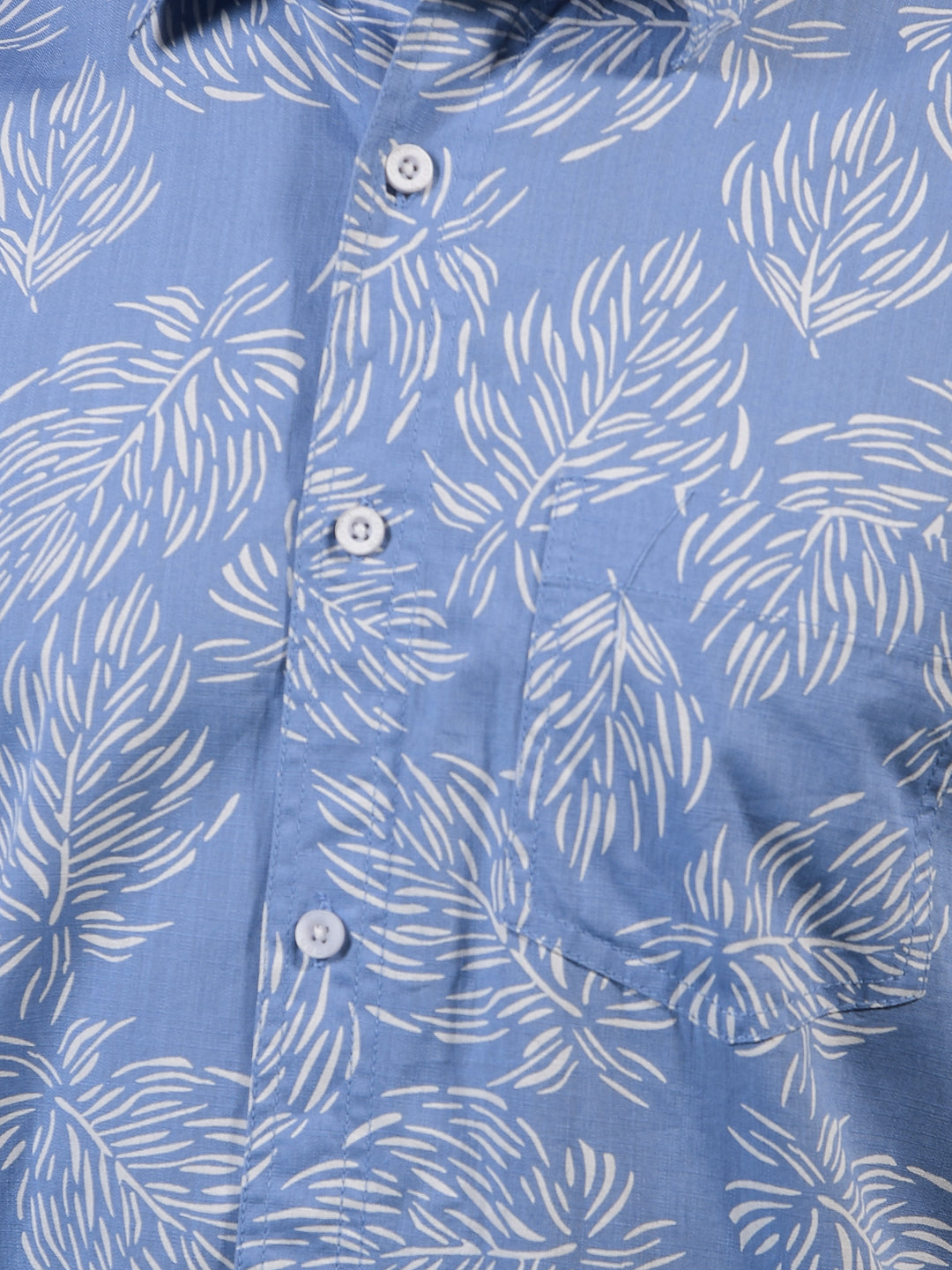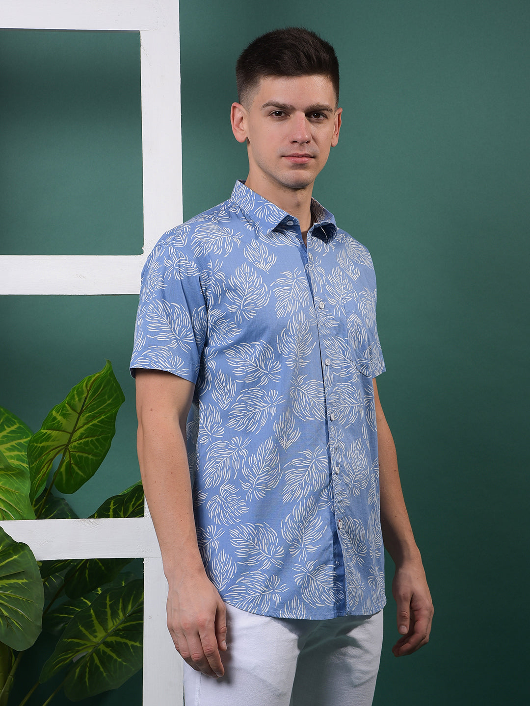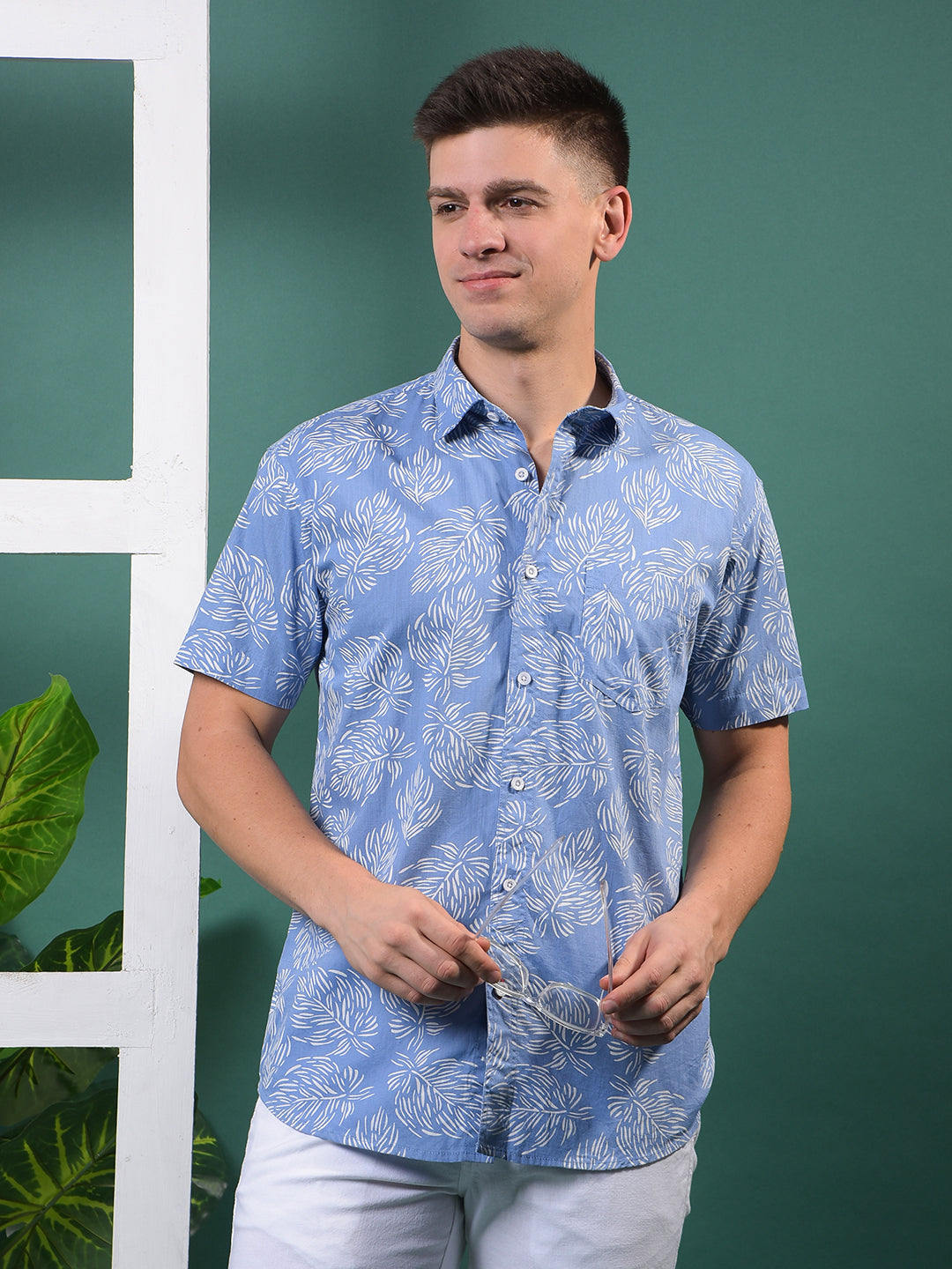 Soft hues and sharp design ‰ÛÓ Cobb‰۪s Cornflower Blue Printed Half-Sleeve Casual Shirt delivers relaxed charm with a modern, refreshing twist.