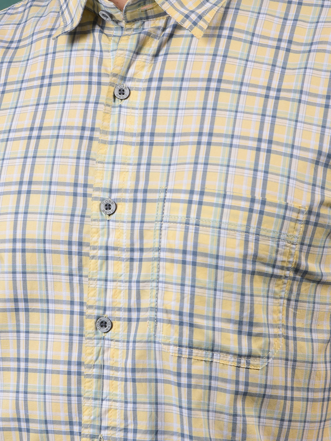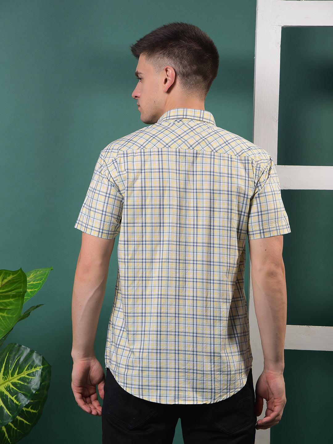COBB YELLOW CHECKED HALF-SLEEVE CASUAL SHIRT
