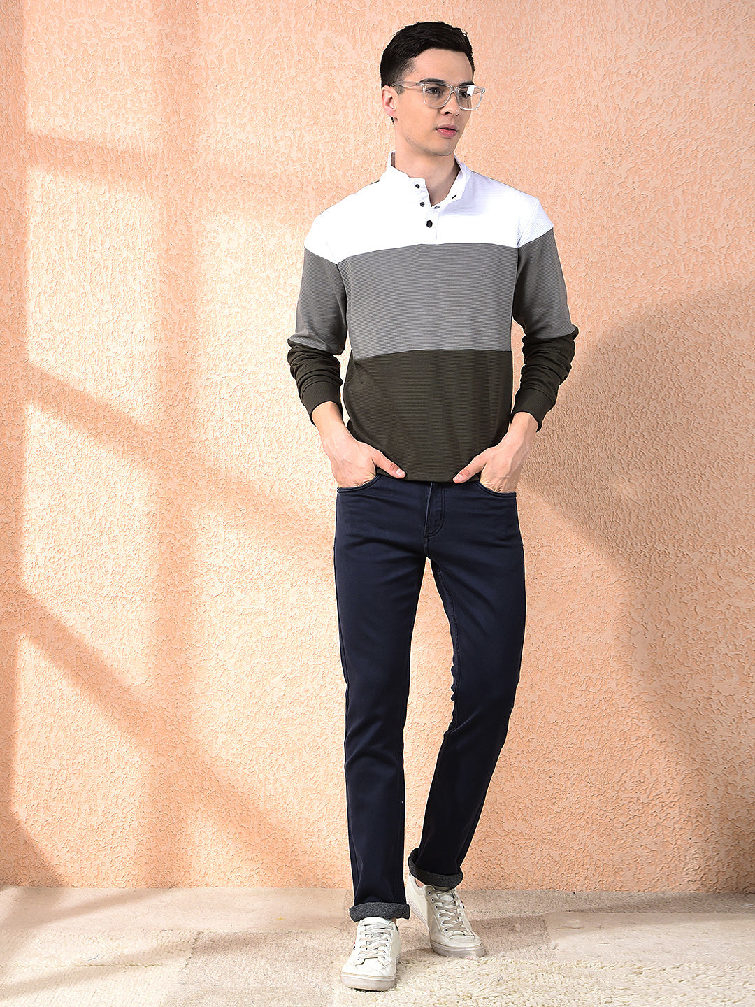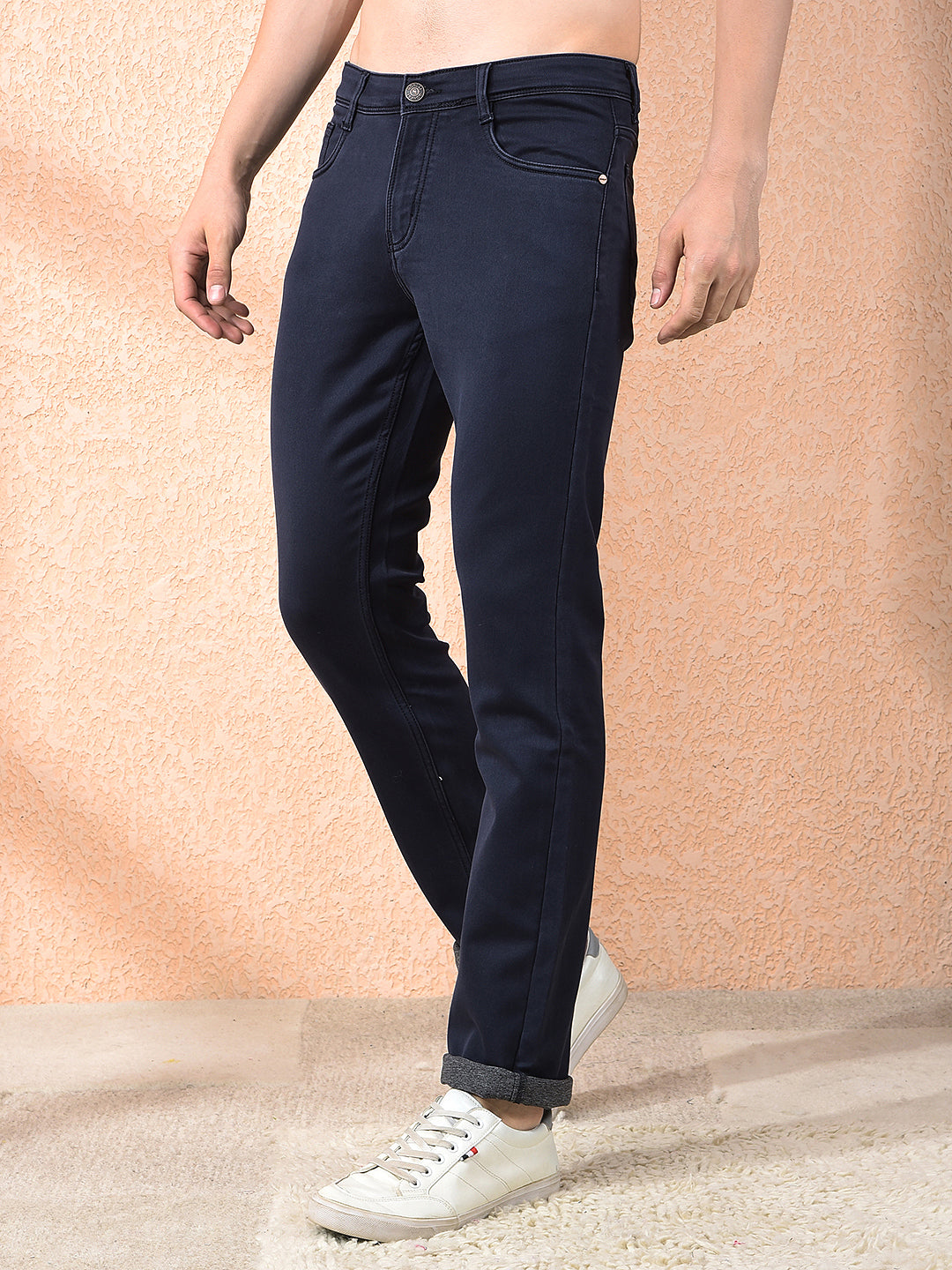 DONLAY NAVY BLUE STRAIGHT-FIT JEANS