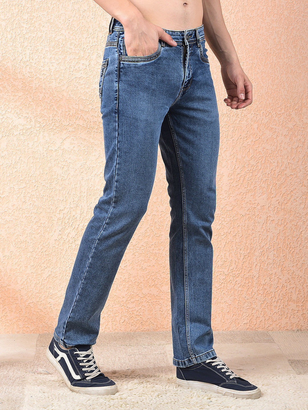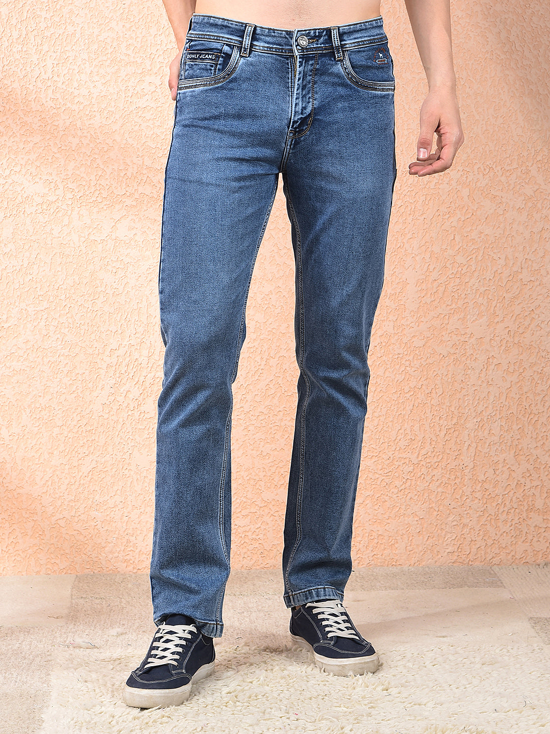DONLAY WASHED BLUE STRAIGHT-FIT JEANS
