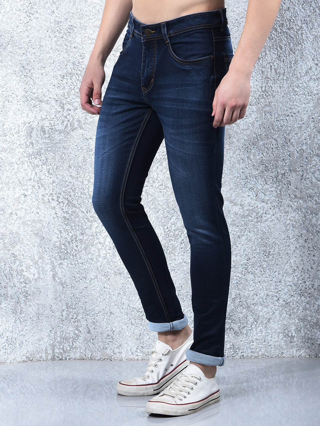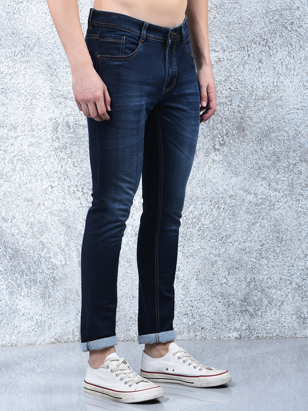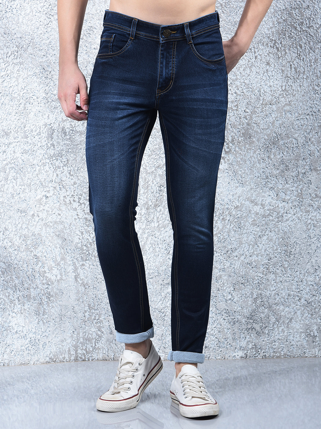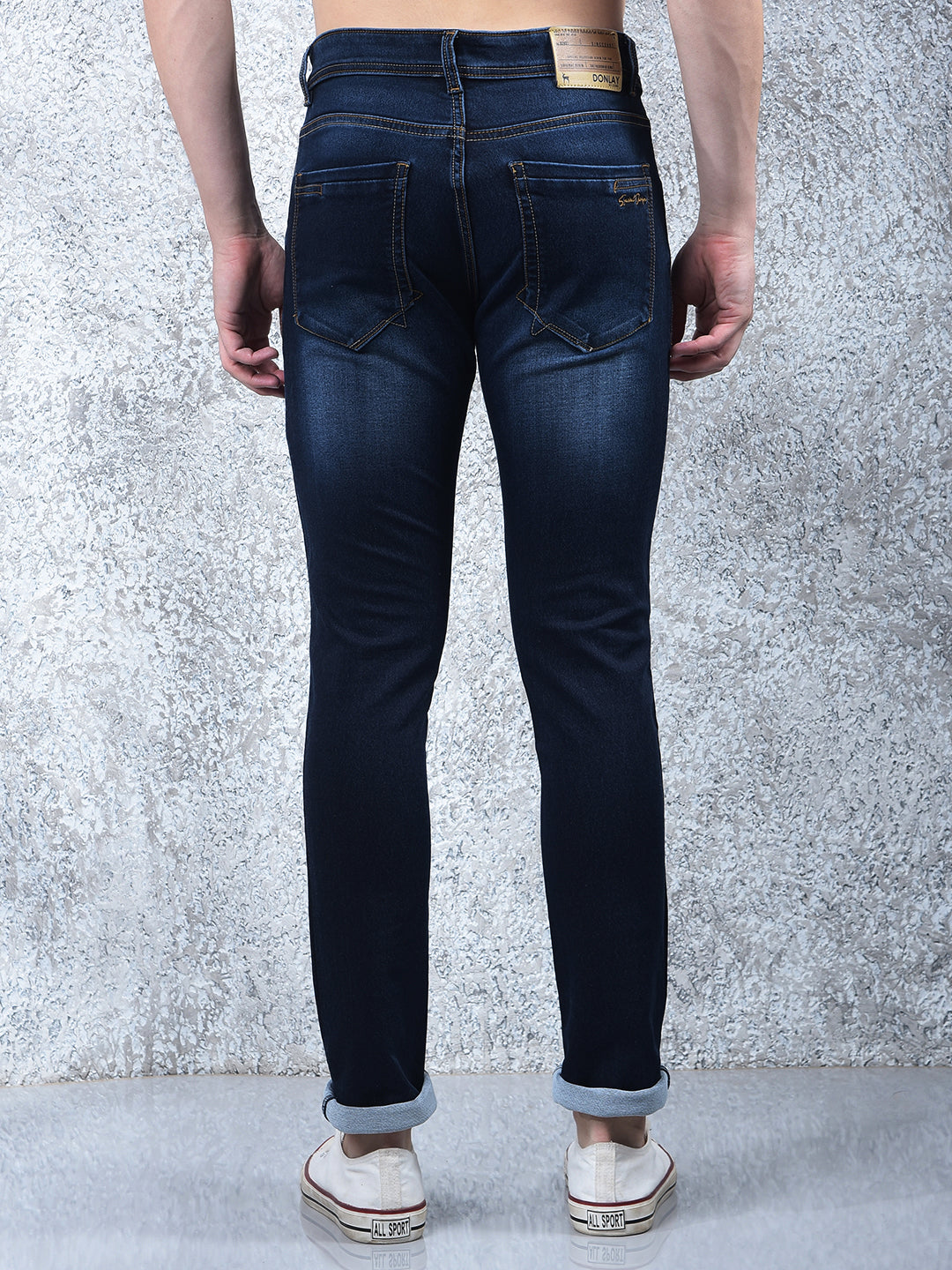 DONLAY Dark Blue Ultra-Fit Jeans – crafted from premium stretchable denim for comfort and durability. Features a rich dark blue wash with a modern ultra-fit design for a sharp, stylish look.