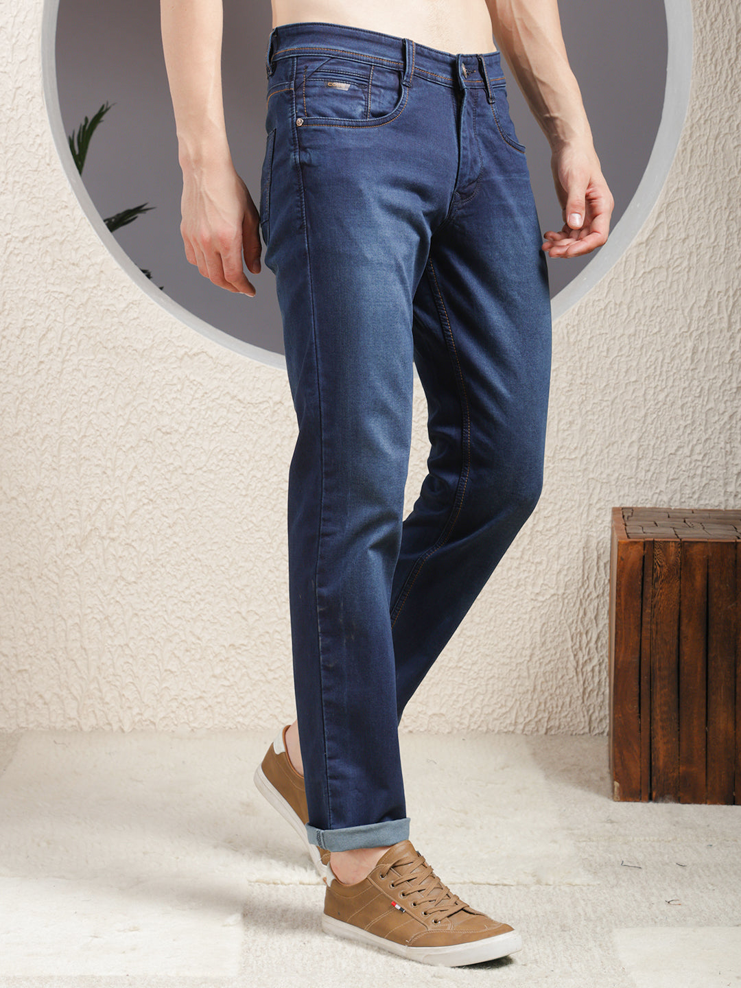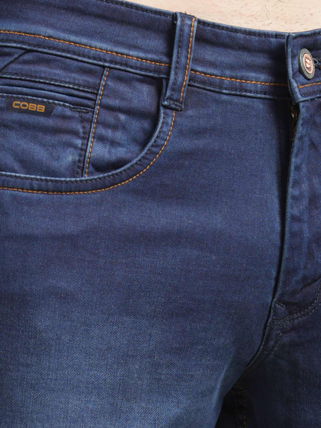 Command attention with COBB Navy Blue Straight-Fit Premium Jeans — a perfect mix of classic charm and modern comfort.