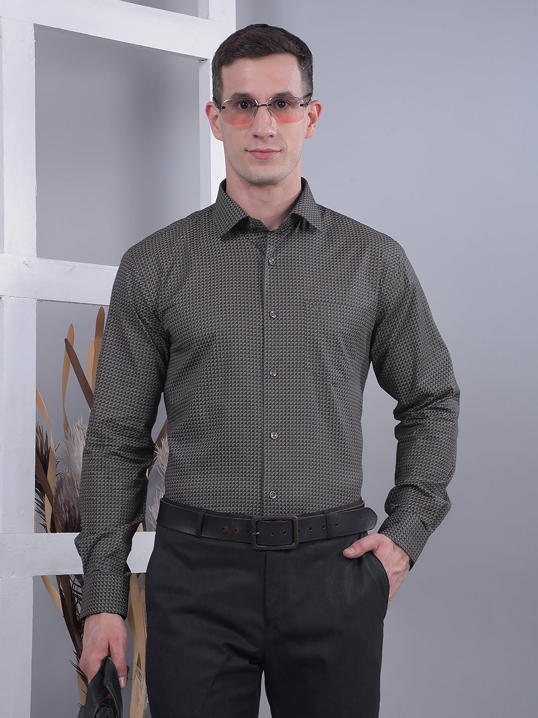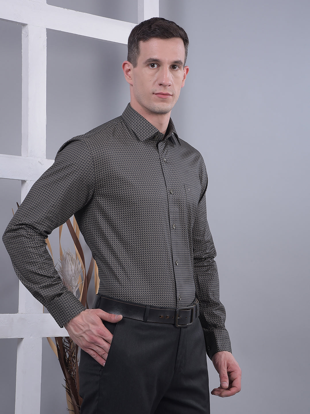 Redefine formalwear with Cobb's Coffee Self-Design Smart-Fit Shirt — rich tones and subtle texture crafted for a look that speaks understated sophistication.