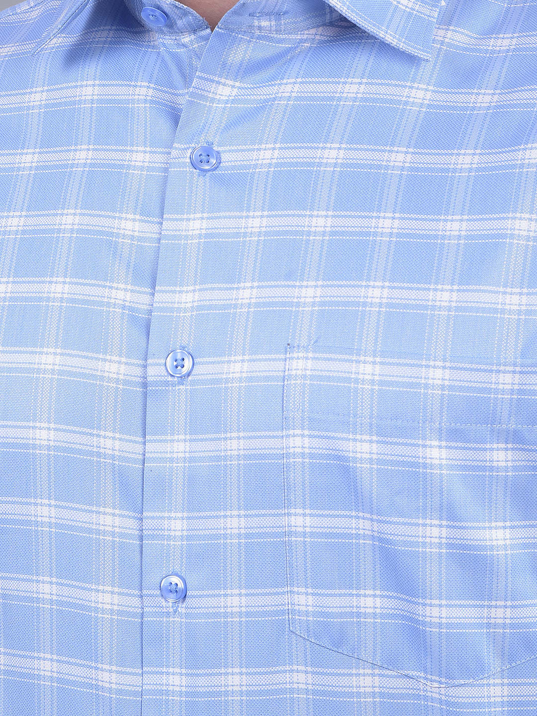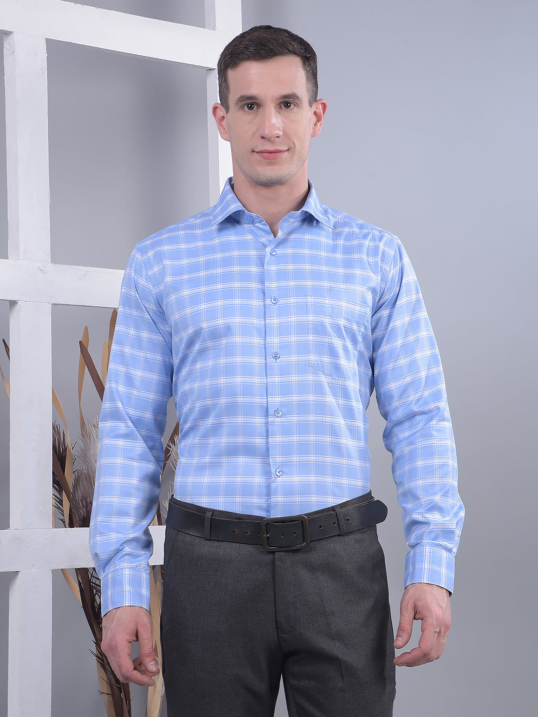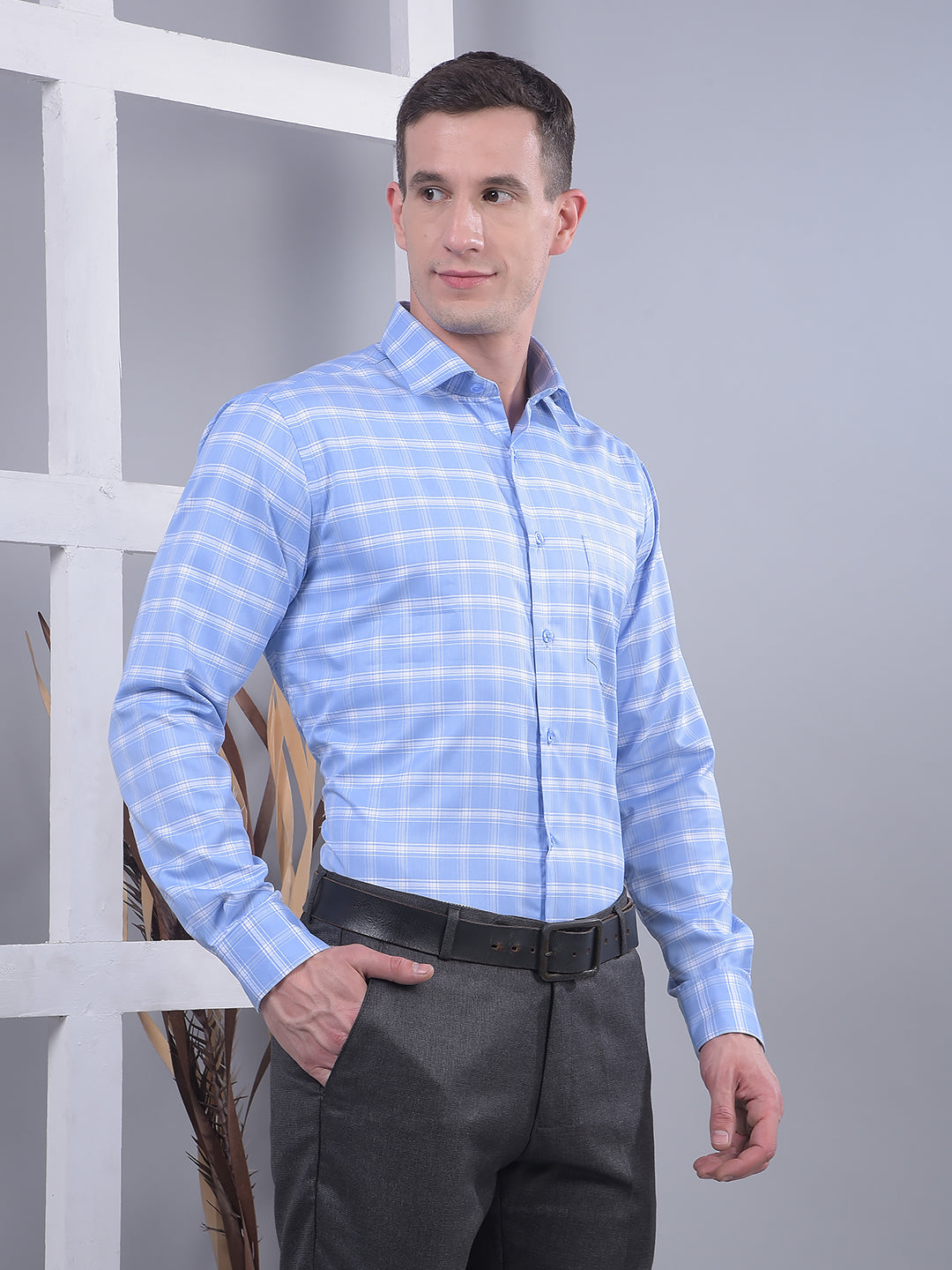 Command attention with Cobb's Blue Checked Smart-Fit Formal Shirt — a perfect blend of classic pattern and modern fit for a sharp, professional look.