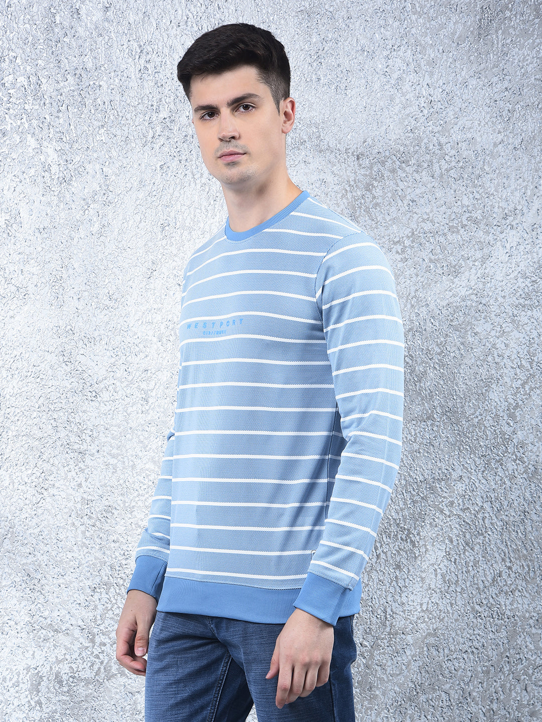 COBB SKY BLUE STRIPED FULL-SLEEVE T-SHIRT
