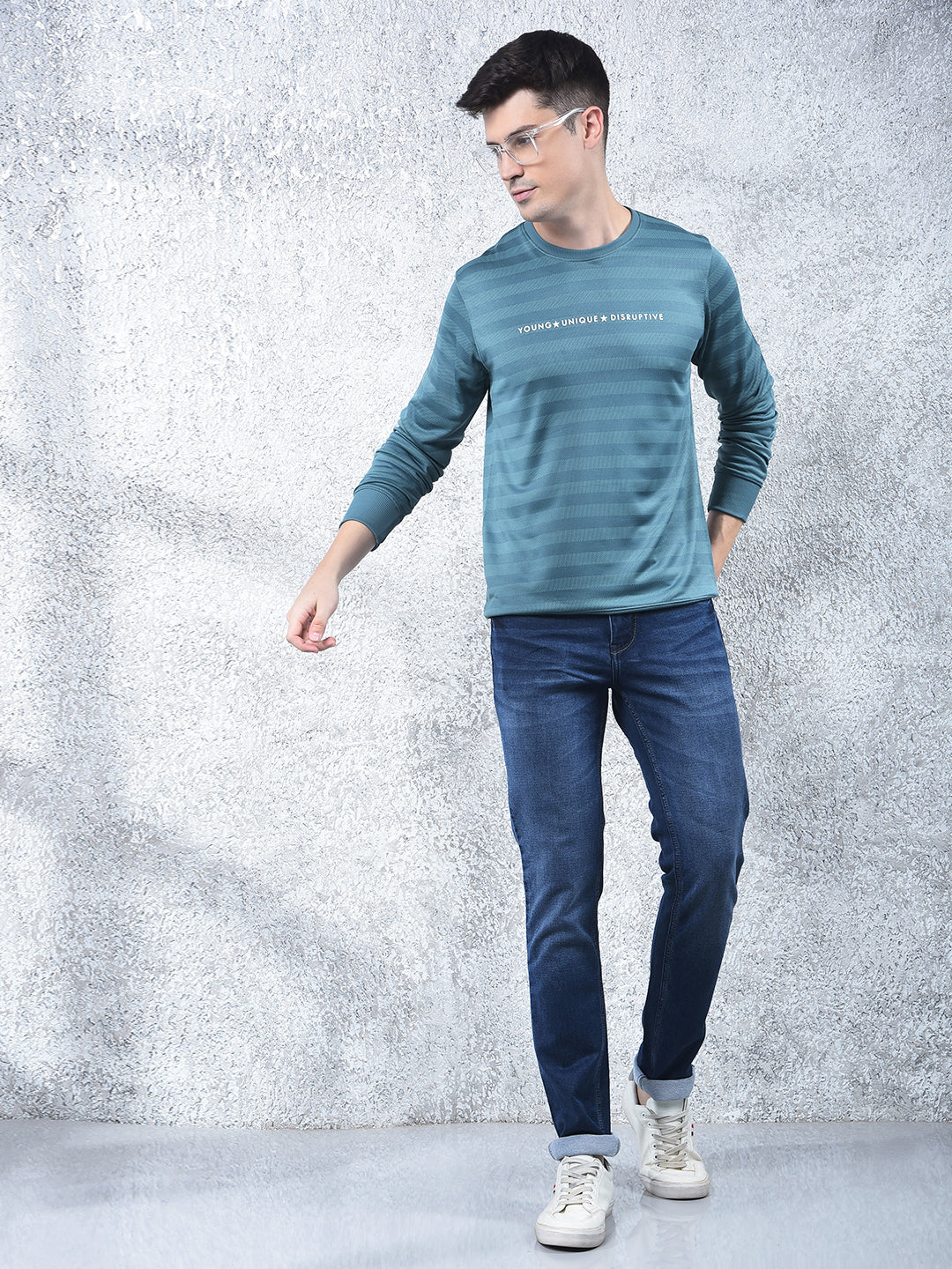 COBB Teal Green Printed Full-Sleeve T-Shirt – crafted from soft, breathable fabric with a stylish print. Offers a comfortable fit and modern look, perfect for casual outings and everyday wear.