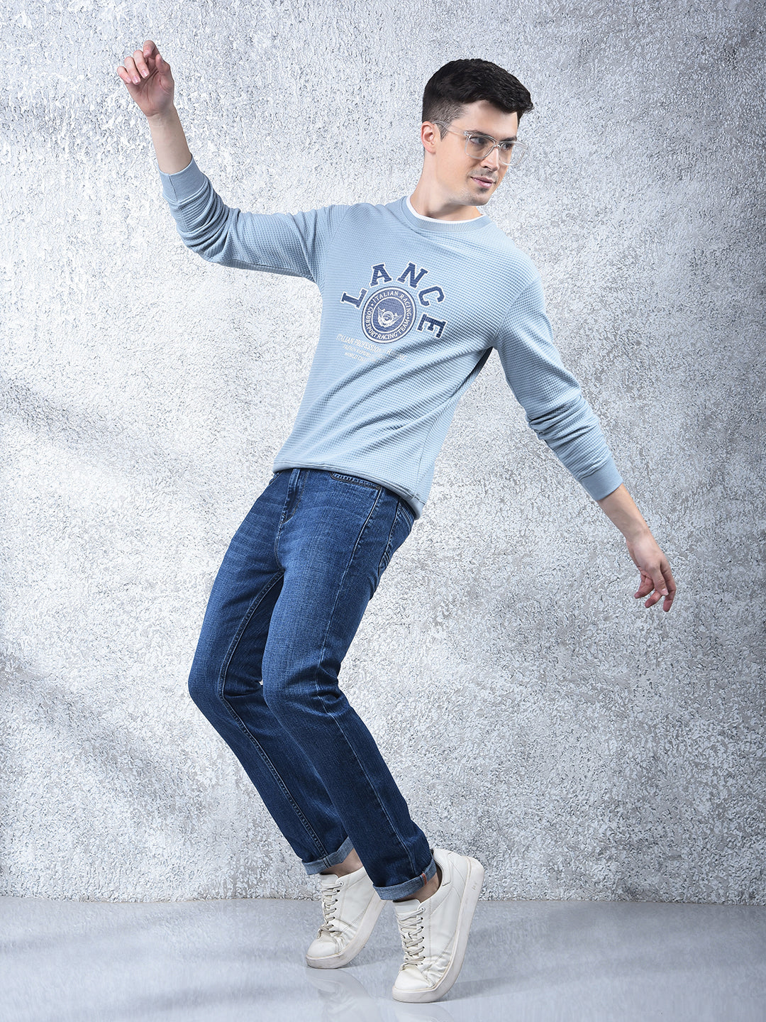 COBB Sky Blue Printed Full-Sleeve T-Shirt – made from soft, breathable fabric with a stylish print. Offers a comfortable fit and trendy look, ideal for casual outings and everyday wear.