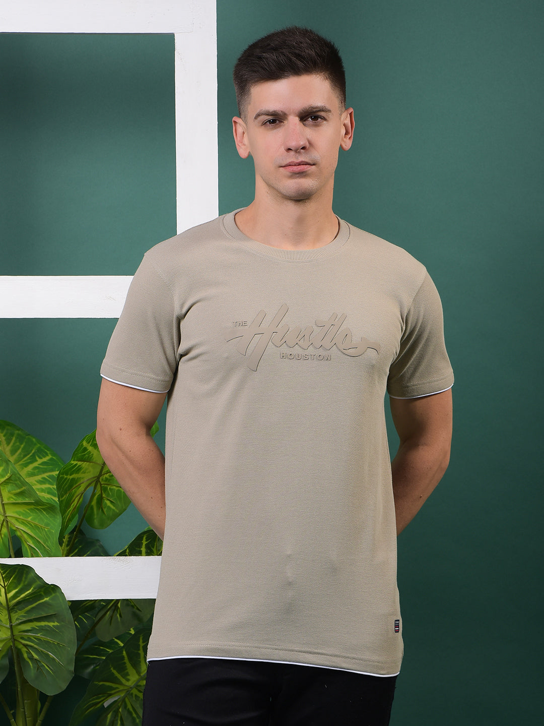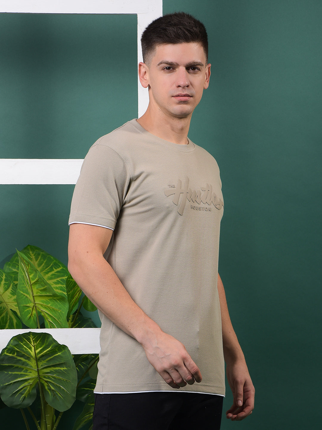 Elevate your casual look with Cobb's Beige Printed Round Neck T-Shirt ‰ÛÓ warm, earthy tones combined with subtle prints for timeless comfort.