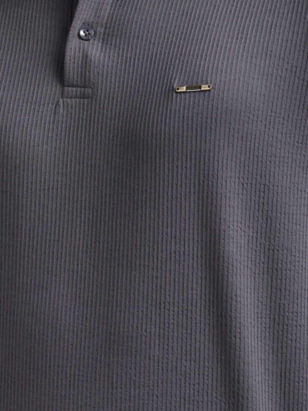 COBB DARK GREY STRIPED POLO NECK T-SHIRT