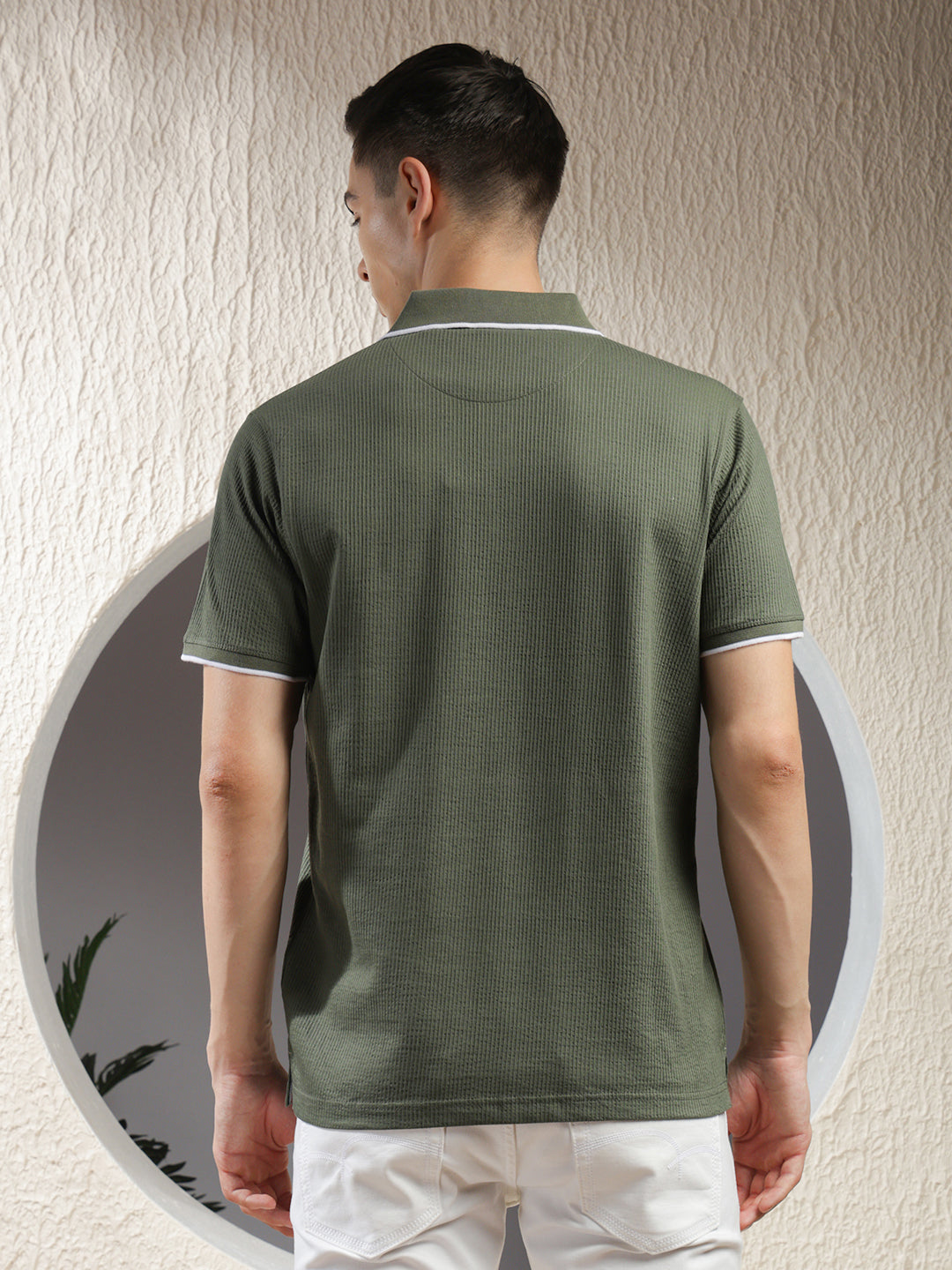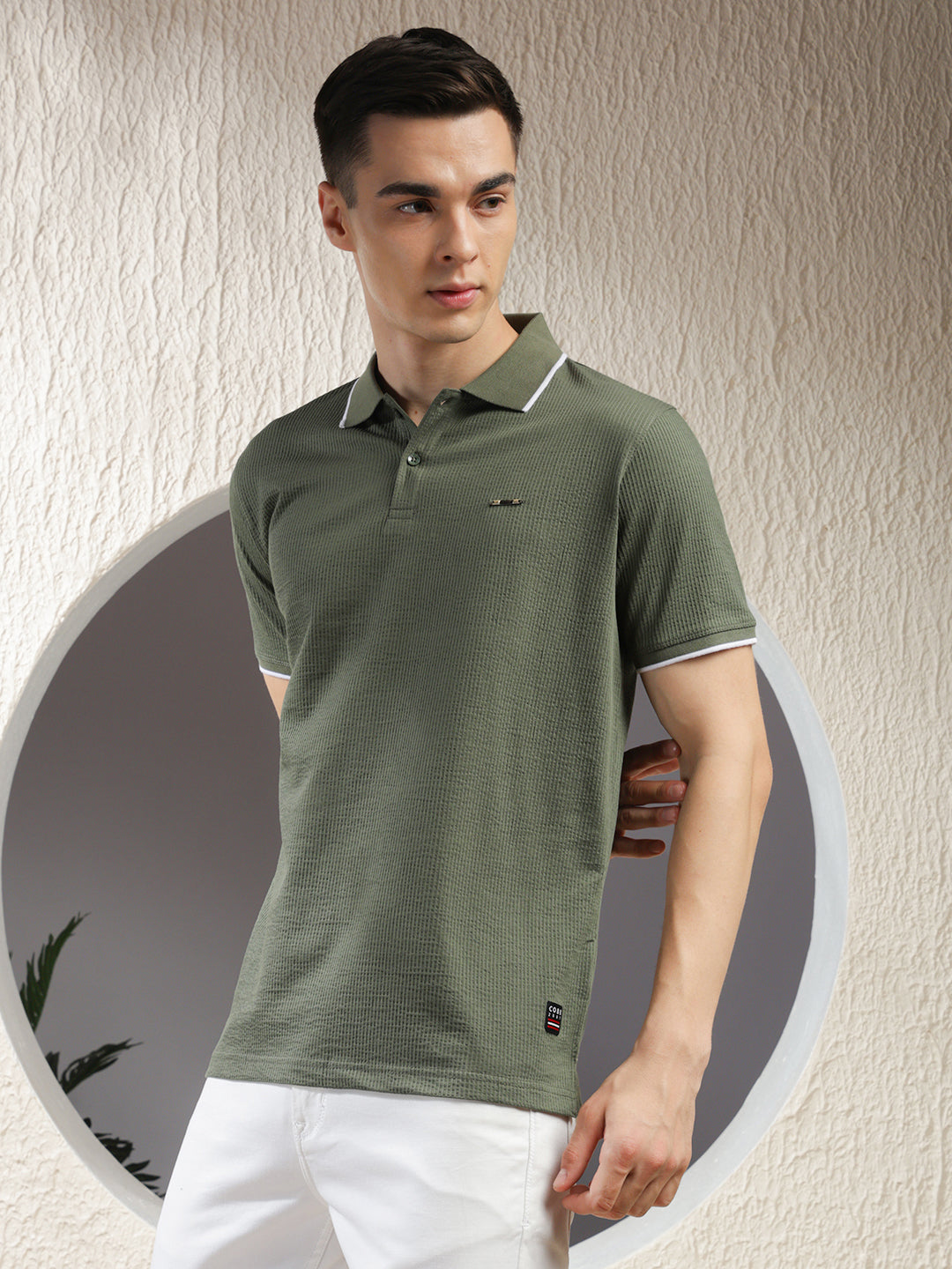 COBB Olive Striped Polo Neck T-Shirt offers a smart striped design with a classic polo collar, crafted from breathable fabric for all-day comfort and effortless casual style.