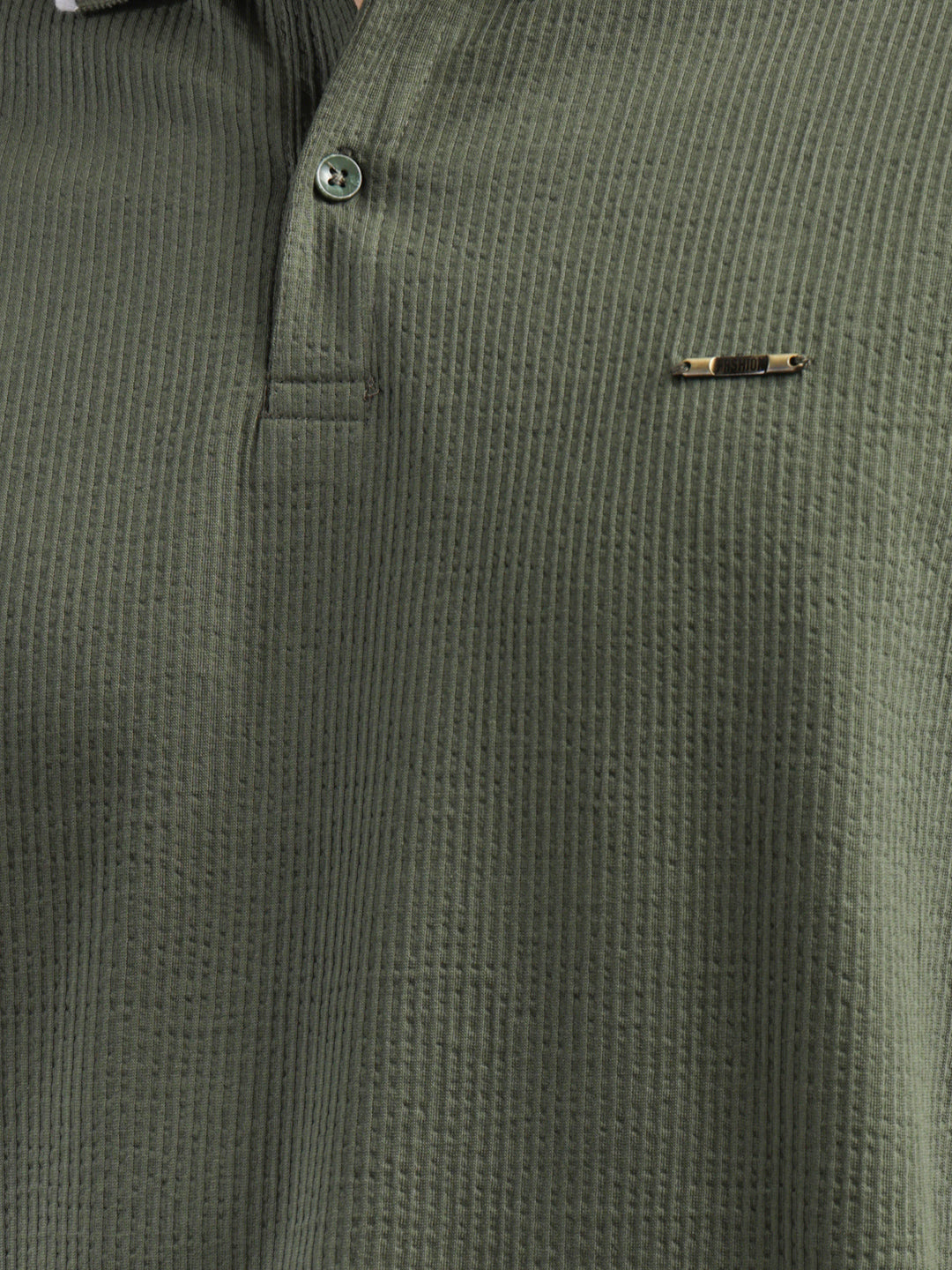 COBB OLIVE STRIPED POLO NECK T-SHIRT