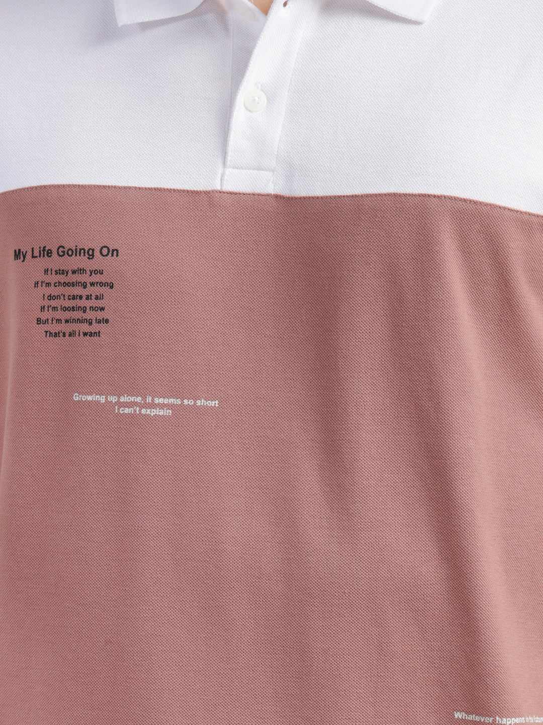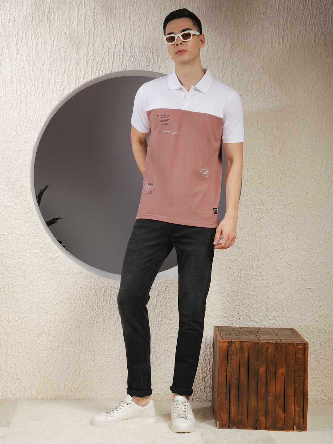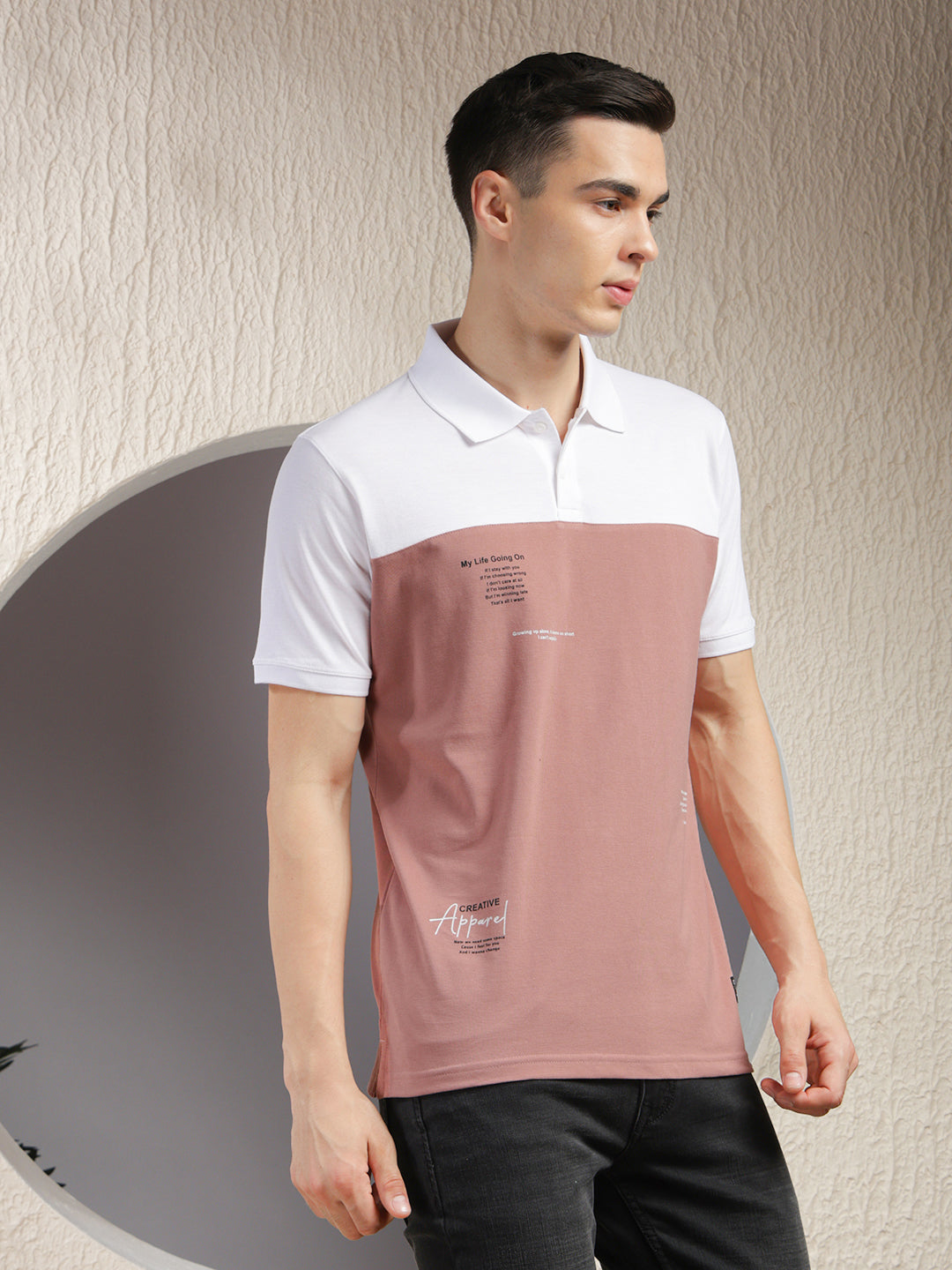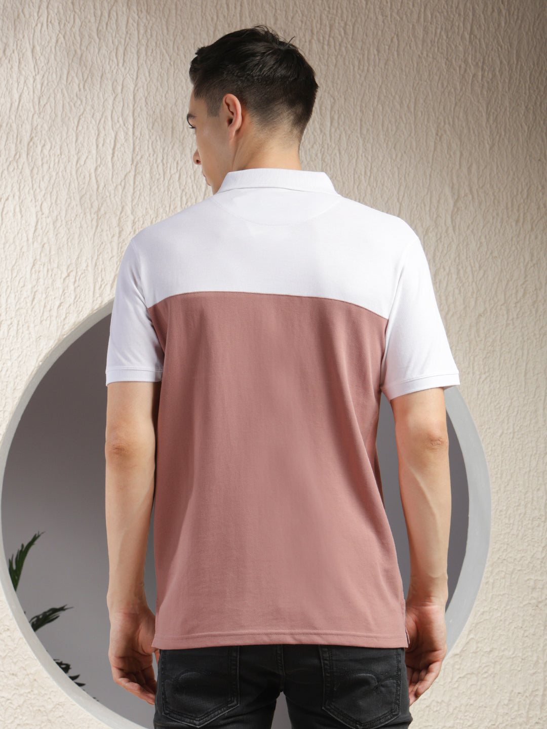 COBB Blush Color-Block Polo Neck T-Shirt features a stylish two-tone design, soft breathable fabric, and a classic polo collar—perfect for a smart-casual everyday look.