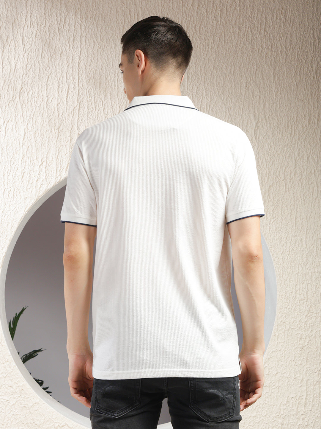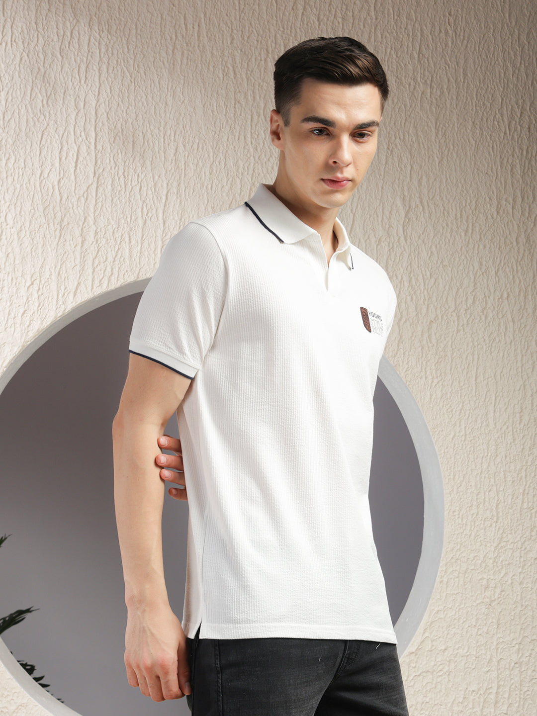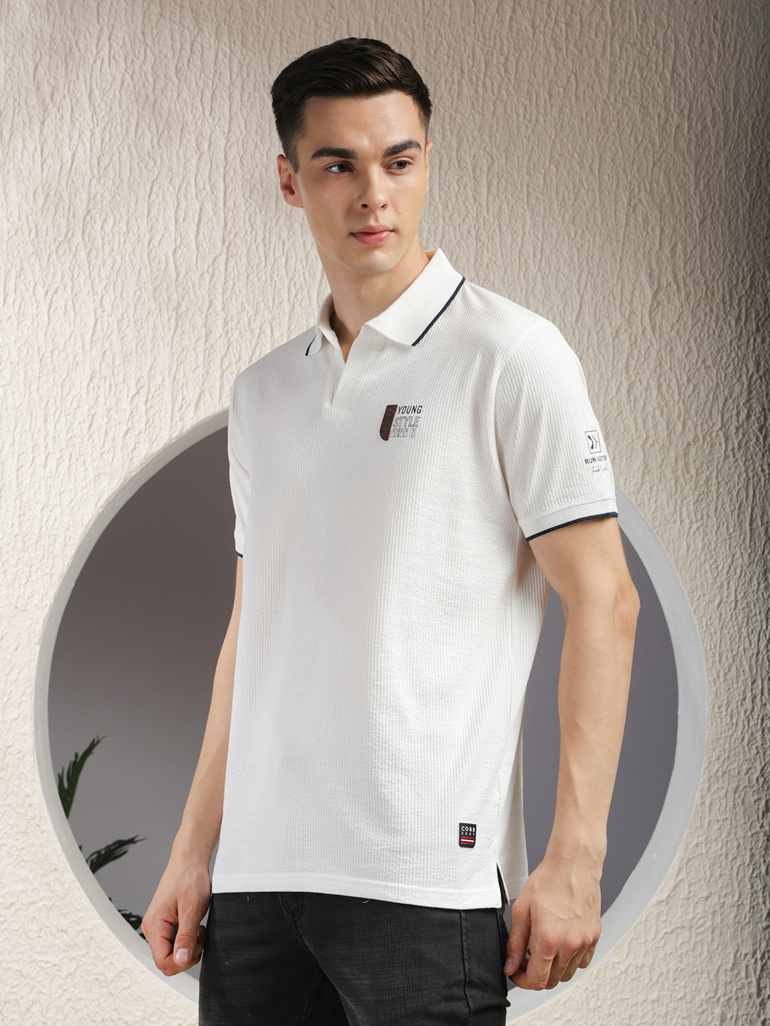 COBB Solid White Polo Neck T-Shirt – a timeless wardrobe essential with a clean, minimal design. Made from soft, breathable fabric, offering comfort and style, perfect for casual, semi-formal, or smart everyday looks.