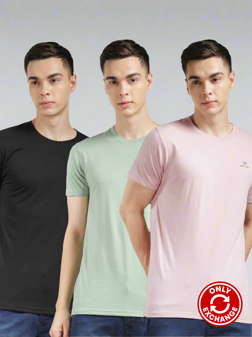 COBB Pack of 3 Assorted Round Neck T-Shirts – crafted from soft cotton, featuring stylish prints and colors for everyday comfort and a versatile casual look.