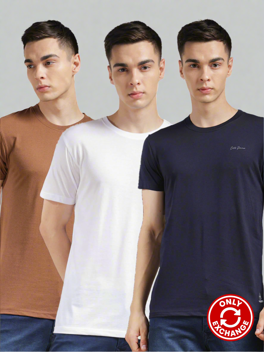 COBB Pack of 3 Assorted Round Neck T-Shirts offers a mix of trendy colors. Made from breathable cotton, perfect for daily casual comfort and effortless style.