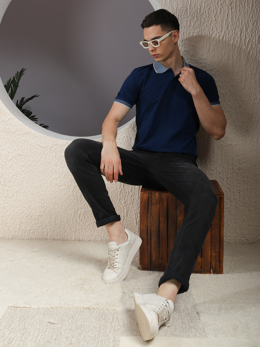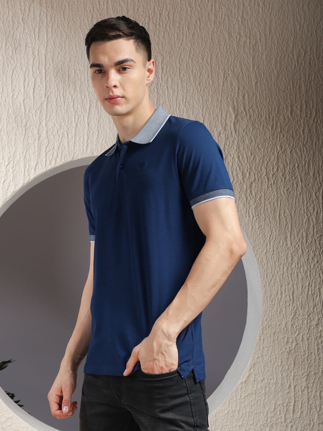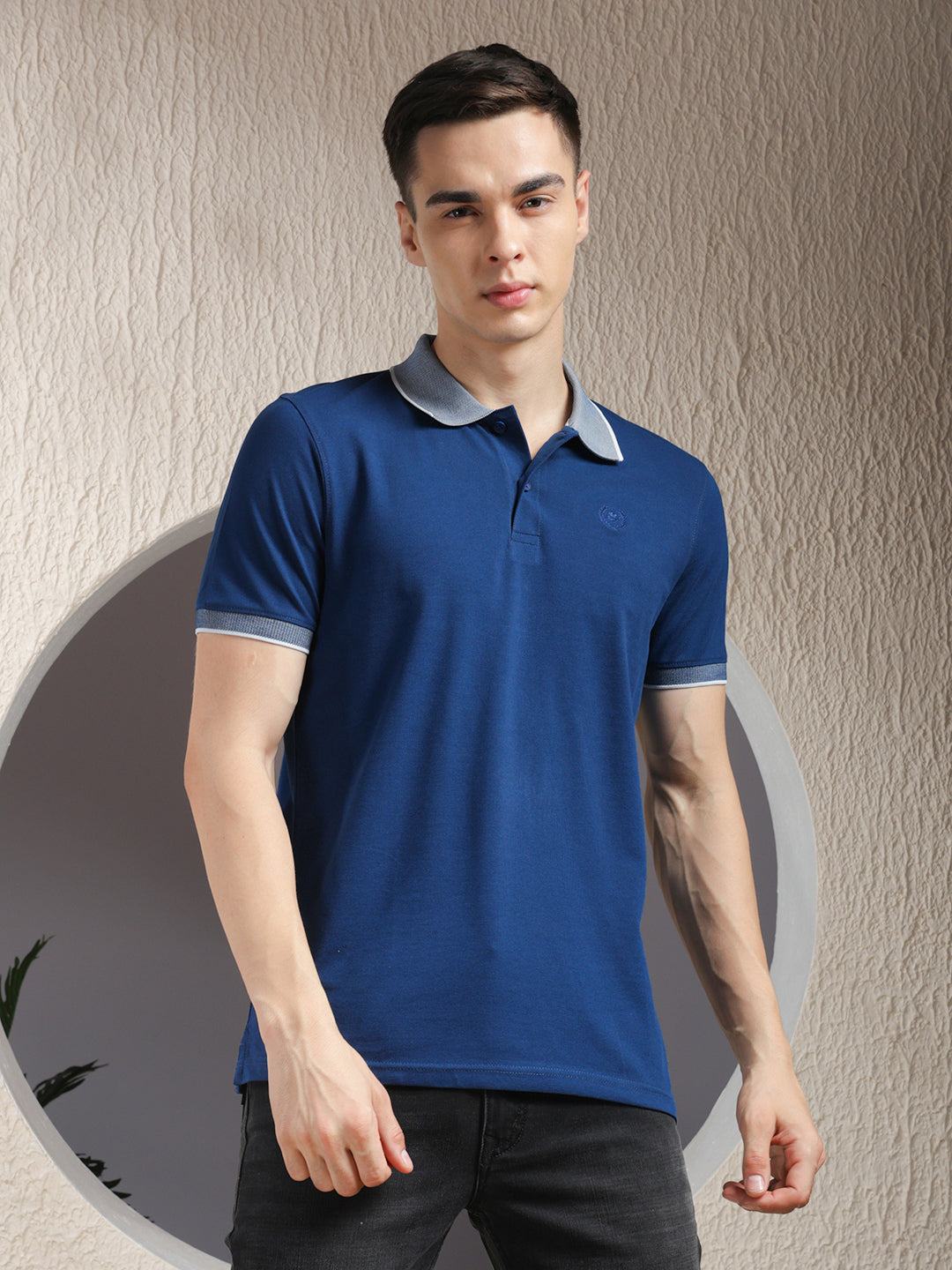 COBB Solid Denim Blue Polo Neck T-Shirt – crafted from premium fabric with a stylish polo collar. Its rich denim blue shade adds a versatile touch, making it perfect for smart-casual and everyday wear.