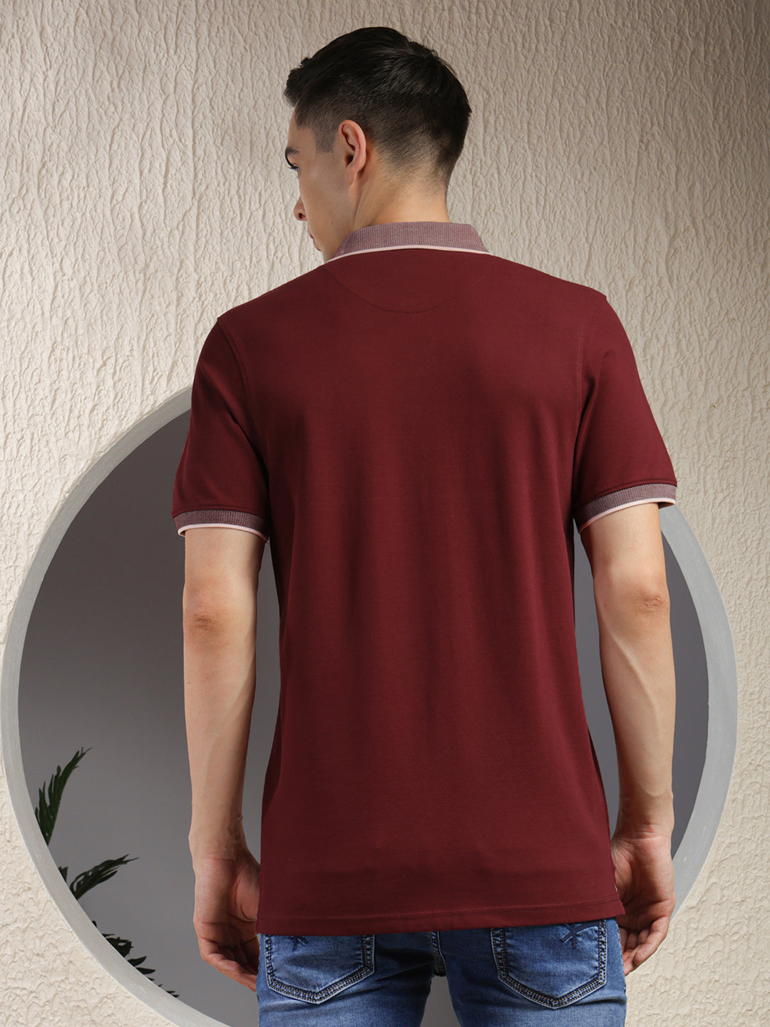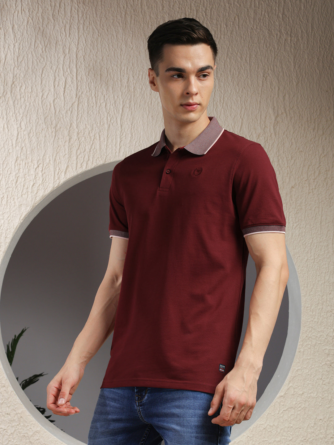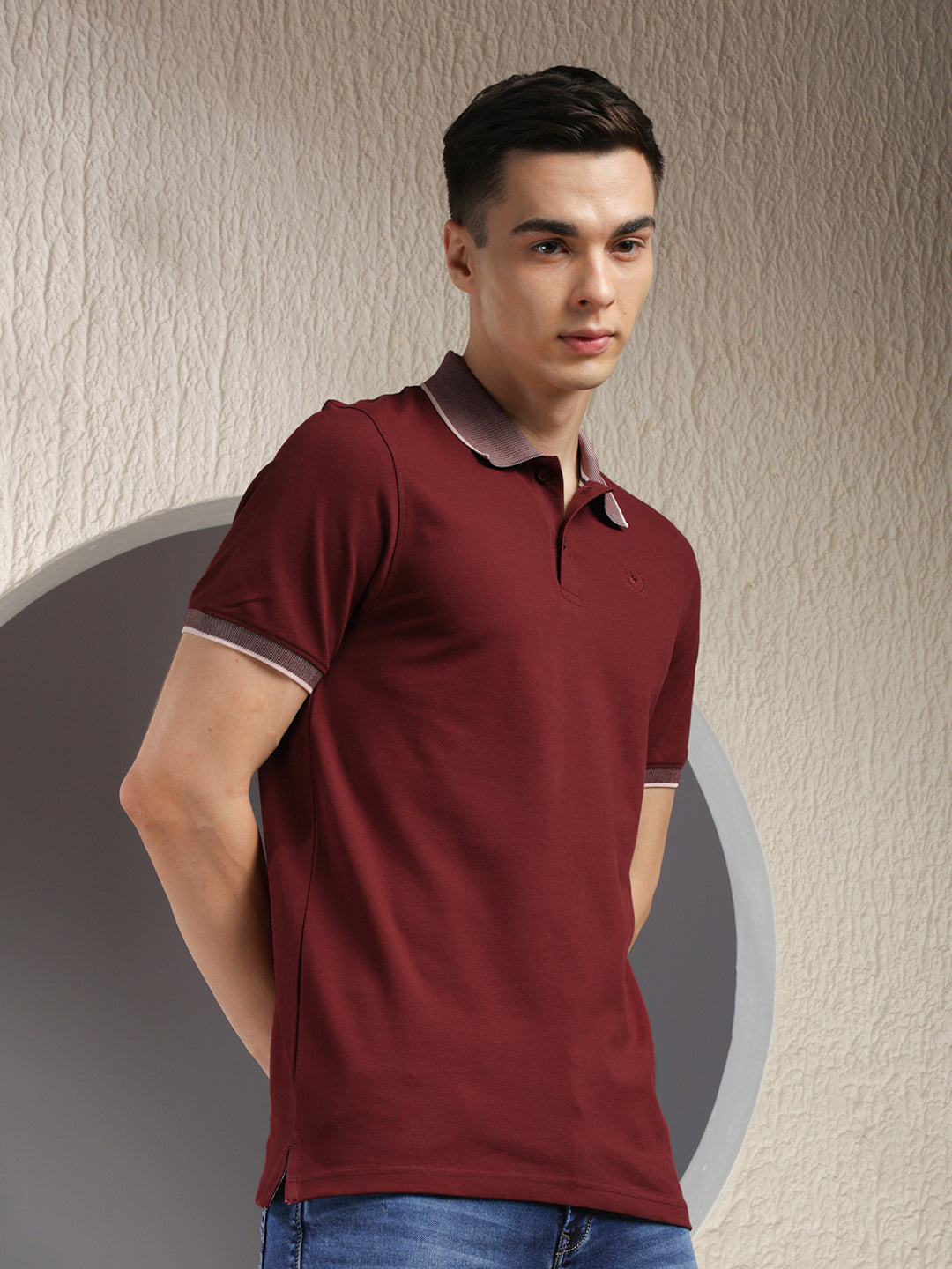 COBB Solid Maroon Polo Neck T-Shirt – a timeless classic with a sleek polo collar and rich maroon shade. Made from premium breathable fabric, offering both comfort and style for casual and semi-formal looks.