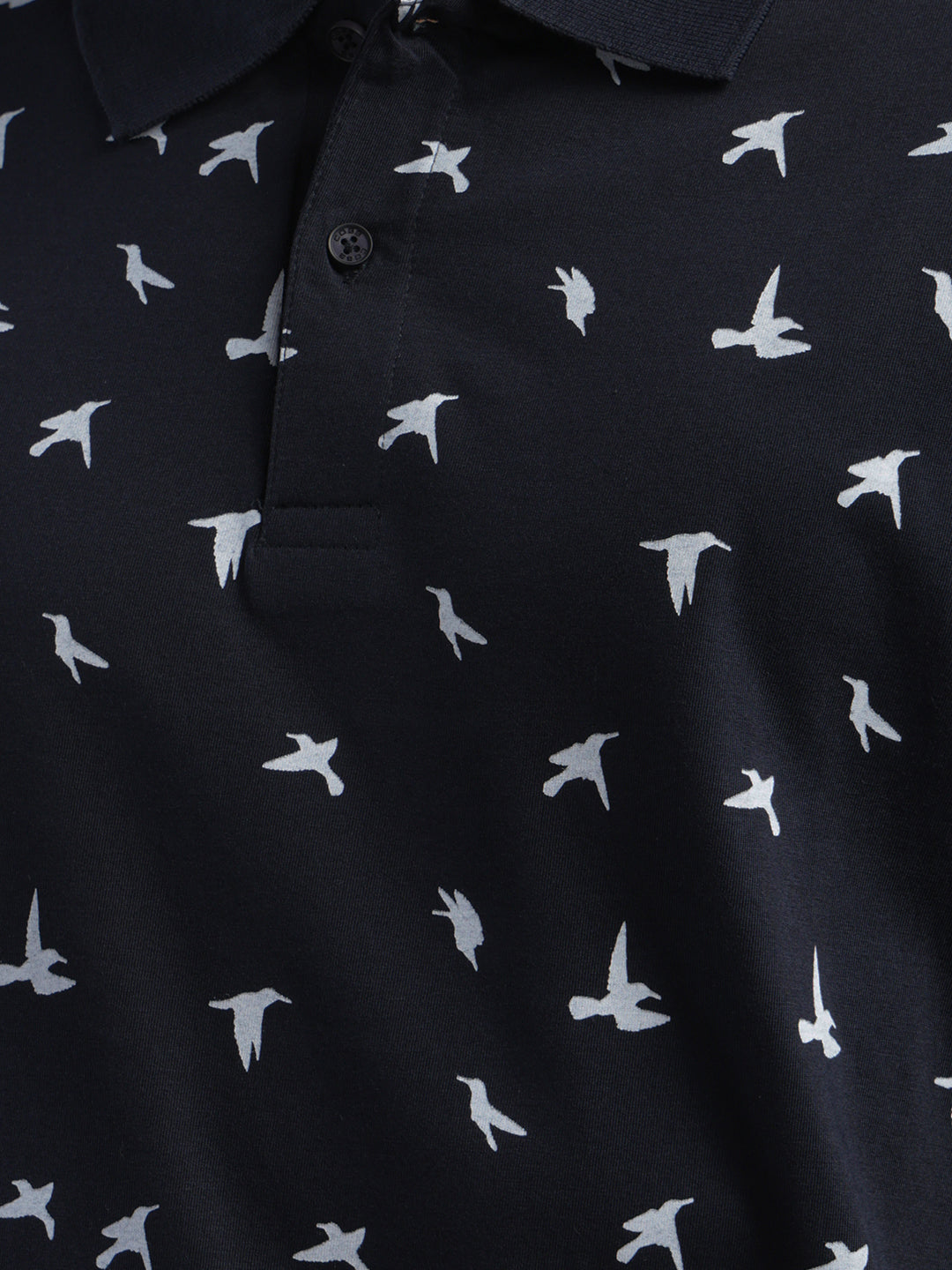COBB NAVY BLUE PRINTED POLO NECK T-SHIRT