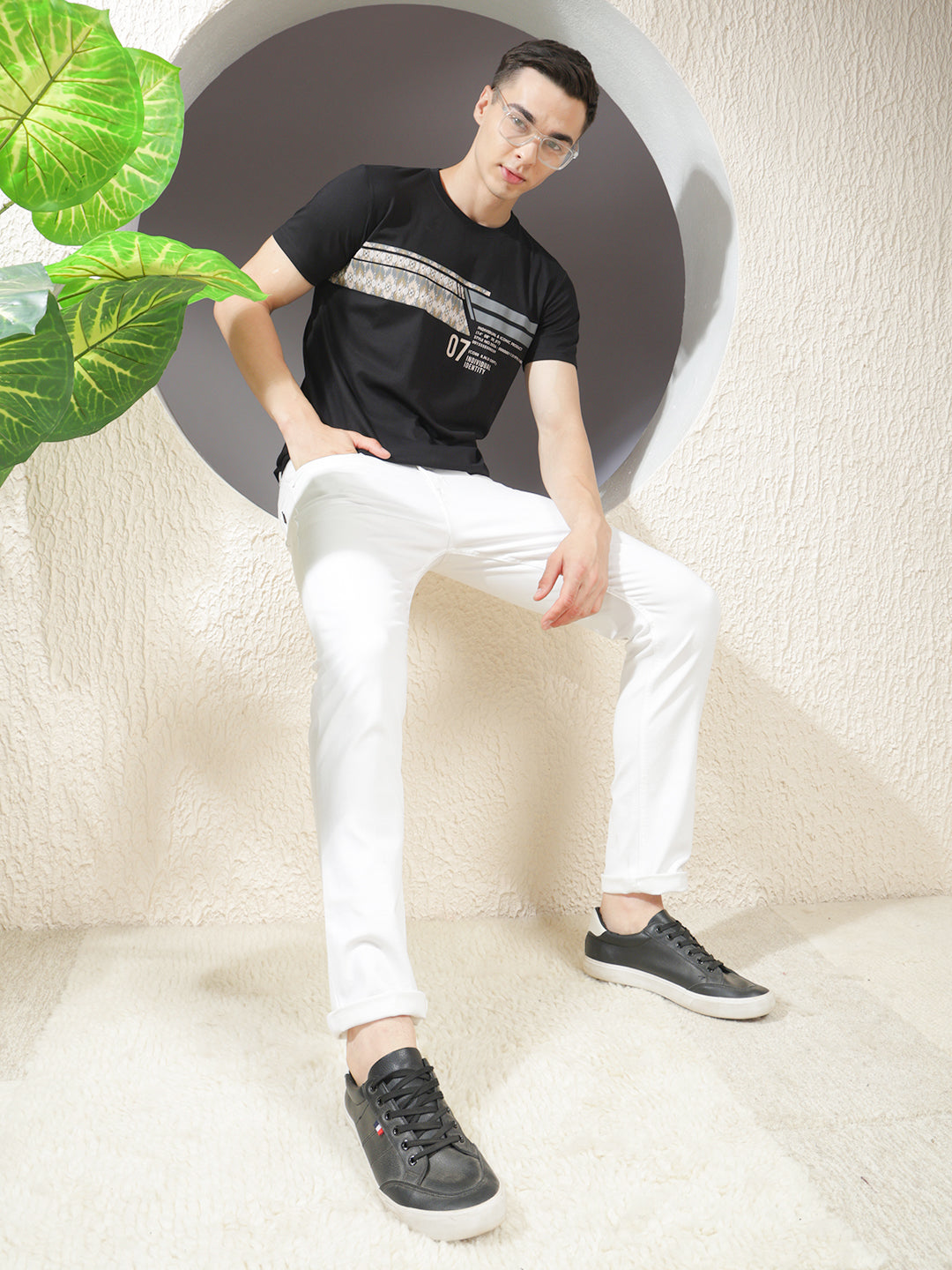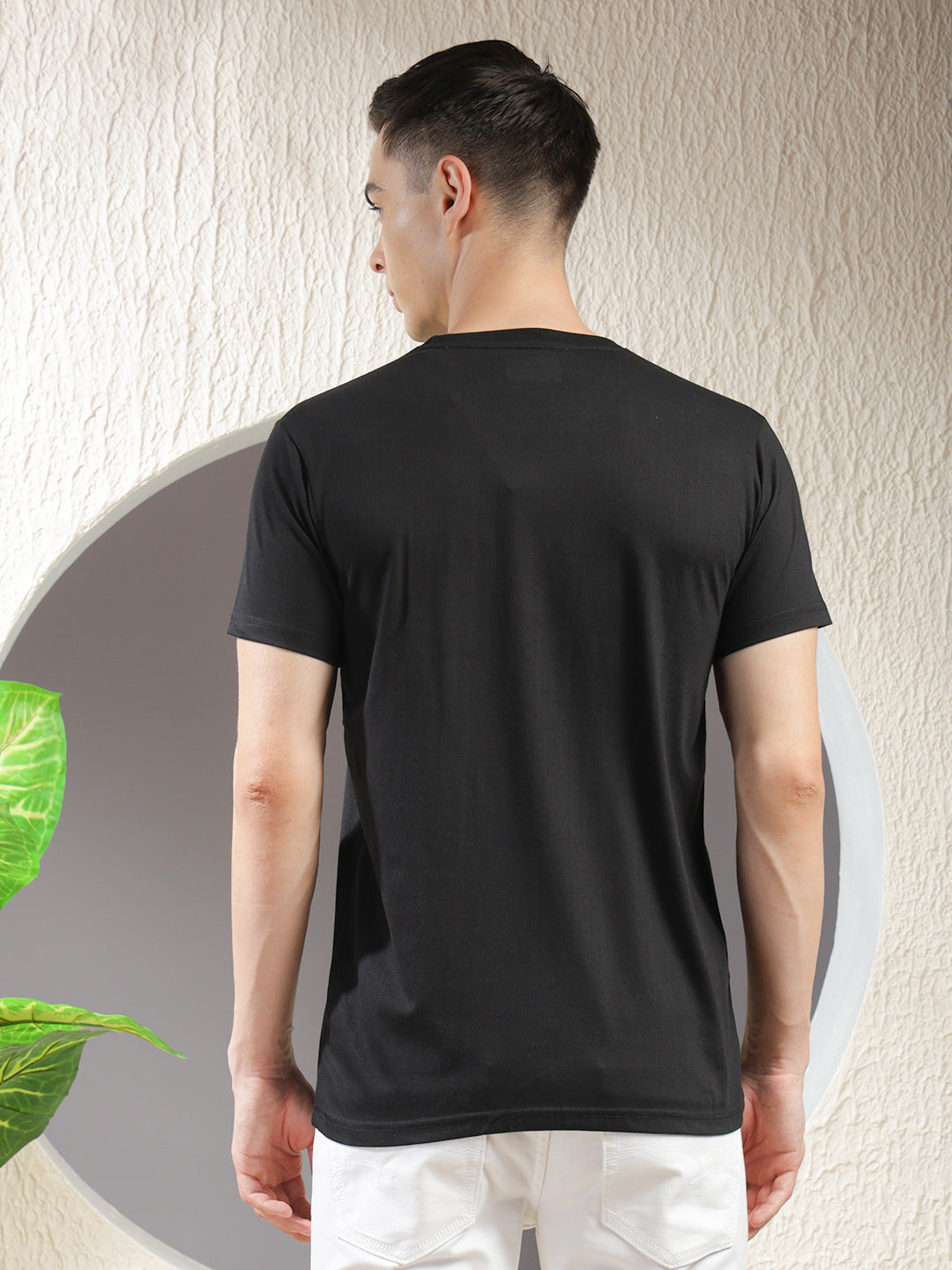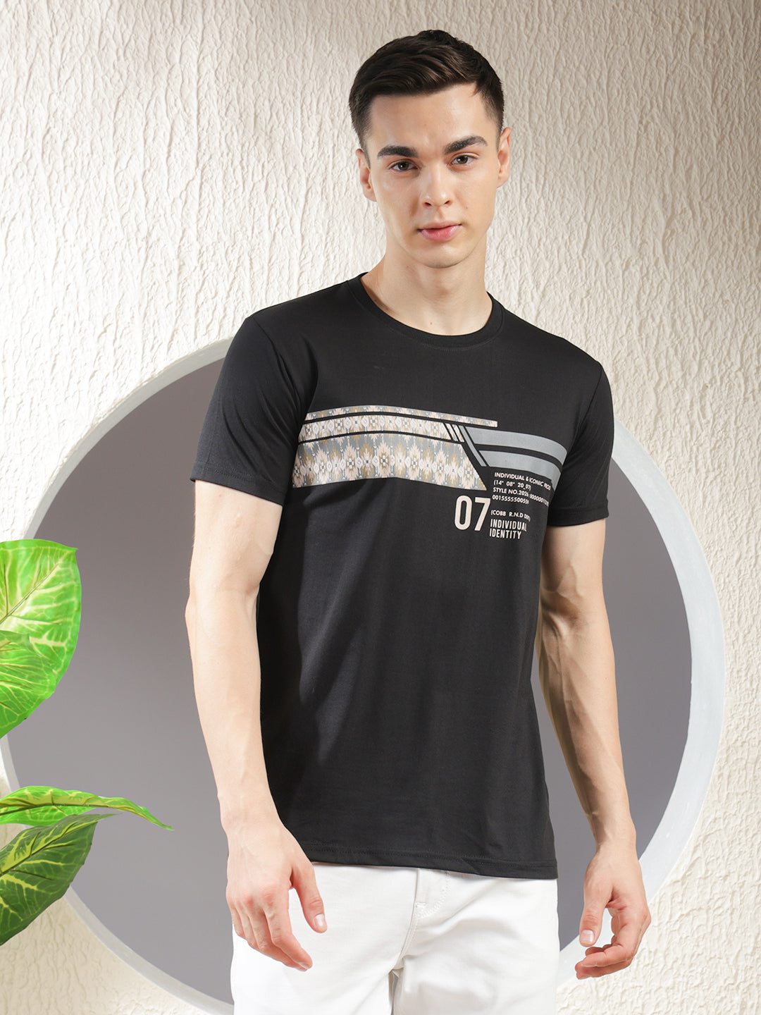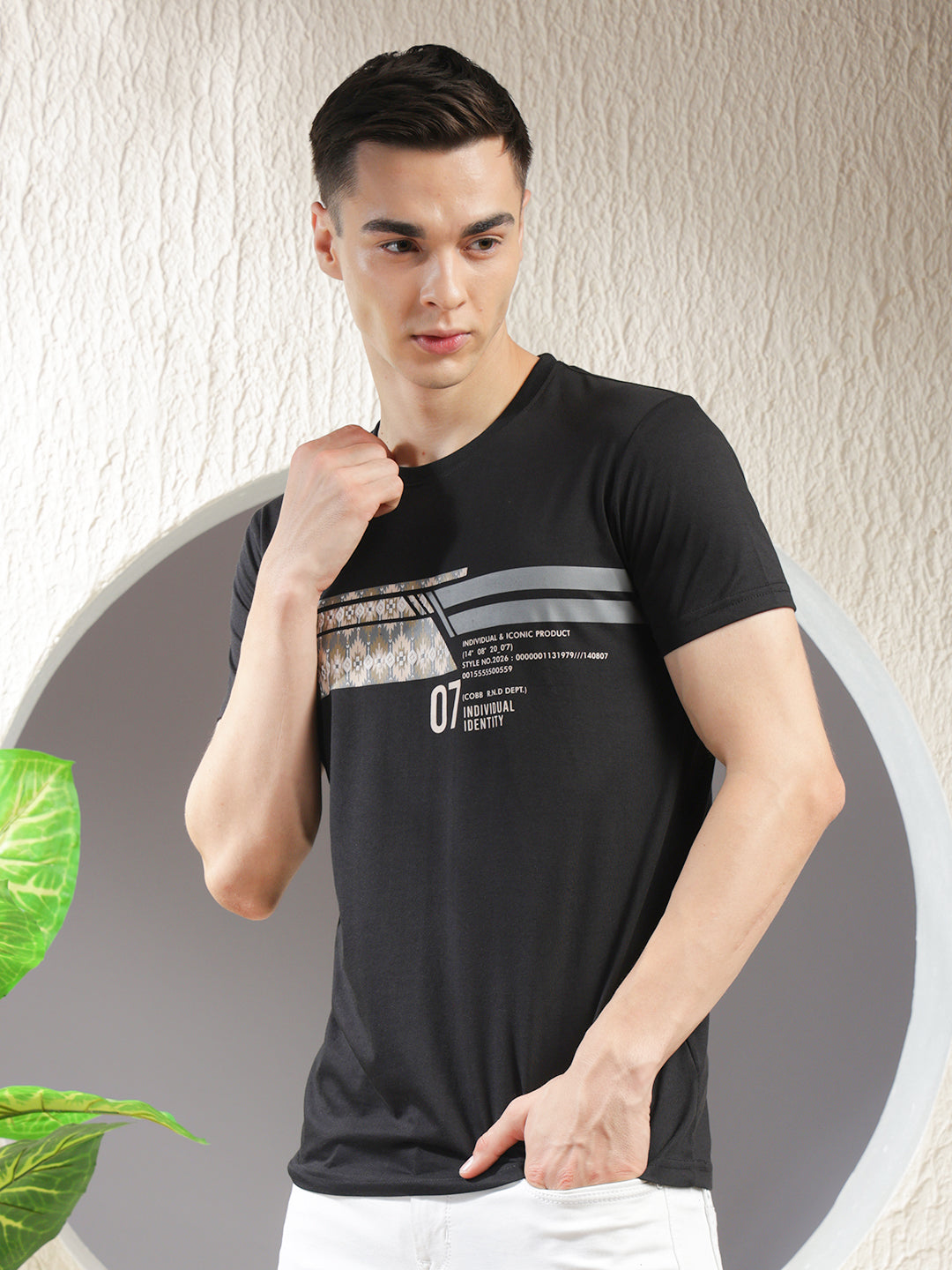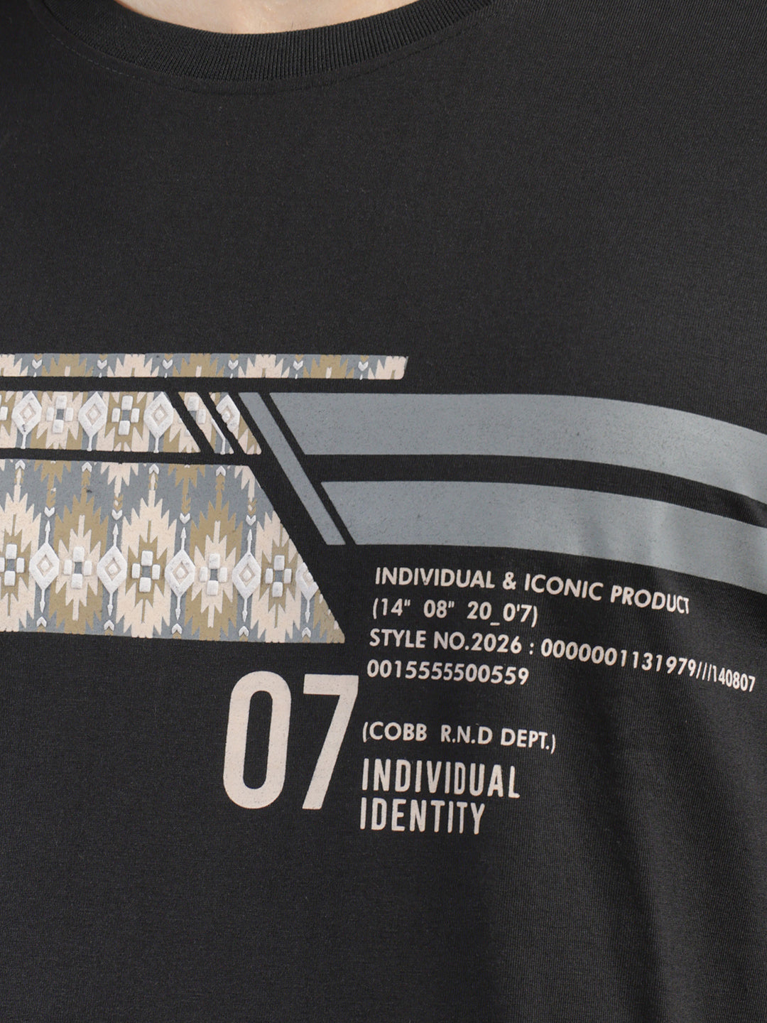 COBB Black Printed Round Neck T-Shirt crafted from soft, breathable cotton. Features a bold graphic print, classic fit, and stylish appeal for daily wear or weekend looks.