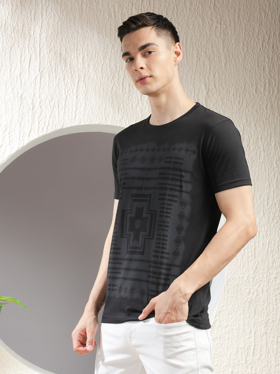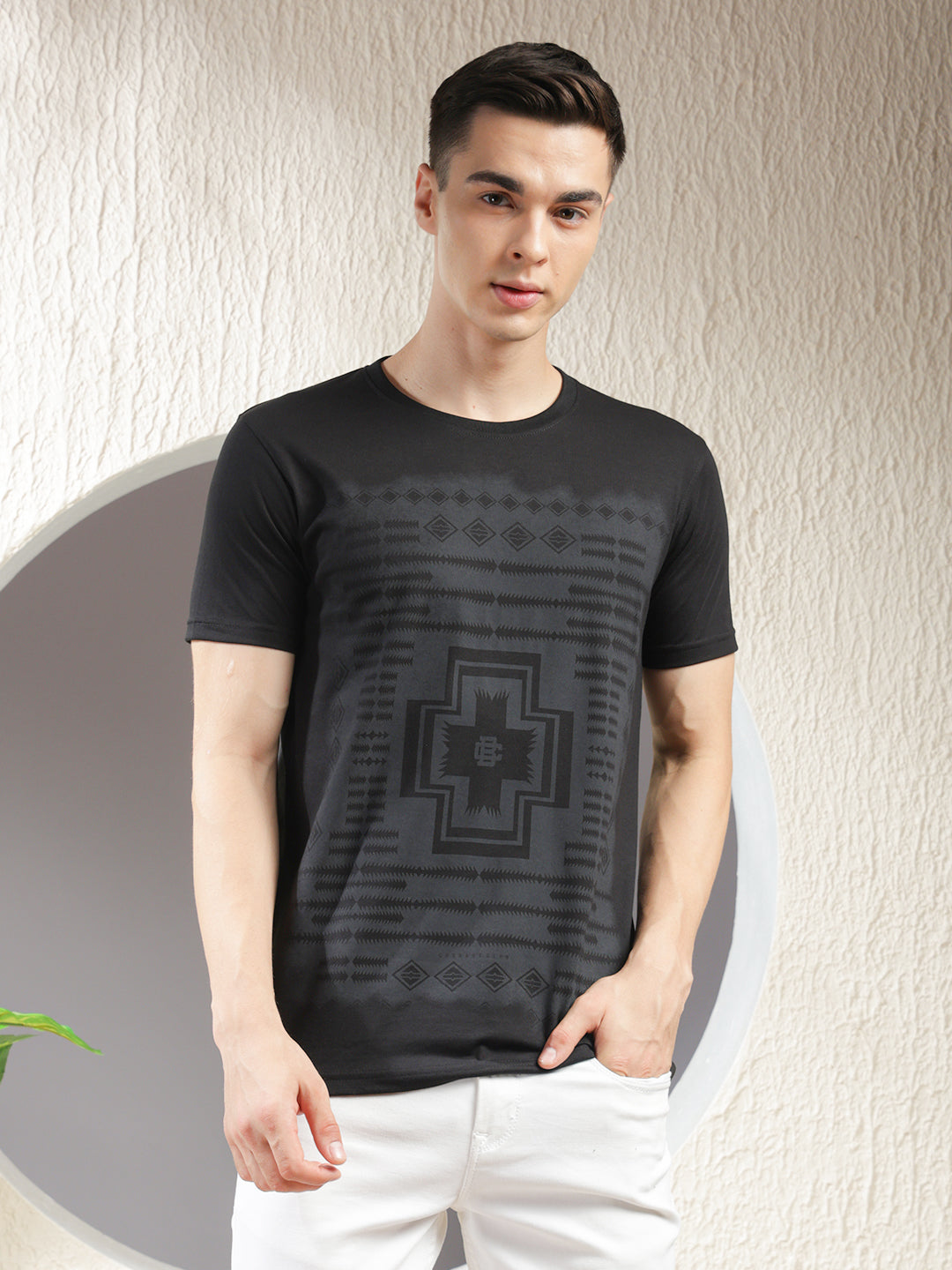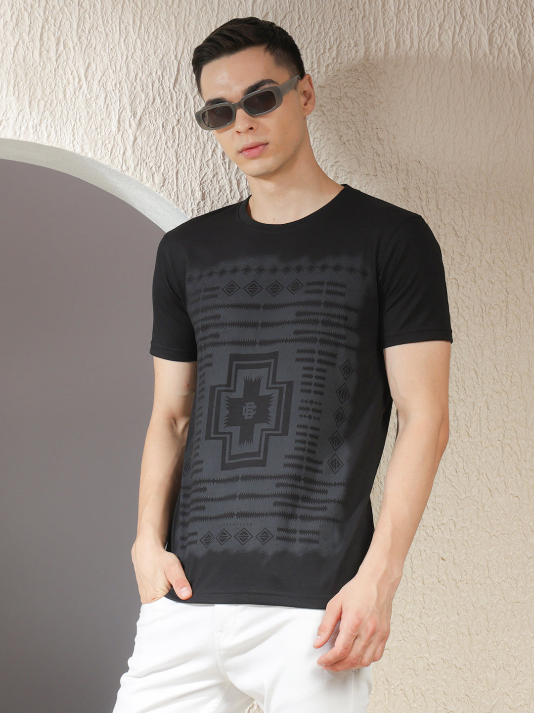 COBB BLACK PRINTED ROUND NECK T-SHIRT