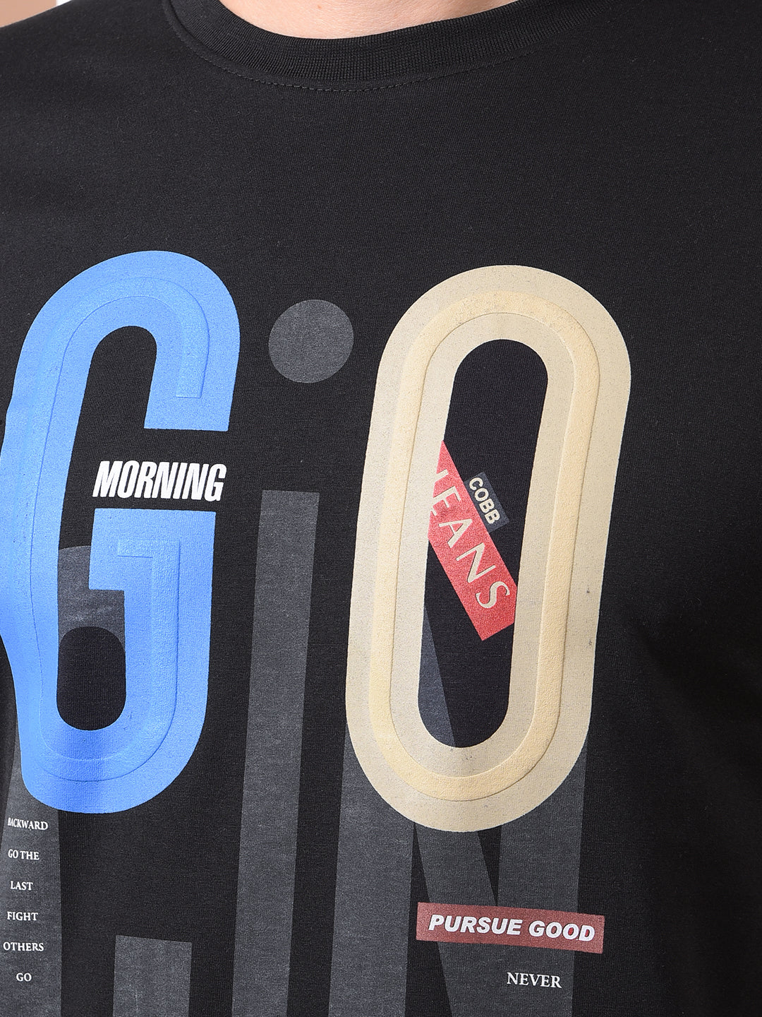 COBB BLACK PRINTED ROUND NECK T-SHIRT