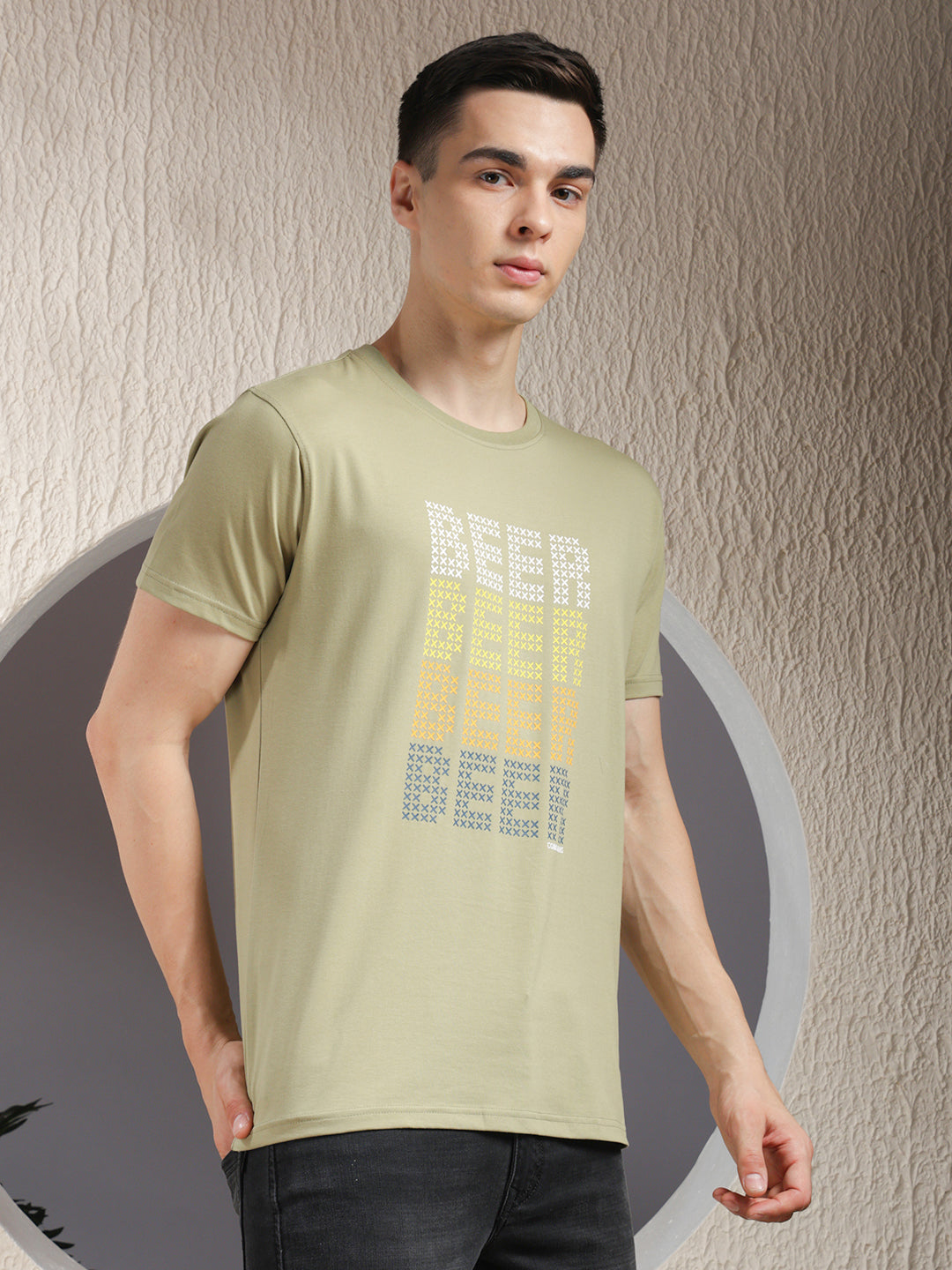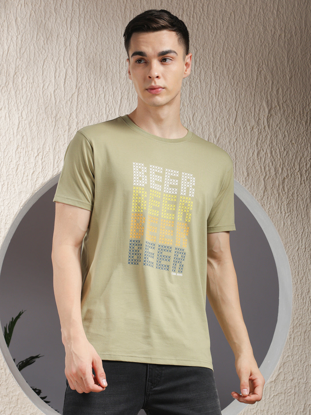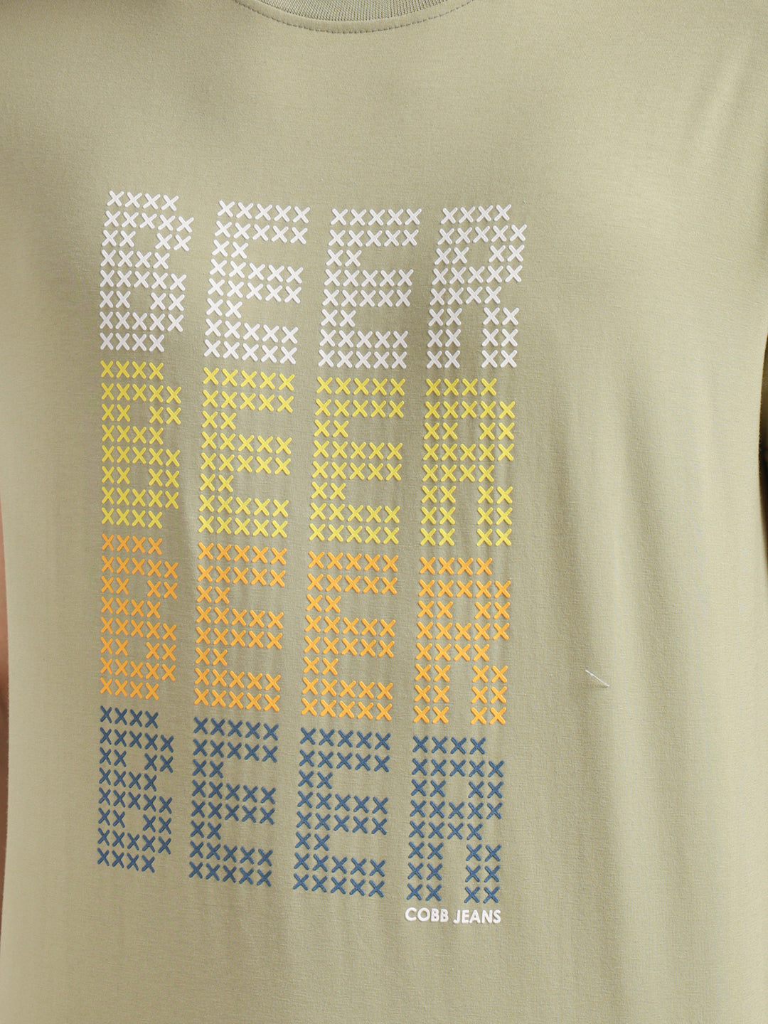COBB PISTA GREEN PRINTED ROUND NECK T-SHIRT